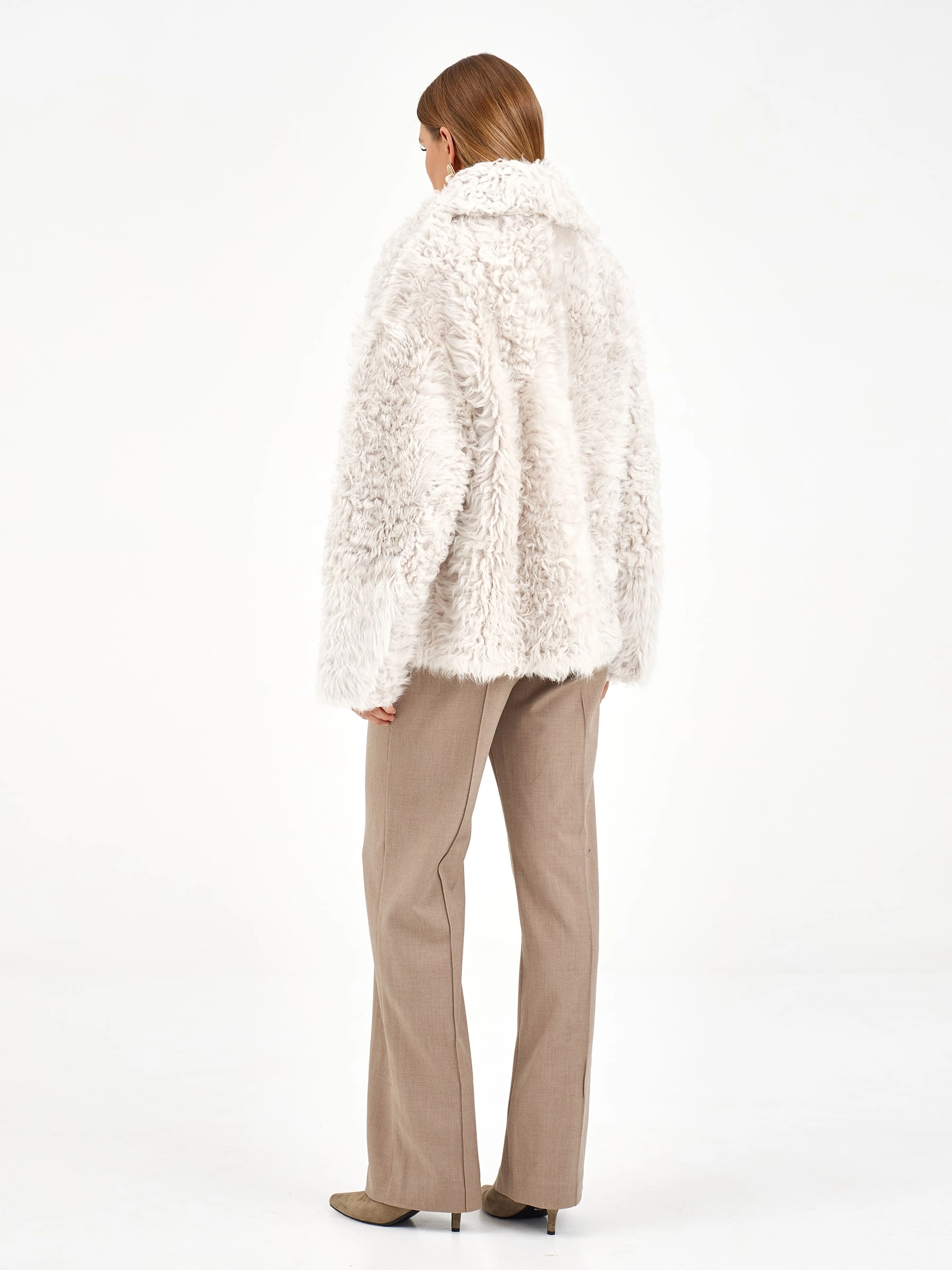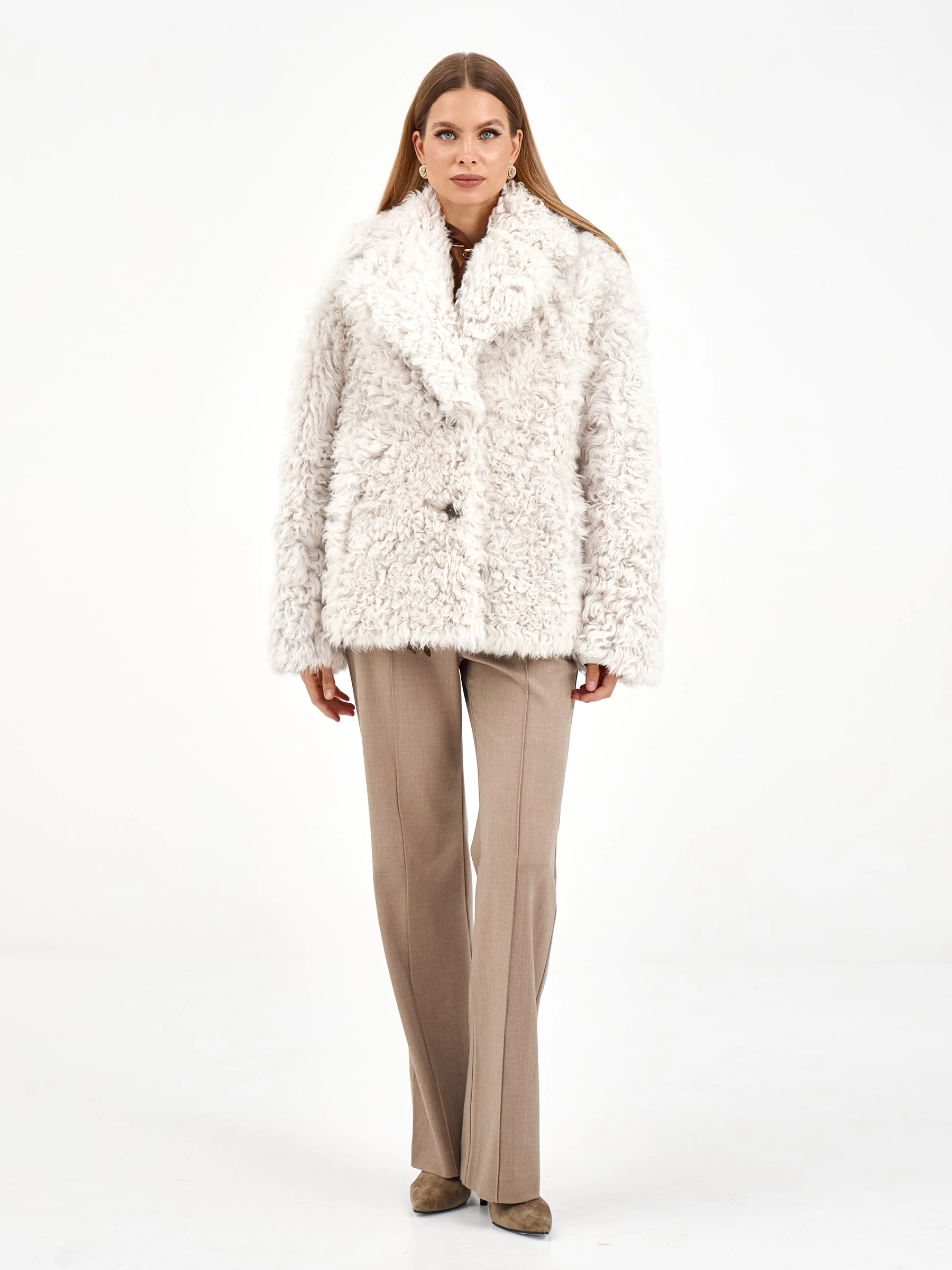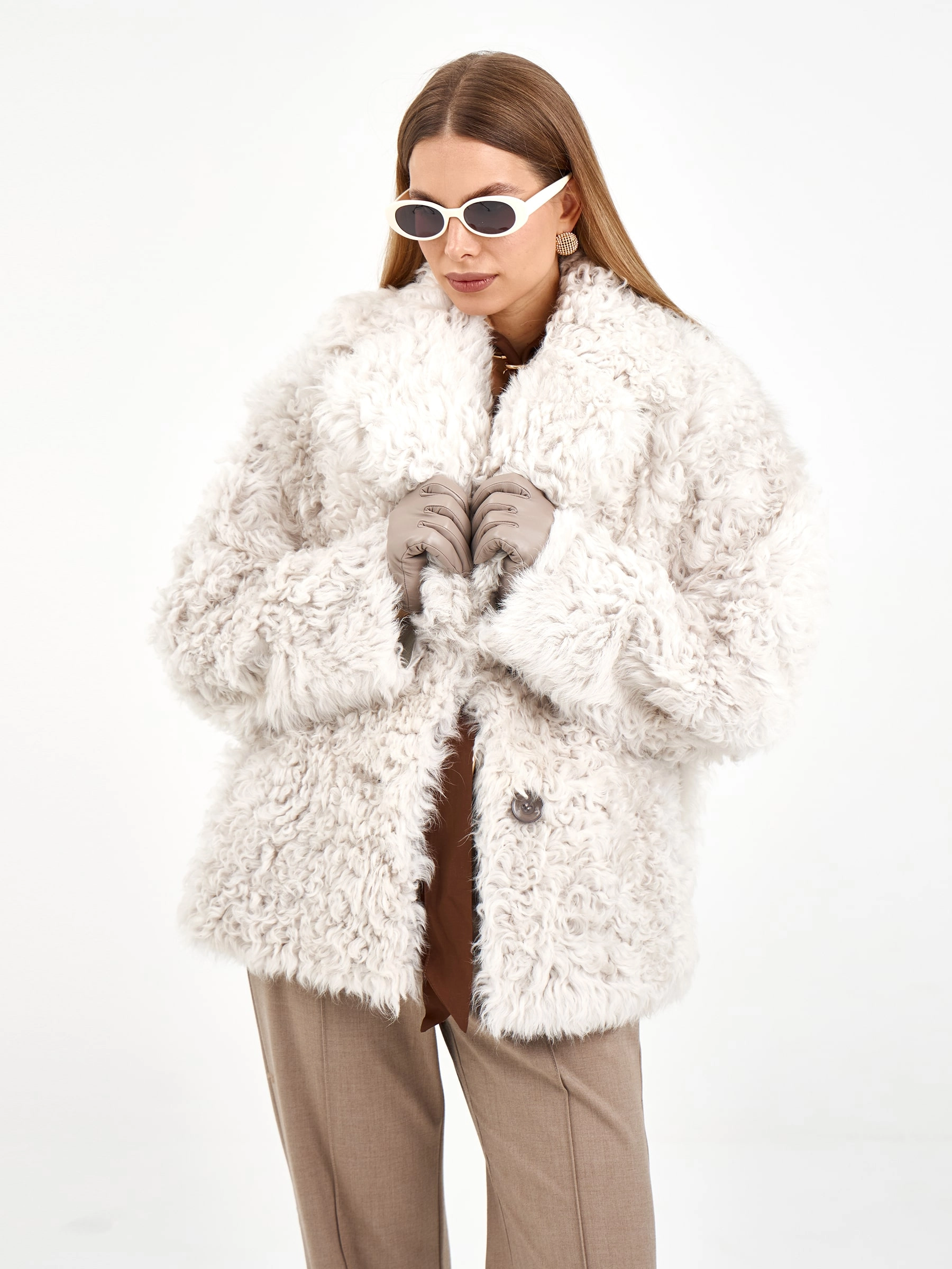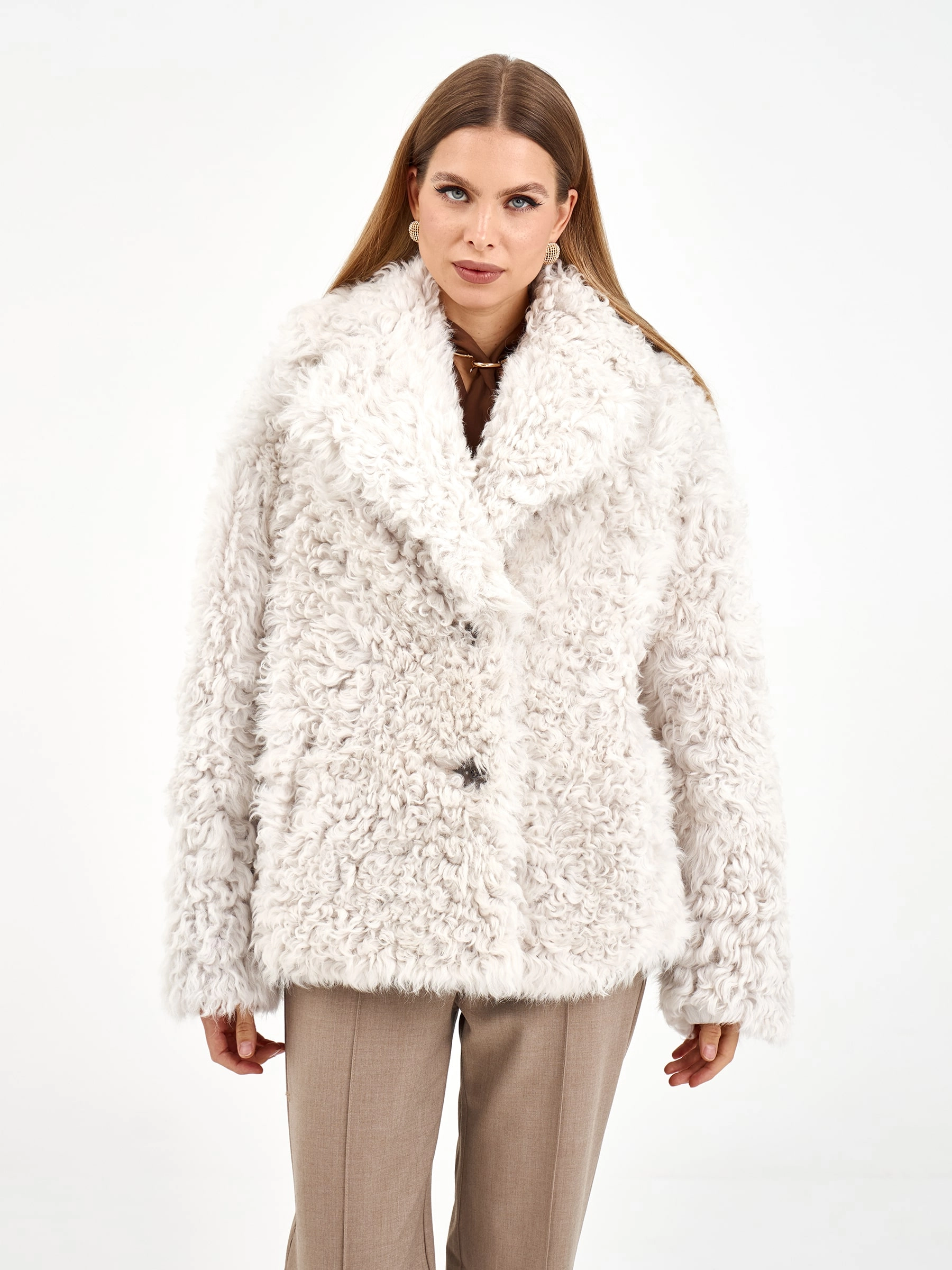 Товар короткая женская дубленка из тиградо 2081, белая, размер 44, артикул 65040 выполнен из овчина "тиградо" с застежкой пуговицы. Рассчитан на сезон: зима. Длина изделия 70 см, силуэт свободный.