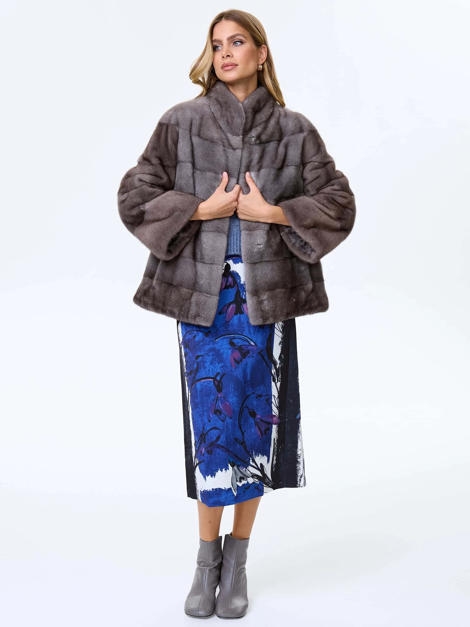 Товар короткая норковая женская поперечная шуба ольга(в), графитовая, размер 46, артикул 34040 выполнен из норка с застежкой клипсы. Рассчитан на сезон: зима. Длина изделия 64 см, силуэт прямой.