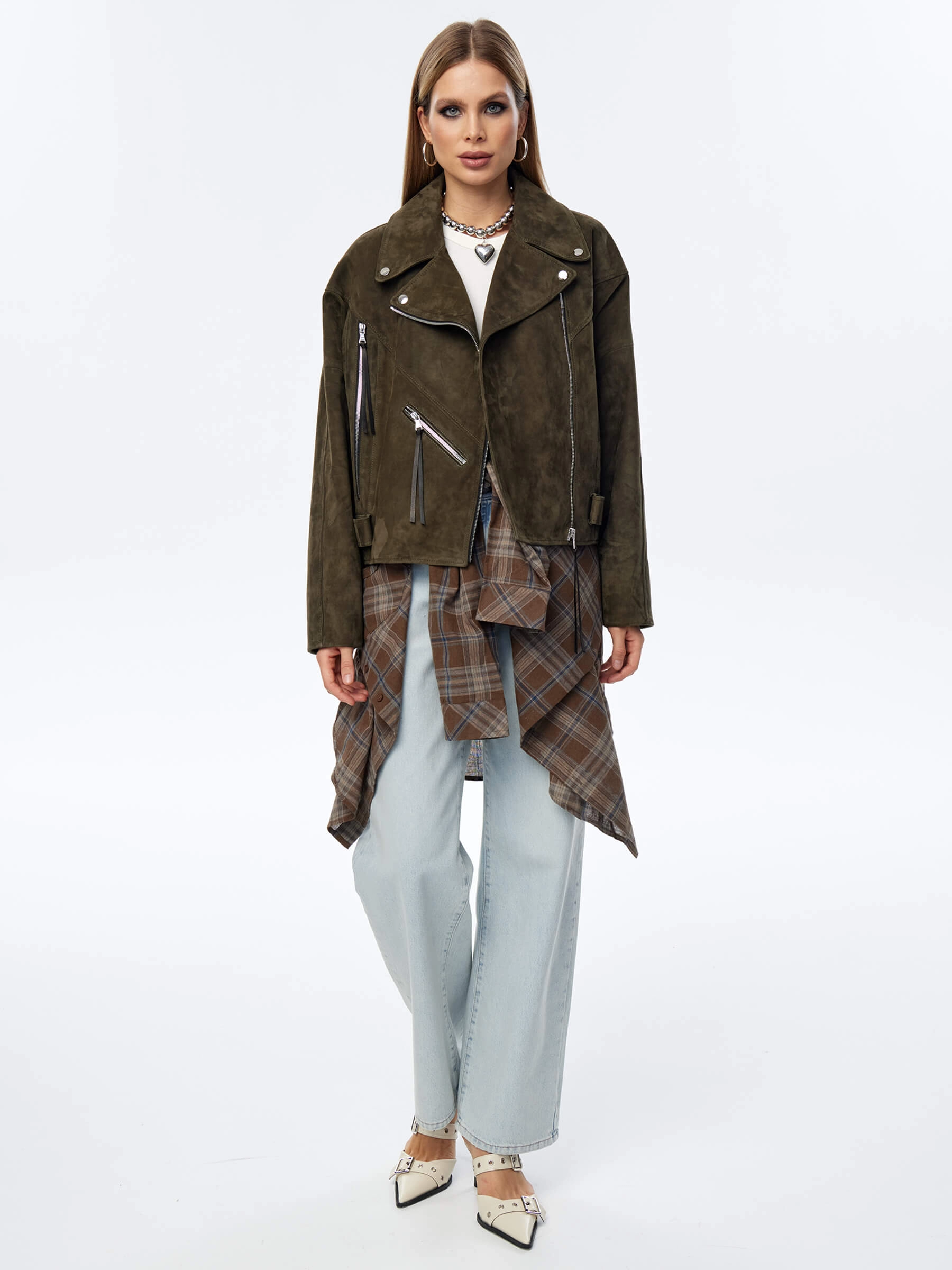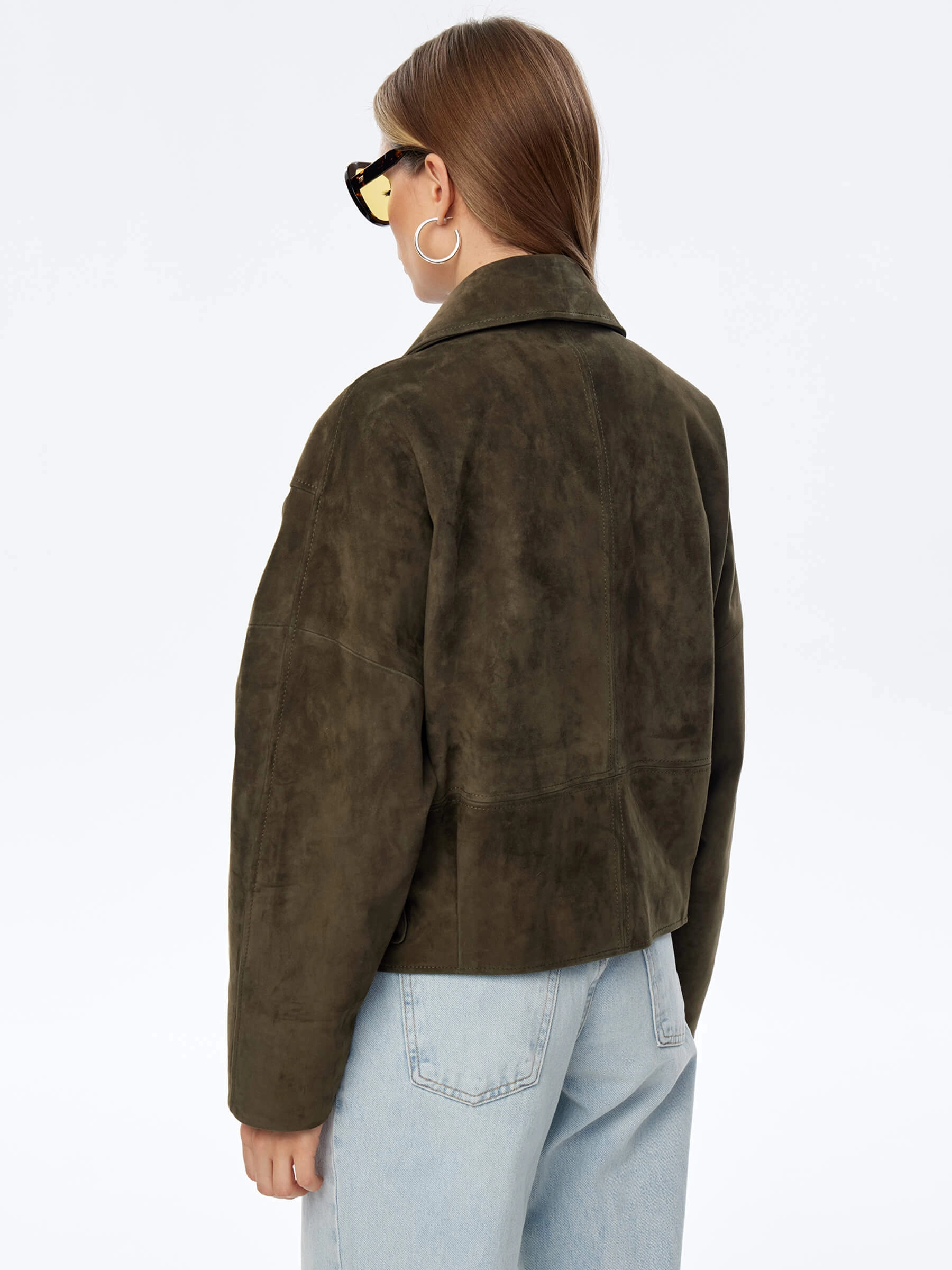 Товар короткая женская замшевая куртка косуха премиум класса 3051з, хаки, размер 44, артикул 23930 выполнен из натуральной замши с застежкой молния. Рассчитан на сезон: весна-лето. Длина изделия 60 см, силуэт свободный.