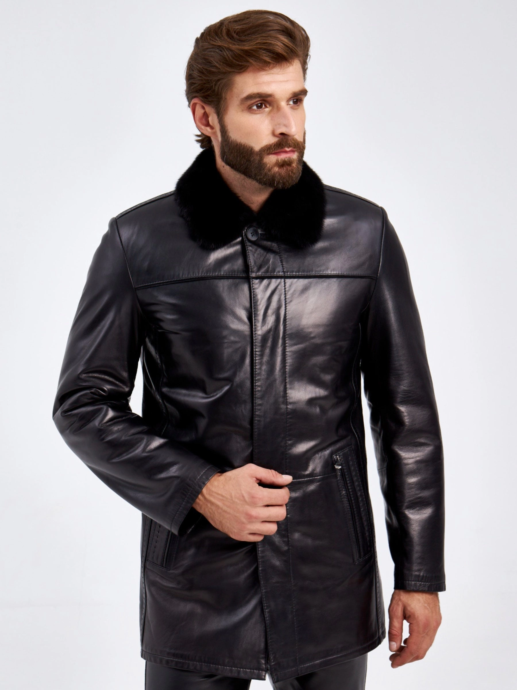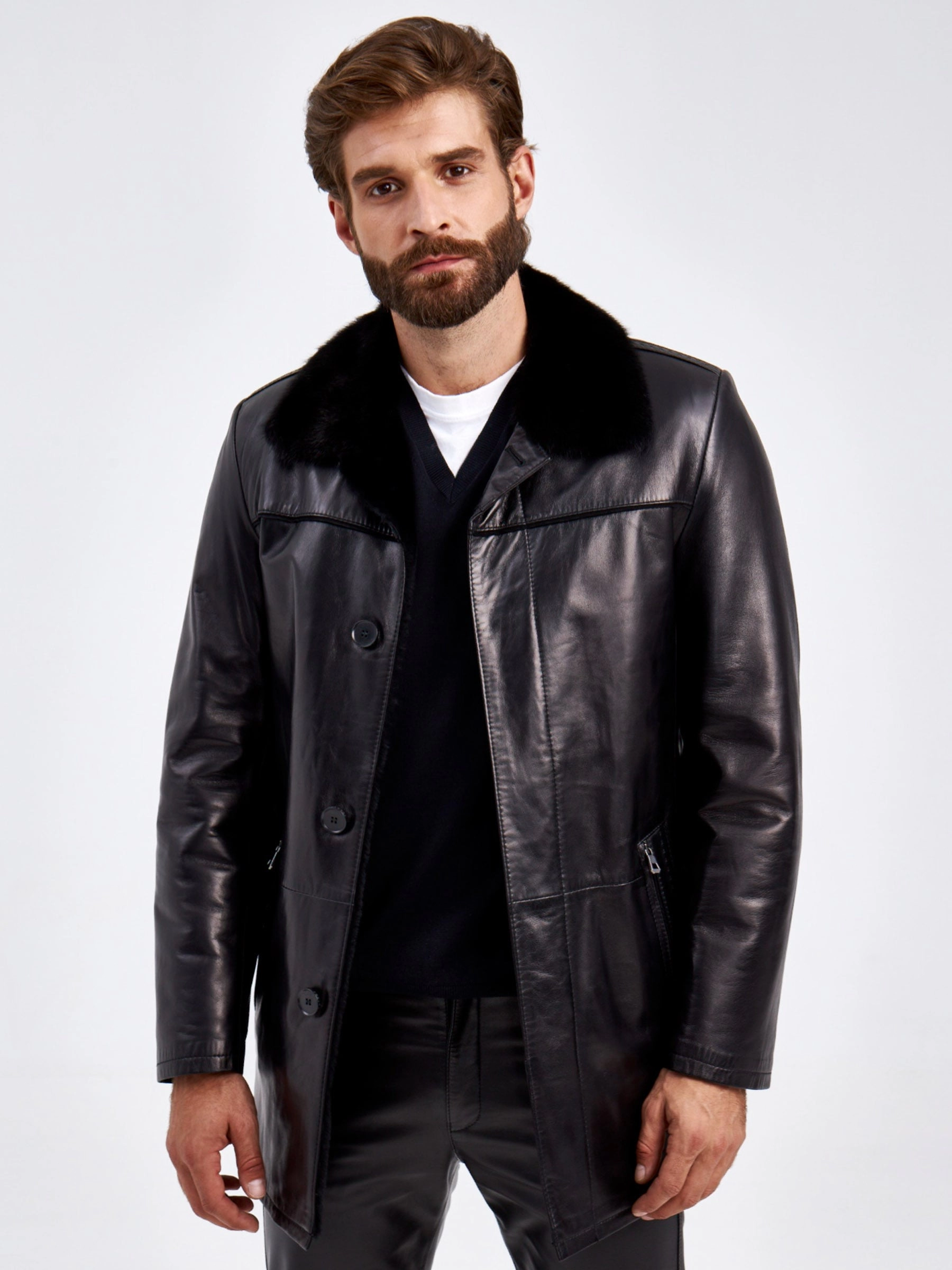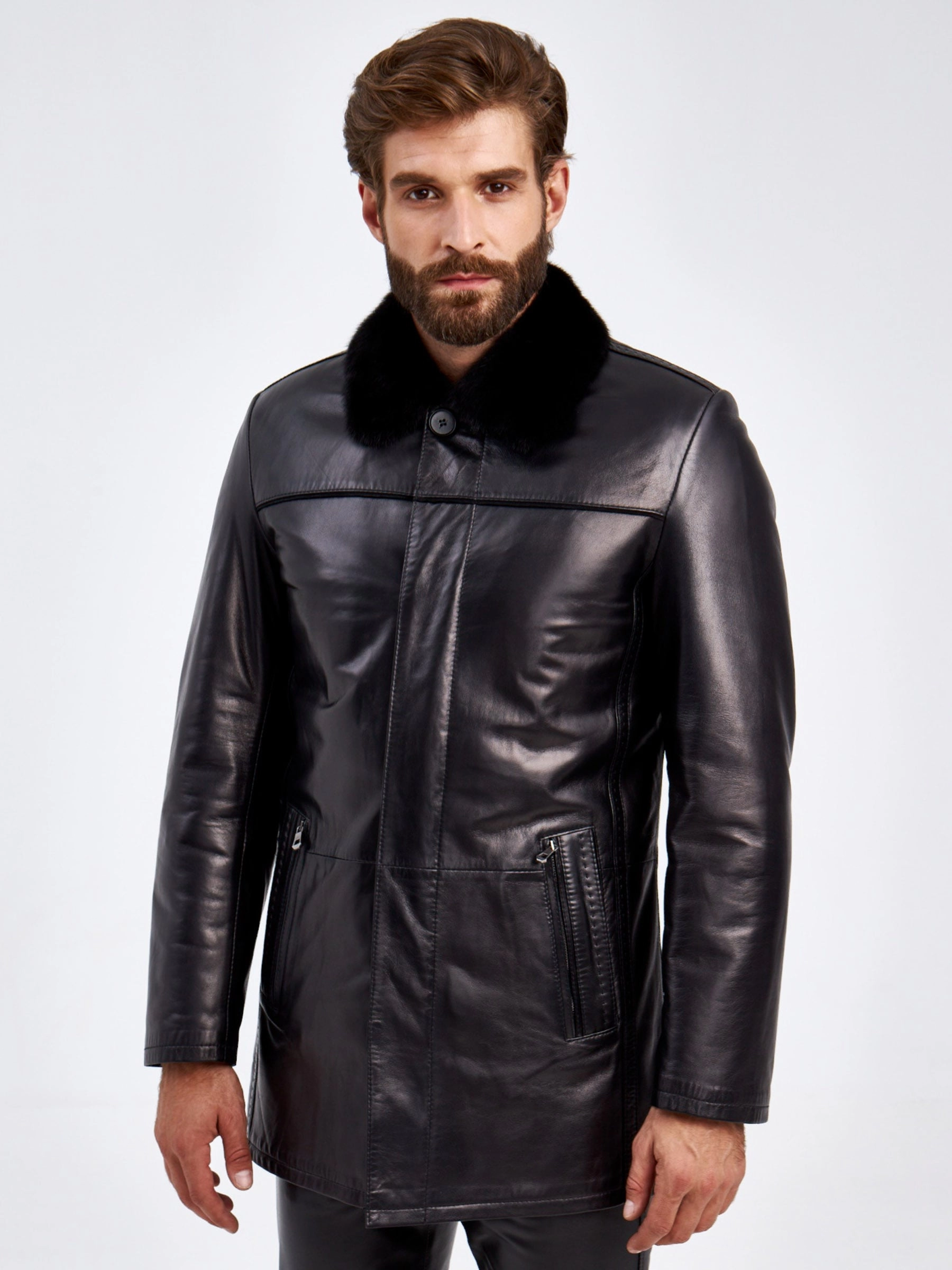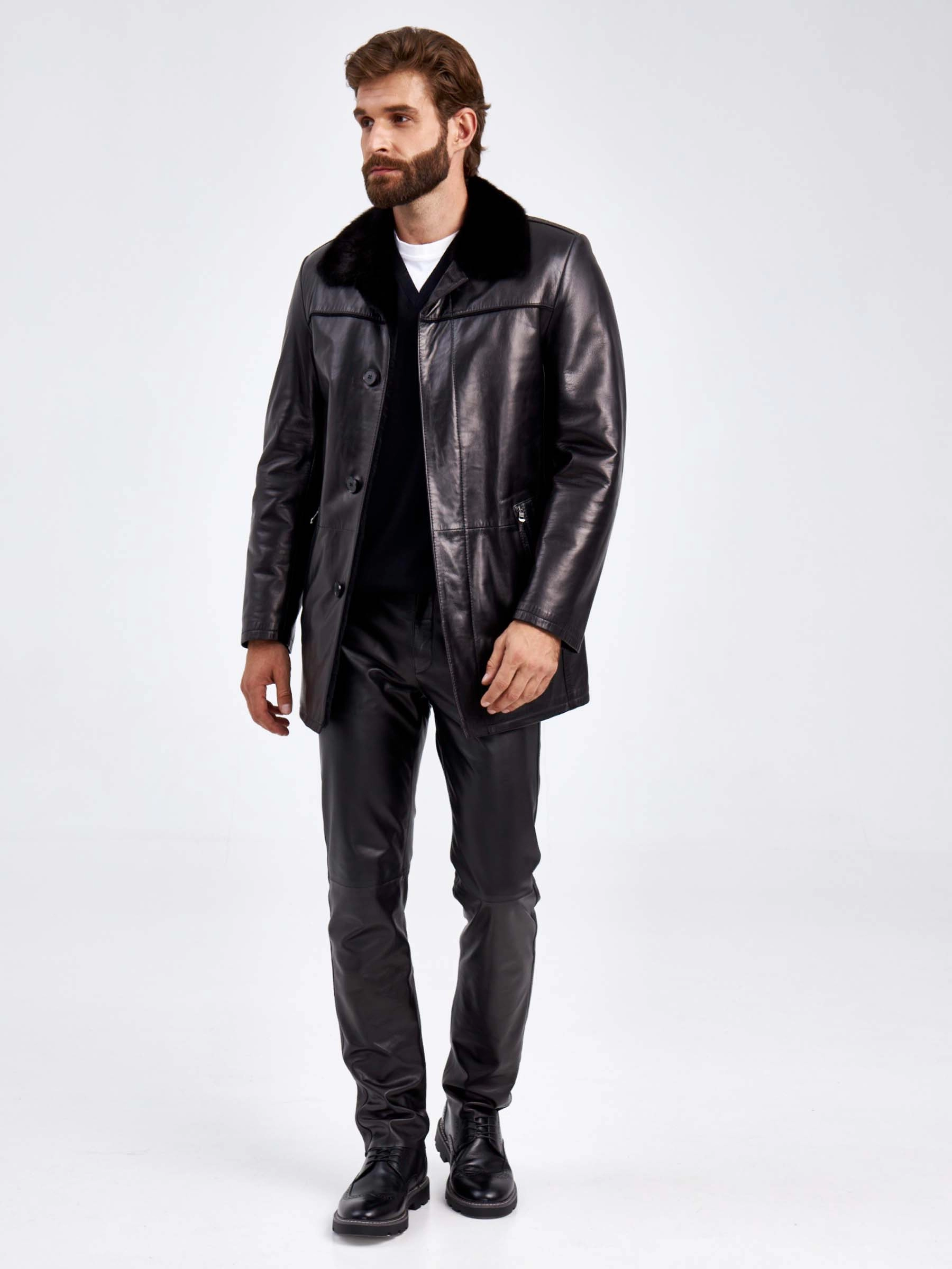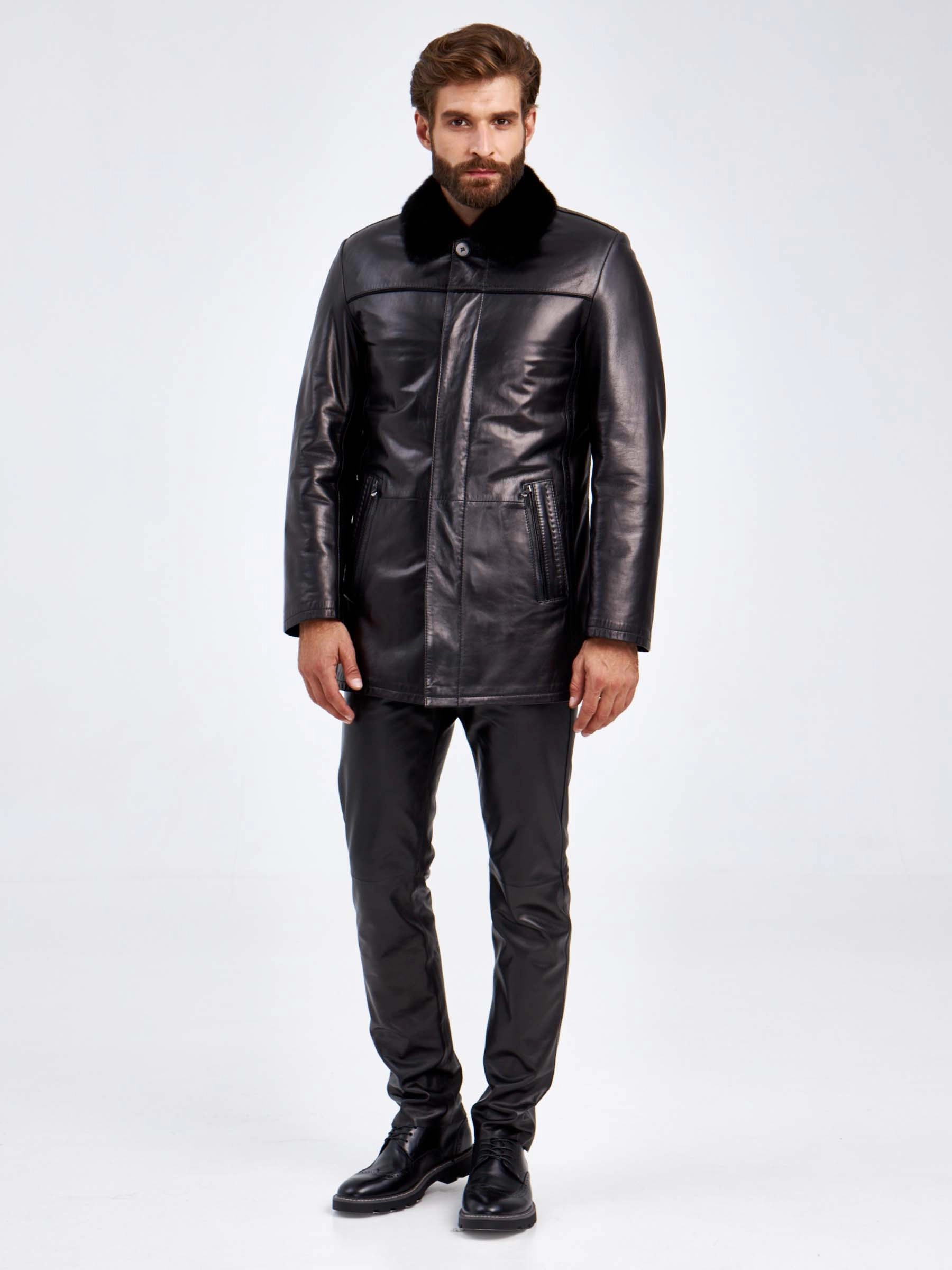 Товар мужская кожаная дубленка с воротником из меха норки 5796 , черная, размер 46, артикул 70930 выполнен из натуральной кожи с застежкой пуговицы. Рассчитан на сезон: осень-зима. Длина изделия 84 см, силуэт полуприлегающий.