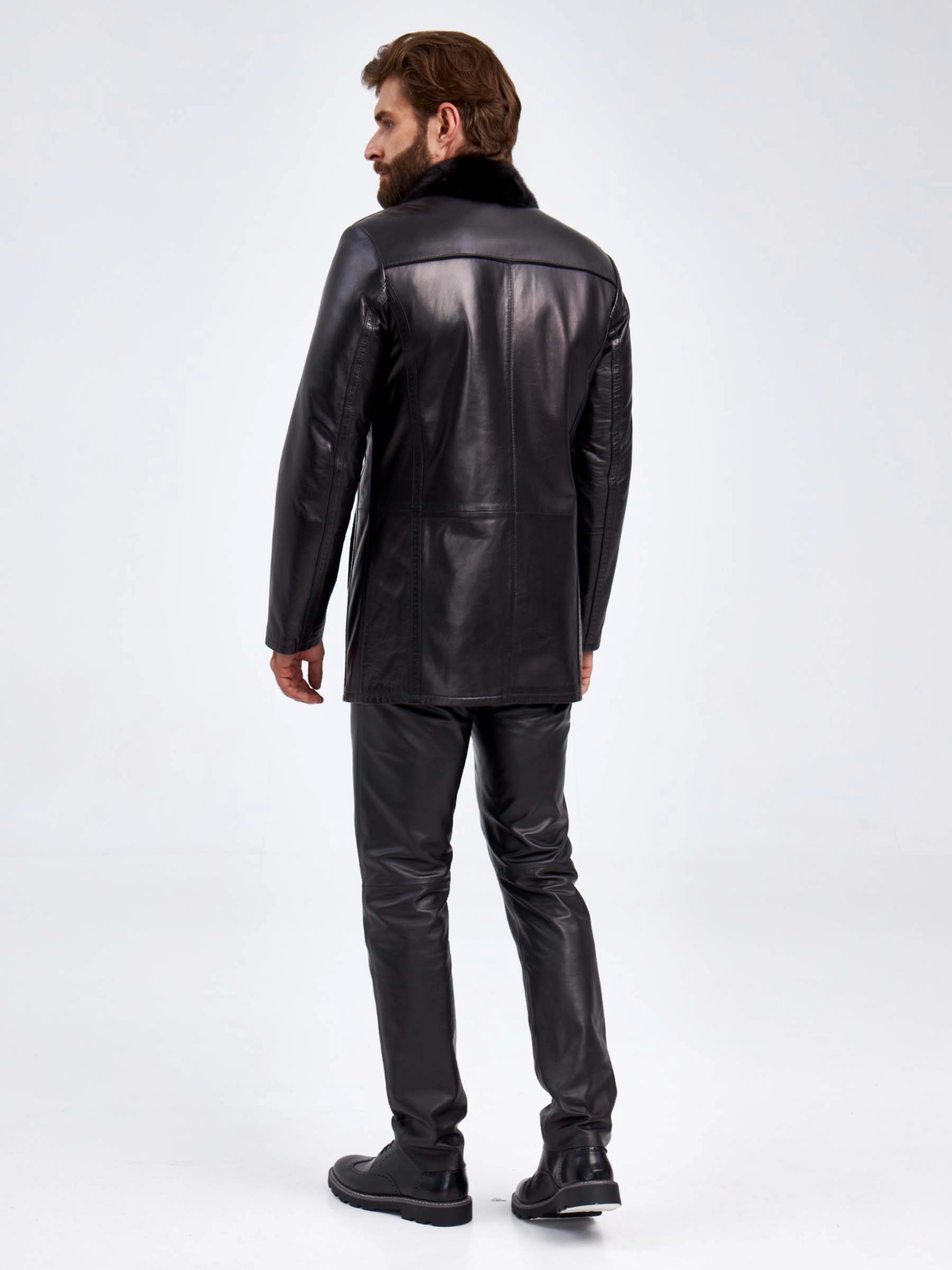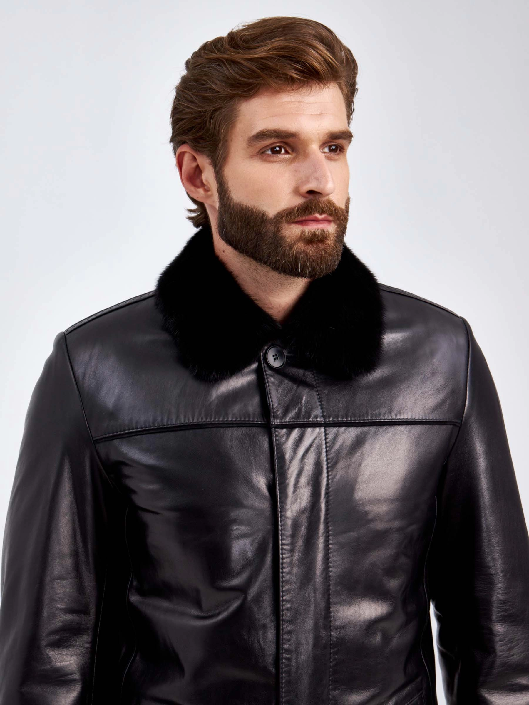 Мужская кожаная дубленка с воротником из меха норки 5796 , черная, размер 46, артикул 70930