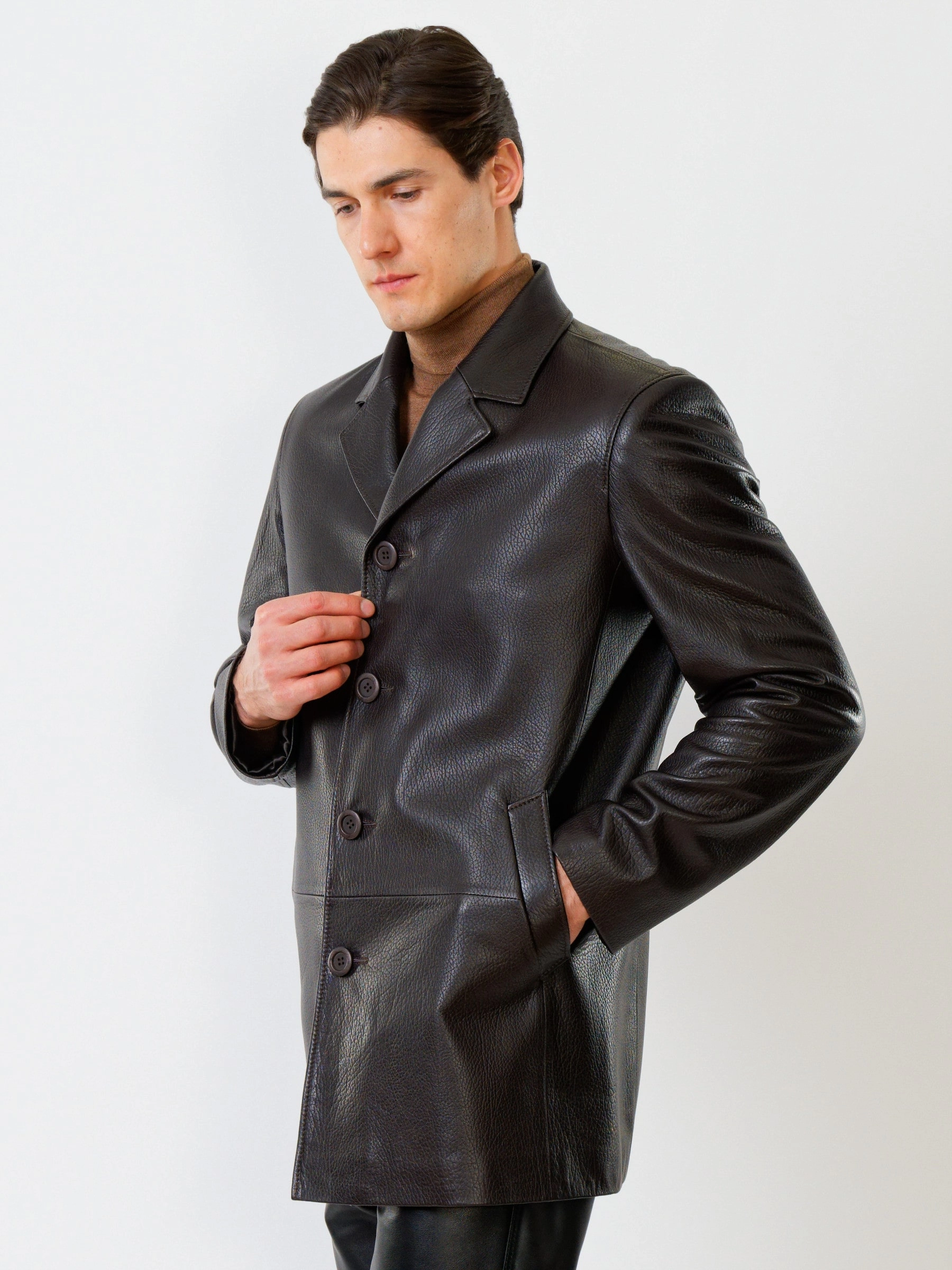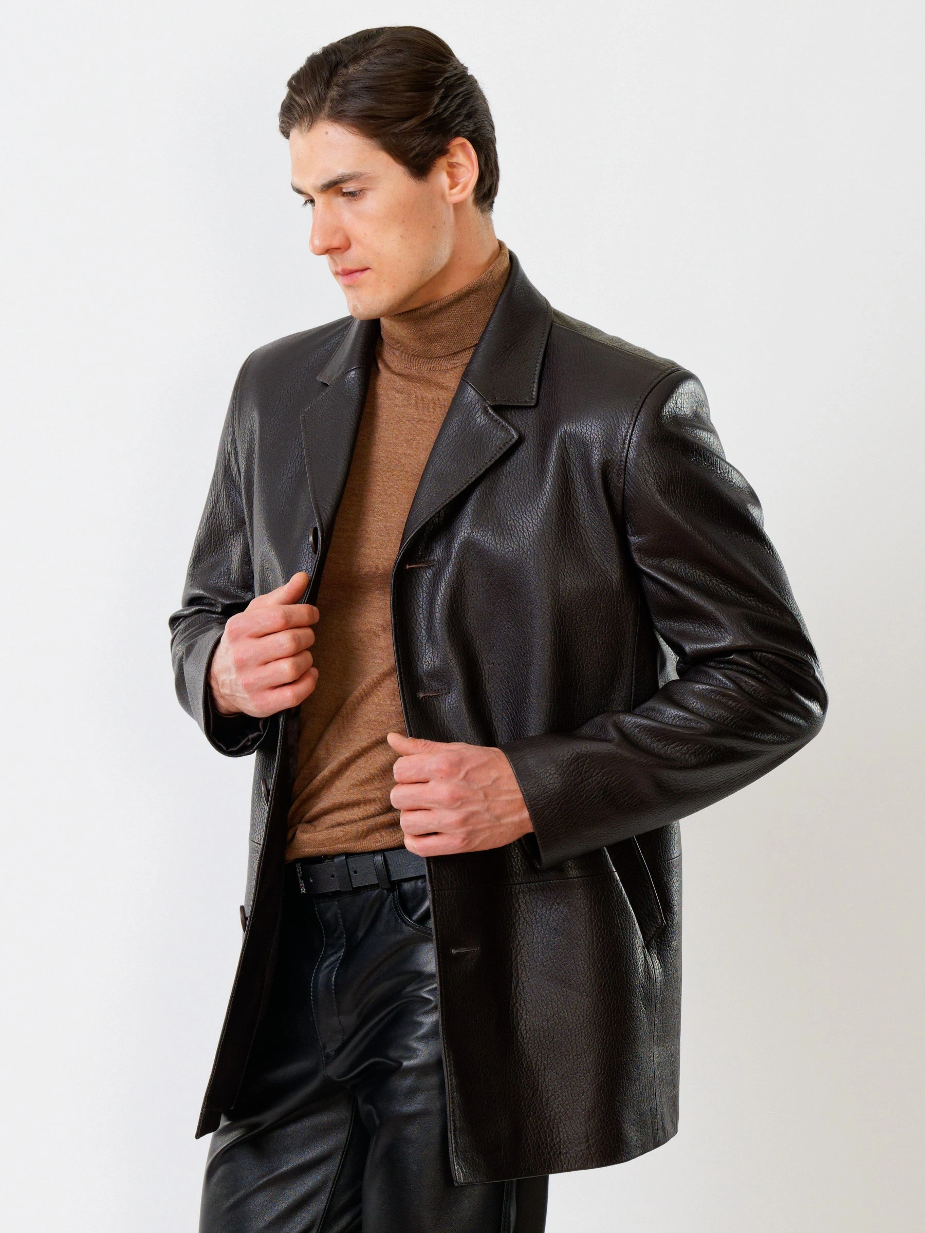 Мужская кожаная куртка на пуговицах 21/1, коричневая, размер 50, артикул 29620