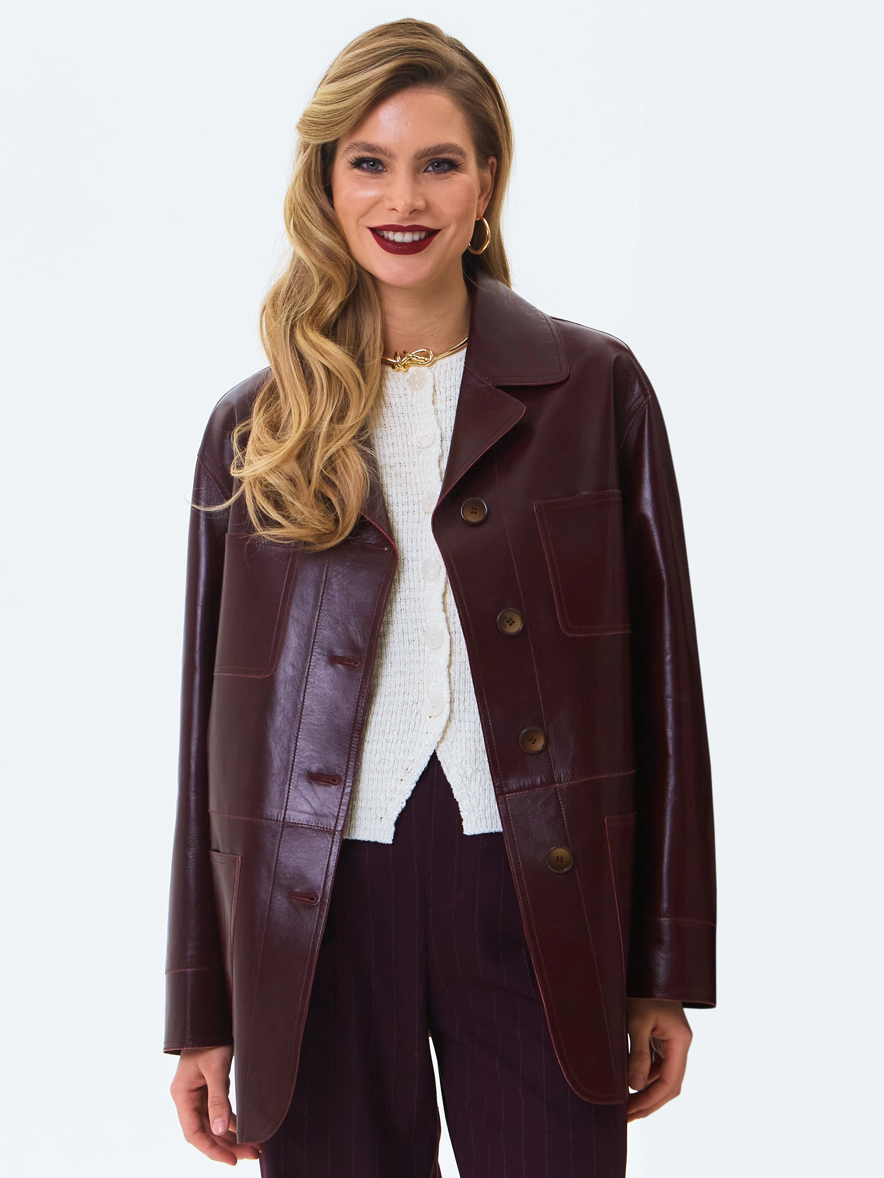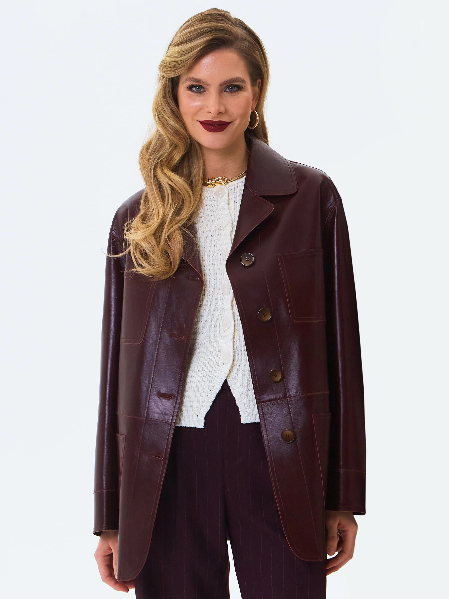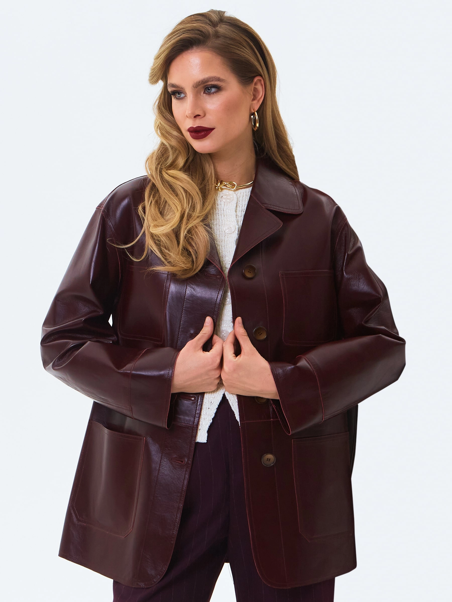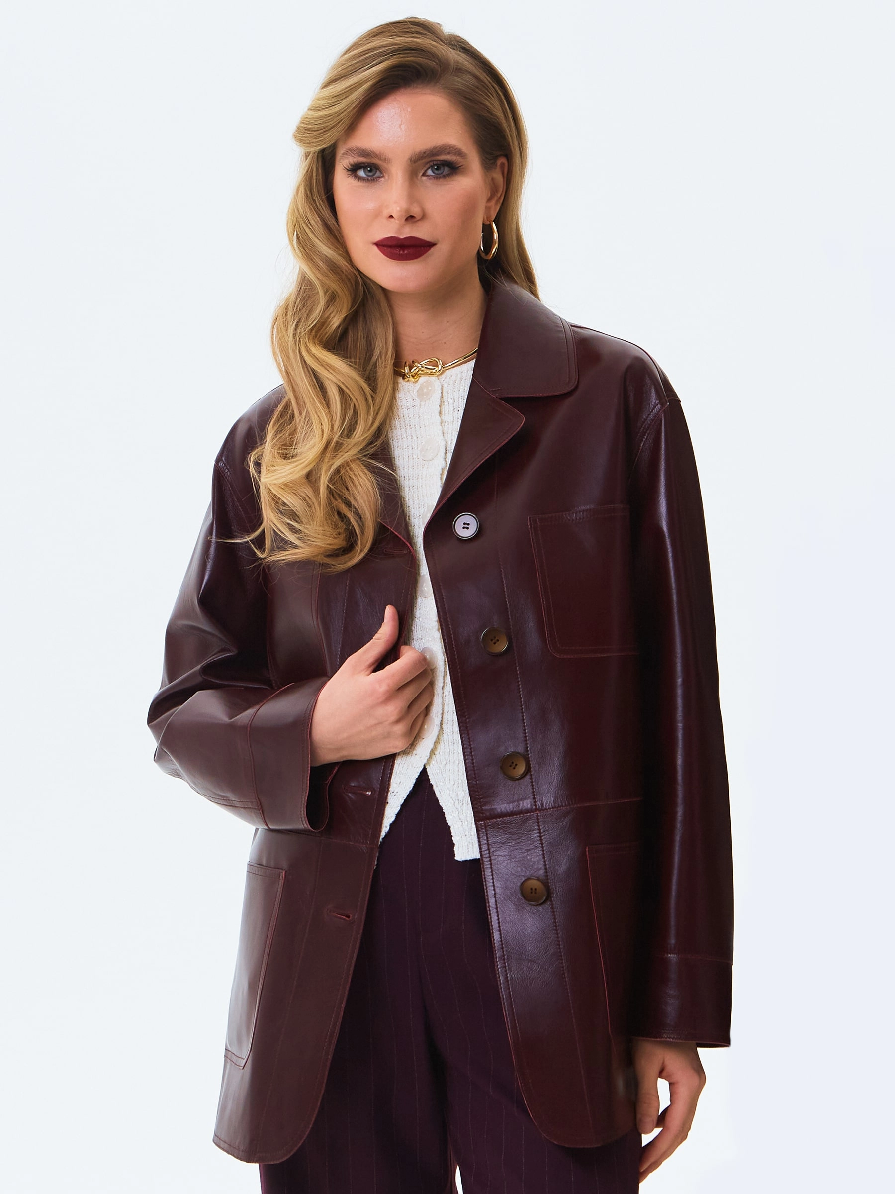 Товар кожаная куртка премиум класса для женщин 3092, бордовая, размер 46, артикул 24320 выполнен из натуральной кожи с застежкой пуговицы. Рассчитан на сезон: весна-осень. Длина изделия 74 см, силуэт прямой.