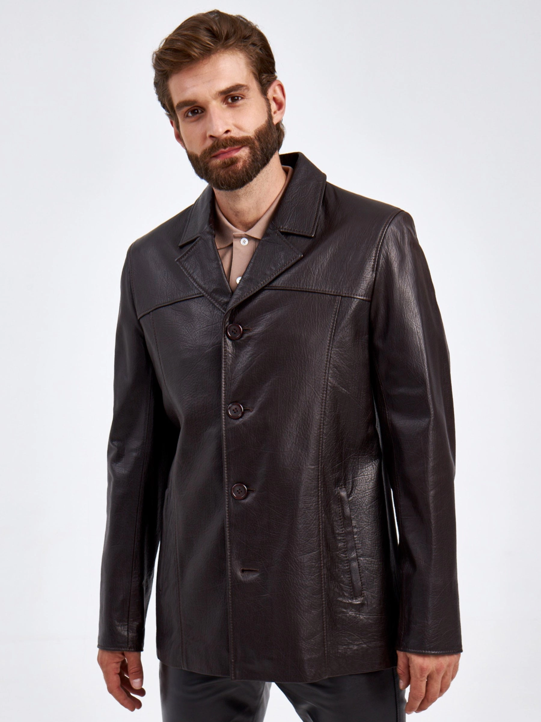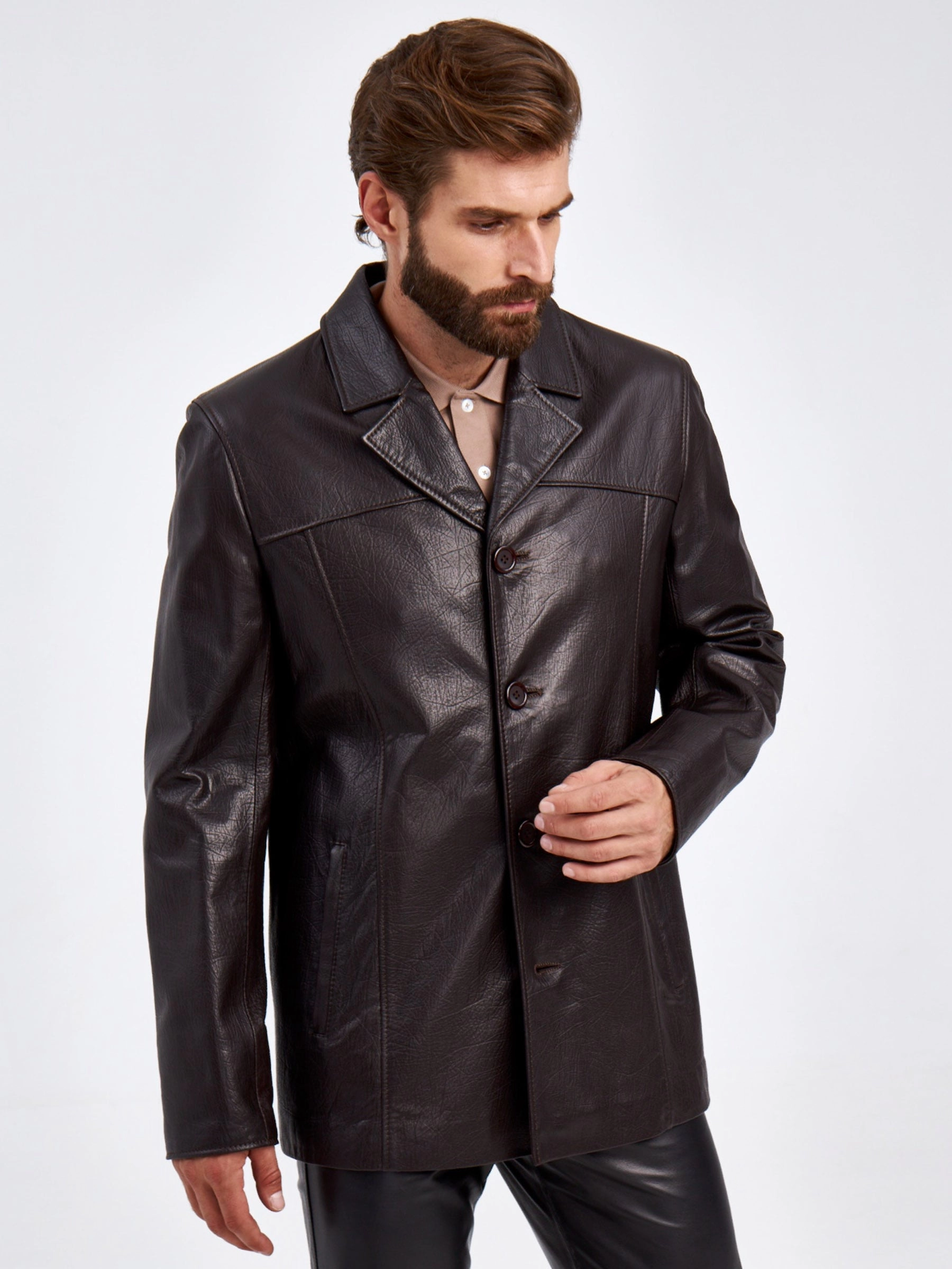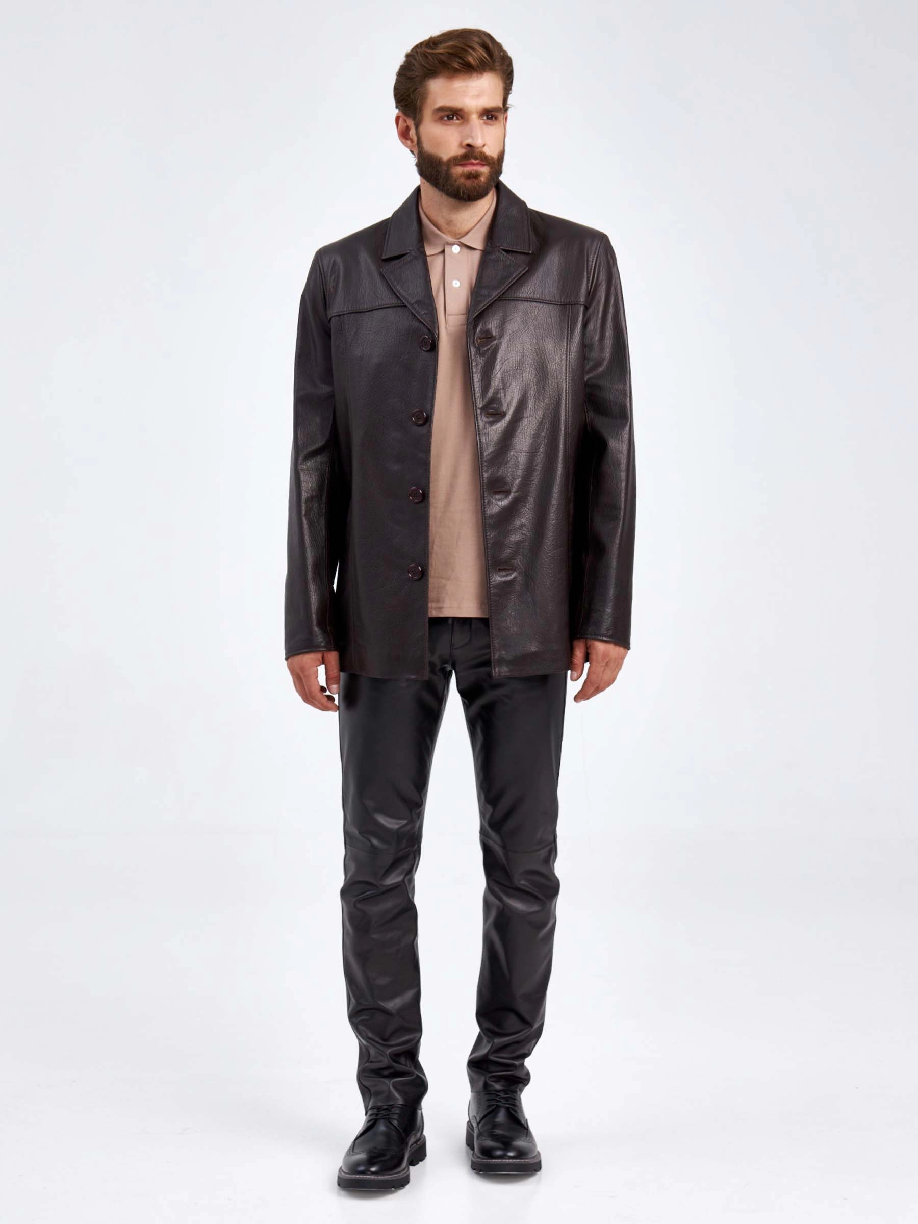 Товар кожаный пиджак для мужчин 2010-8, коричневый, размер 48, артикул 29320 выполнен из натуральной кожи с застежкой пуговицы. Рассчитан на сезон: демисезон. Длина изделия 75-90 см, силуэт полуприлегающий.