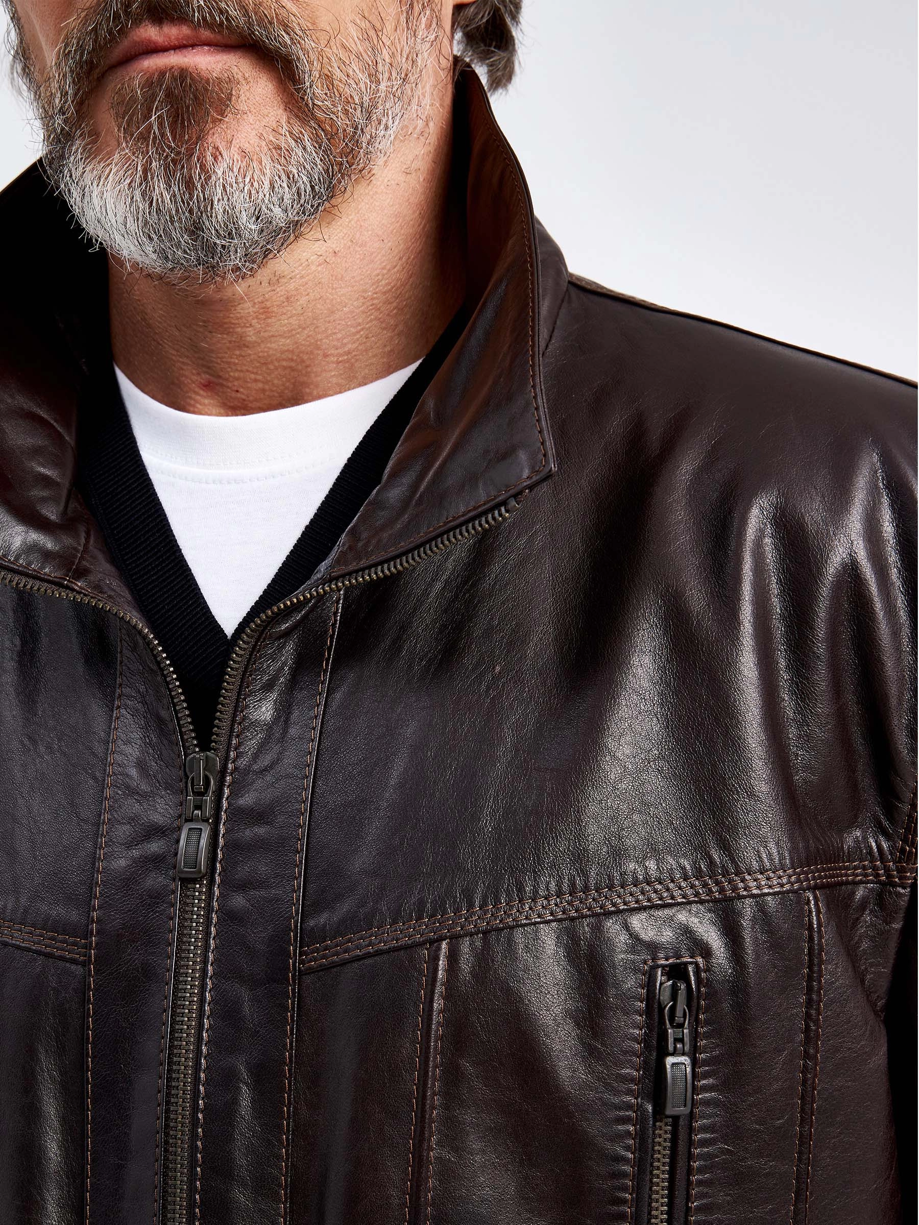 Кожаная куртка мужская 508, коричневая, размер 58, артикул 29570
