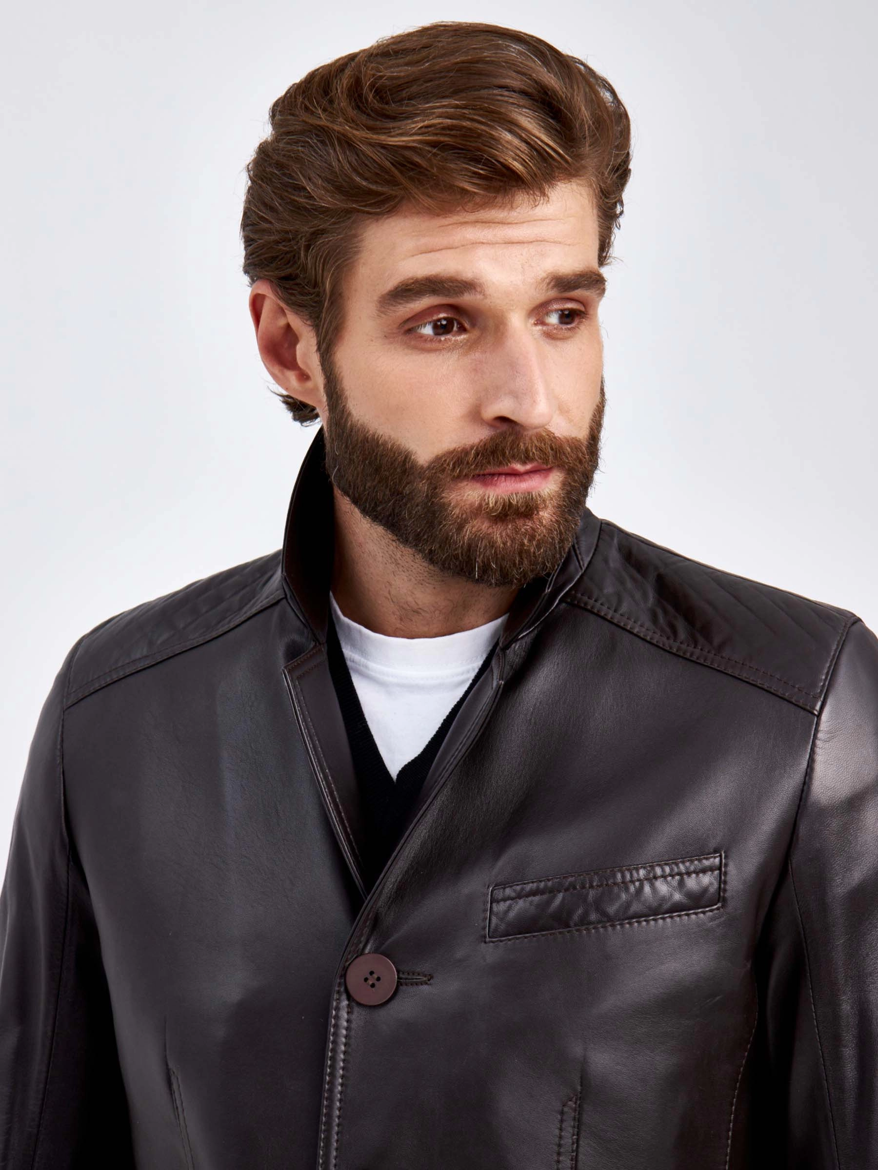 Кожаный пиджак мужской 530, коричневый, размер 50, артикул 29120