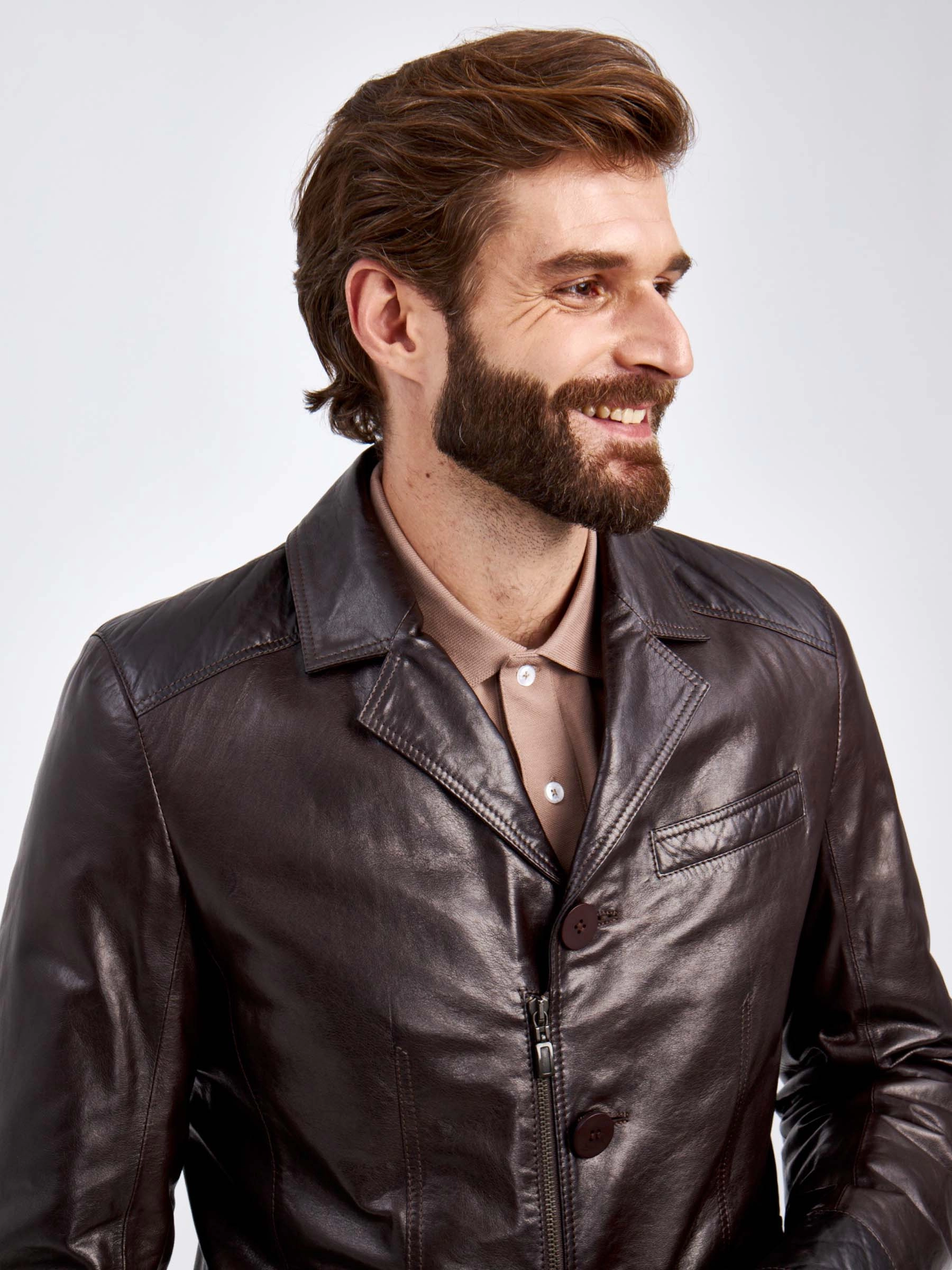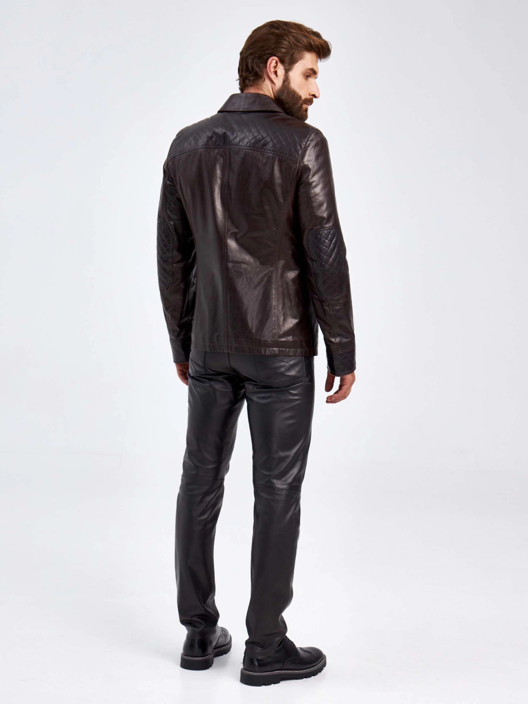 Утепленный мужской кожаный пиджак 530ш, коричневая, размер 50, артикул 29130