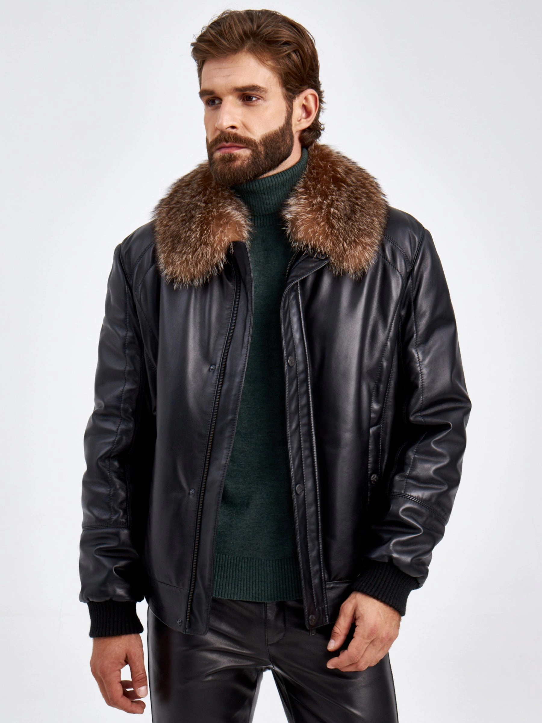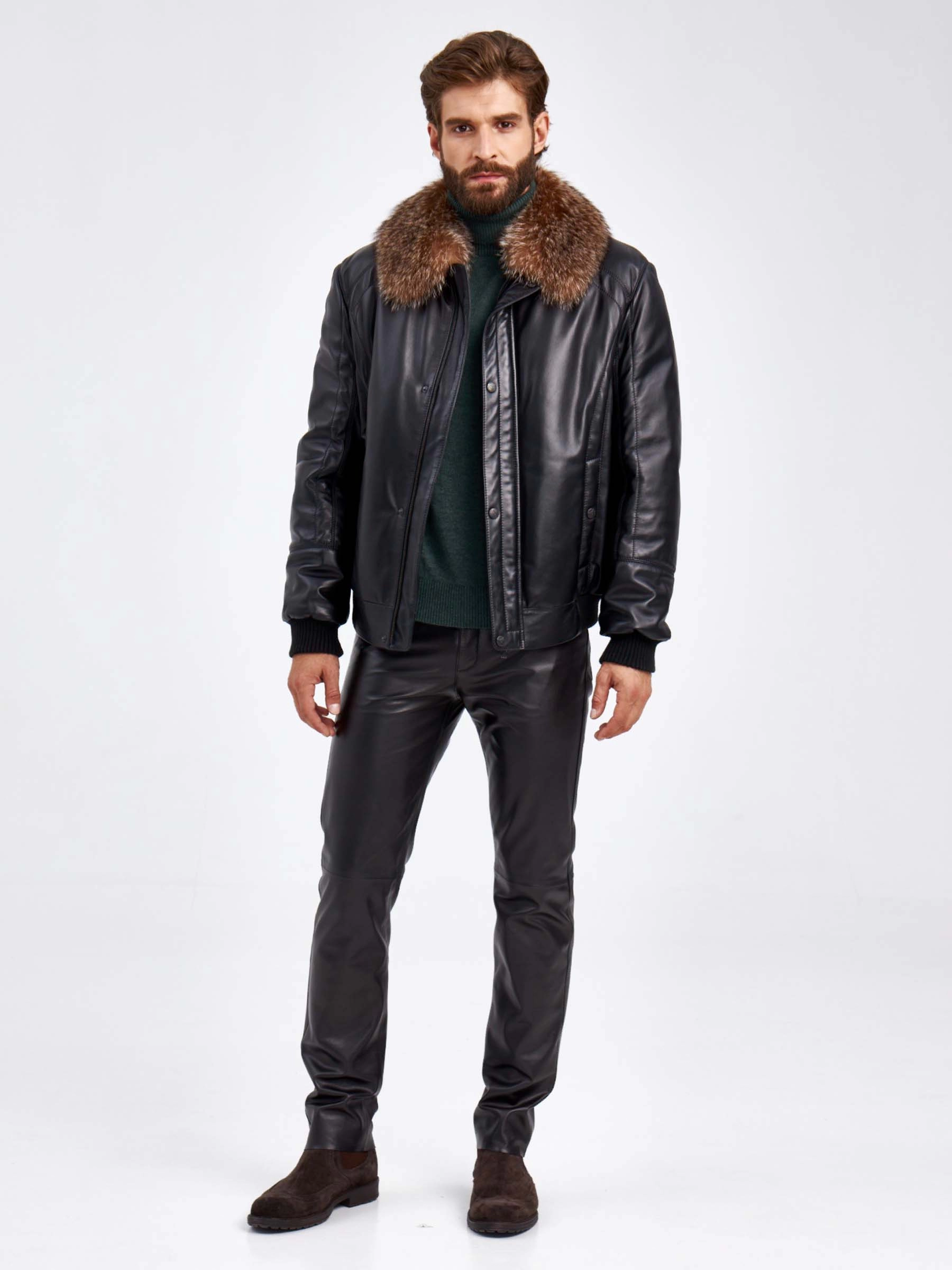 Товар кожаный утепленный мужской пуховик с воротником из меха енота 532, черный, размер 52, артикул 29210 выполнен из натуральной кожи с застежкой молния. Рассчитан на сезон: осень-зима. Длина изделия 51-74 см, силуэт свободный.