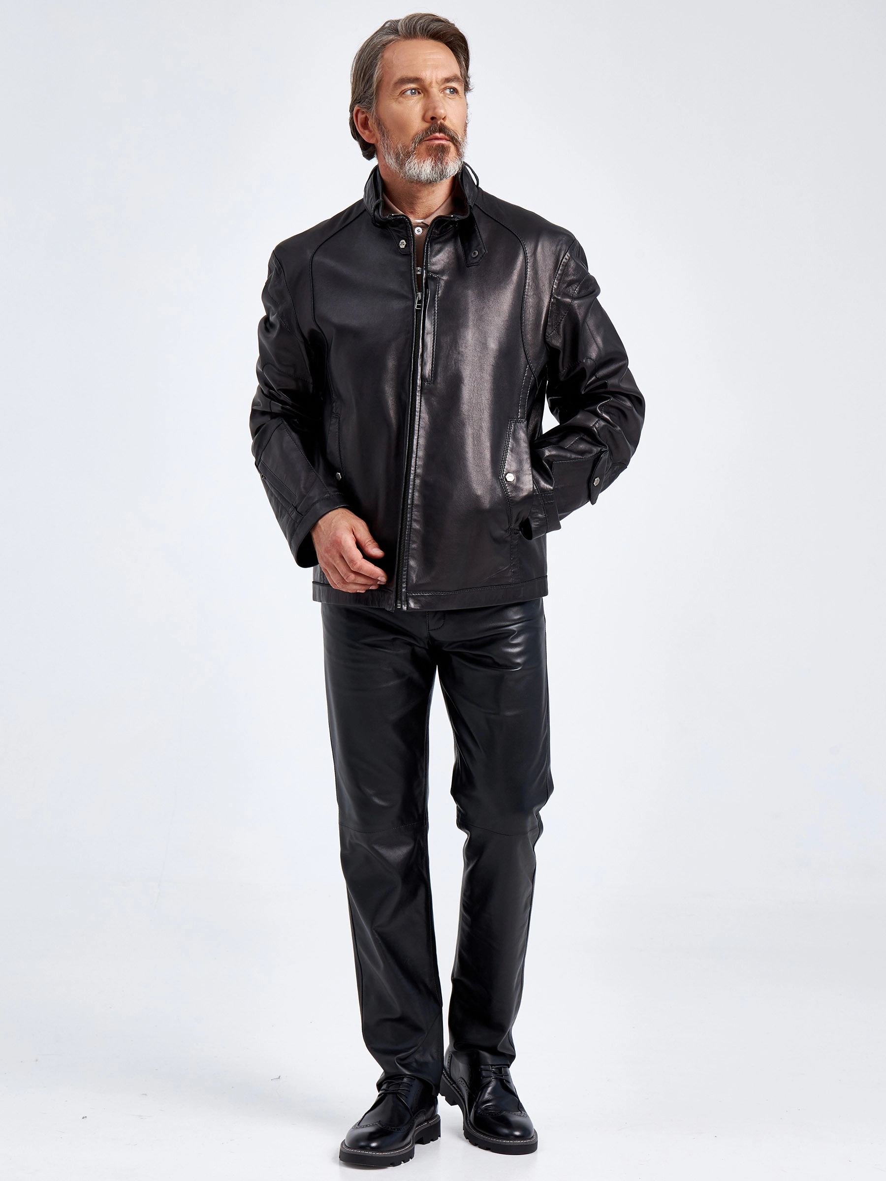 Кожаная куртка мужская Кельвин, черная, размер 58, артикул 29160