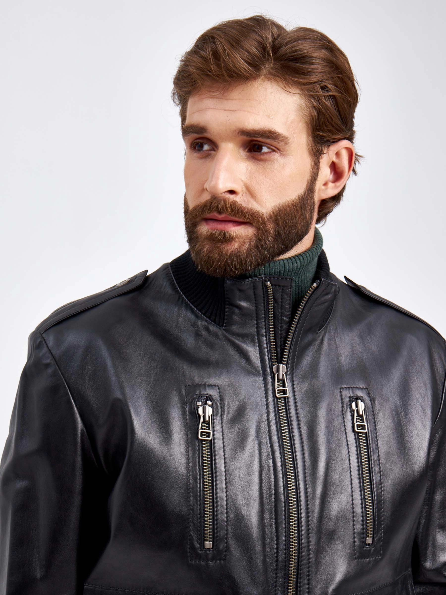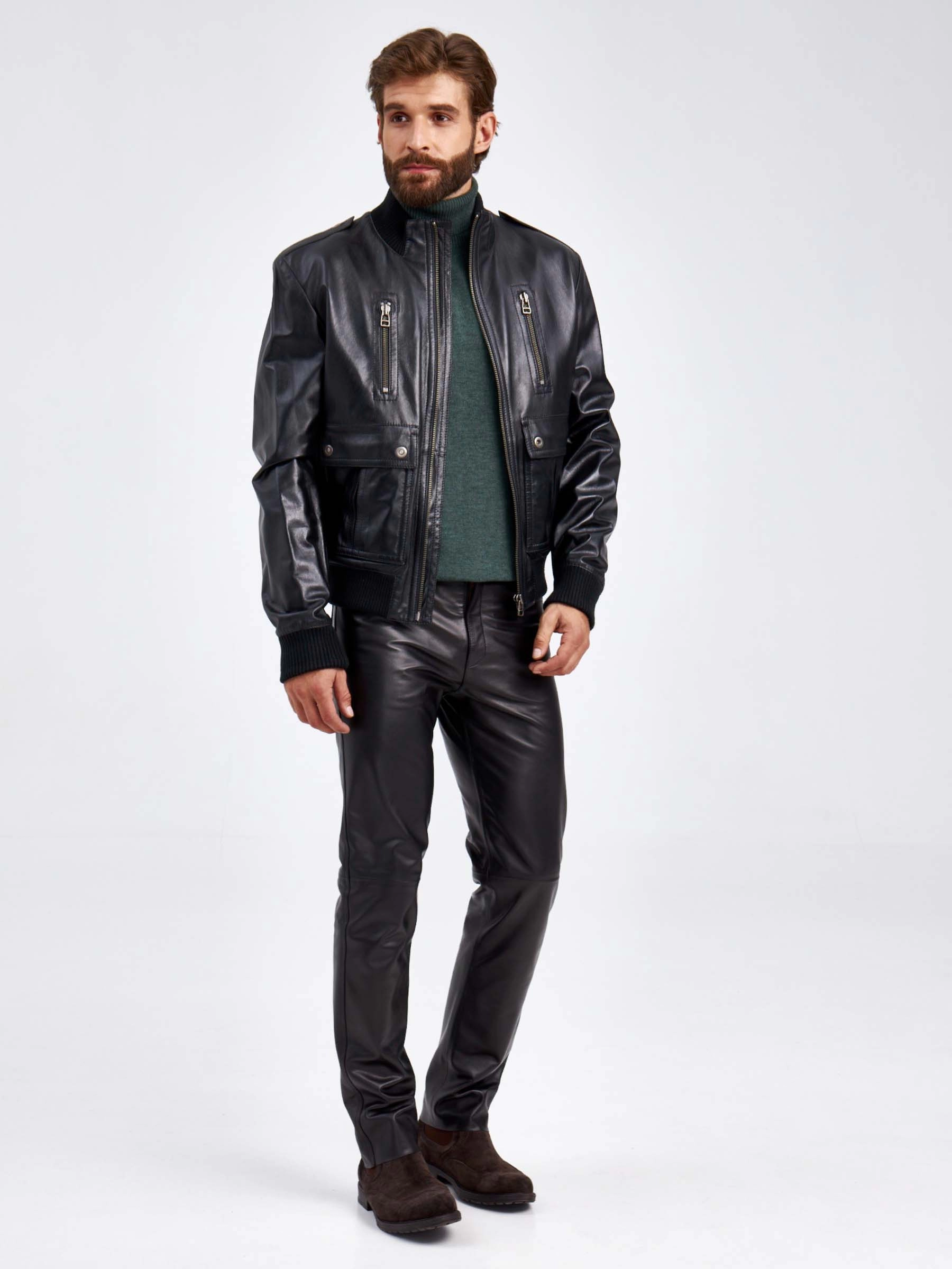 Кожаная куртка бомбер мужская Роми М, черная, размер 50, артикул 29410