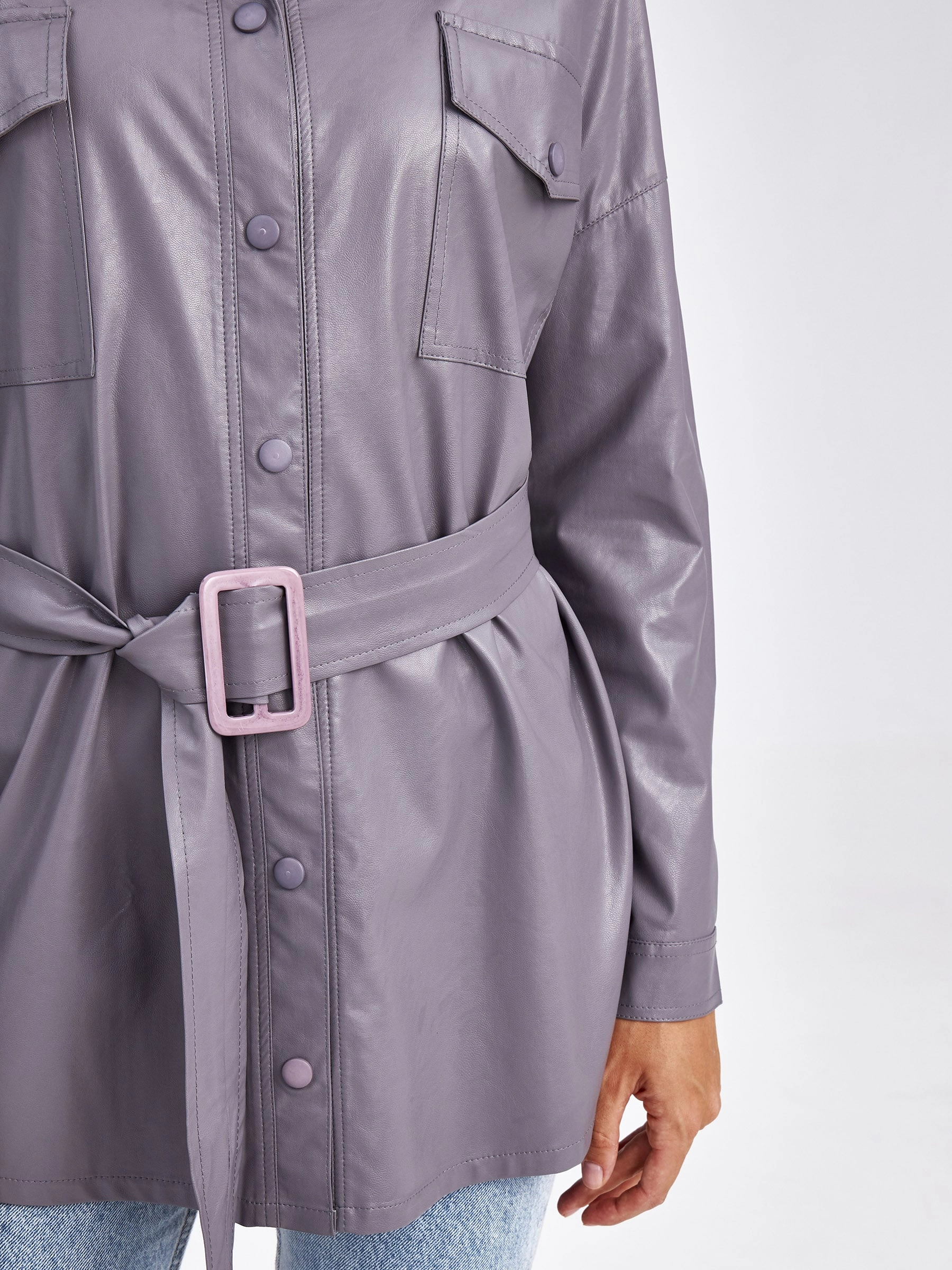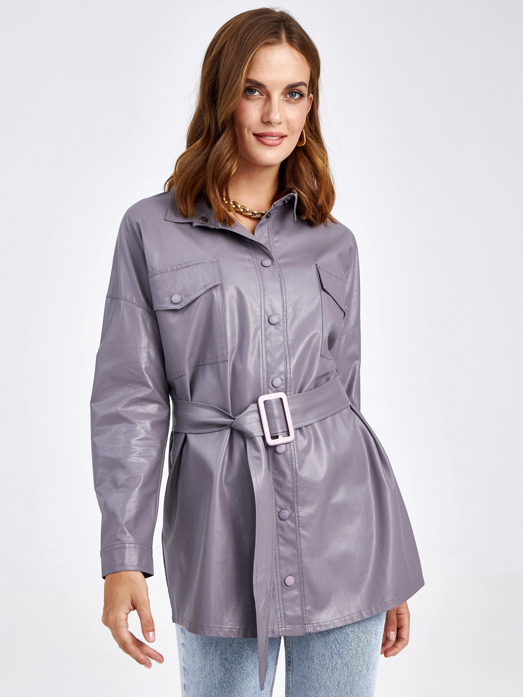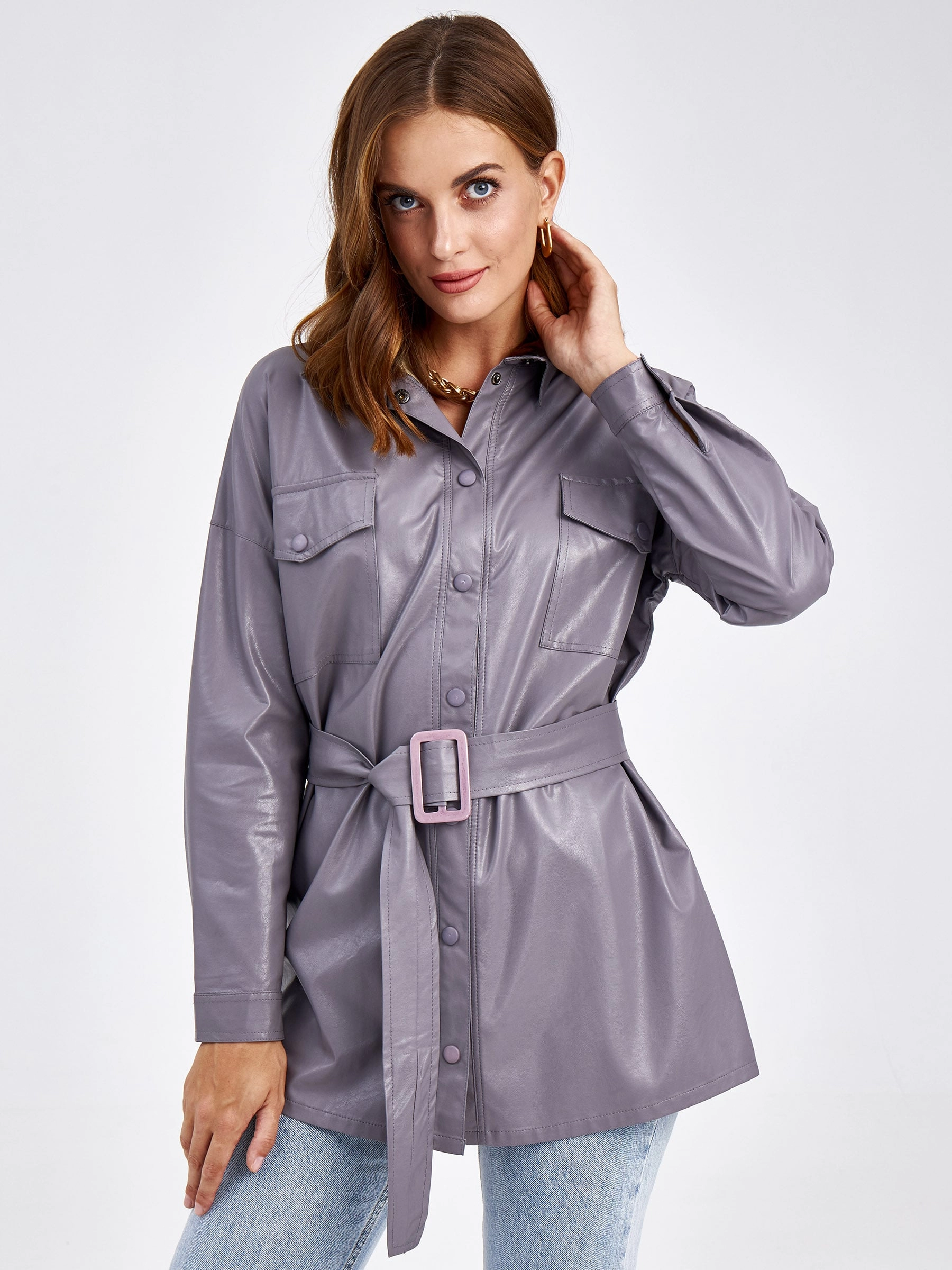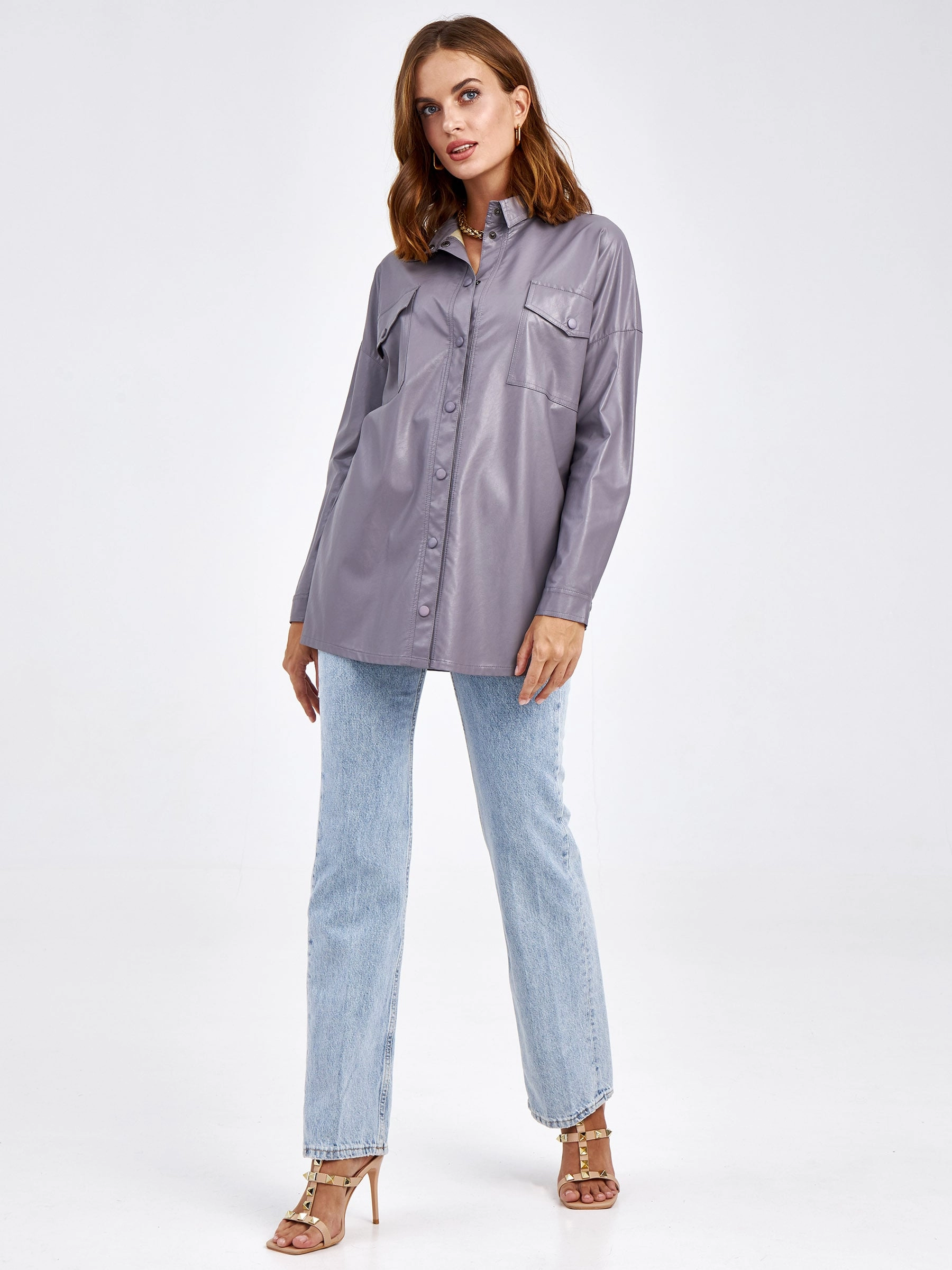Товар кожаная рубашка женская из экокожи 4820795, серая, размер 44, артикул 85741 выполнен из экокожи с застежкой кнопки. Рассчитан на сезон: демисезон. Длина изделия 73 см, силуэт прямой.