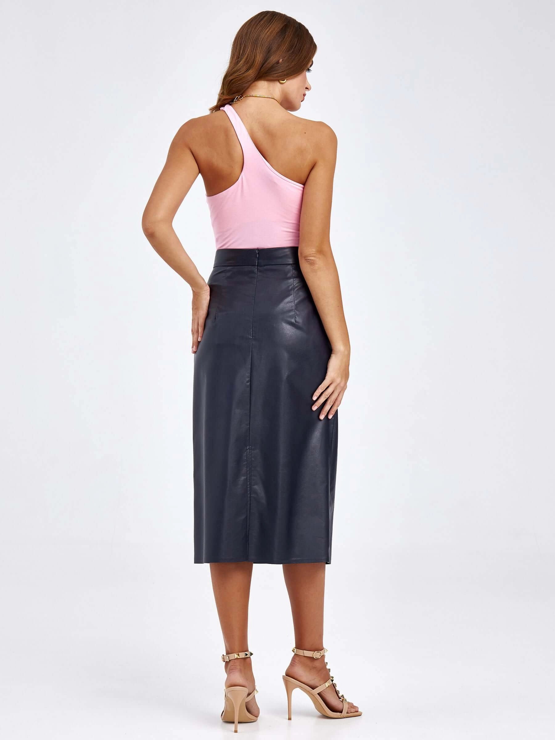 Женские кожаная юбка из экокожи 4540007, синяя, размер 48, артикул 85750