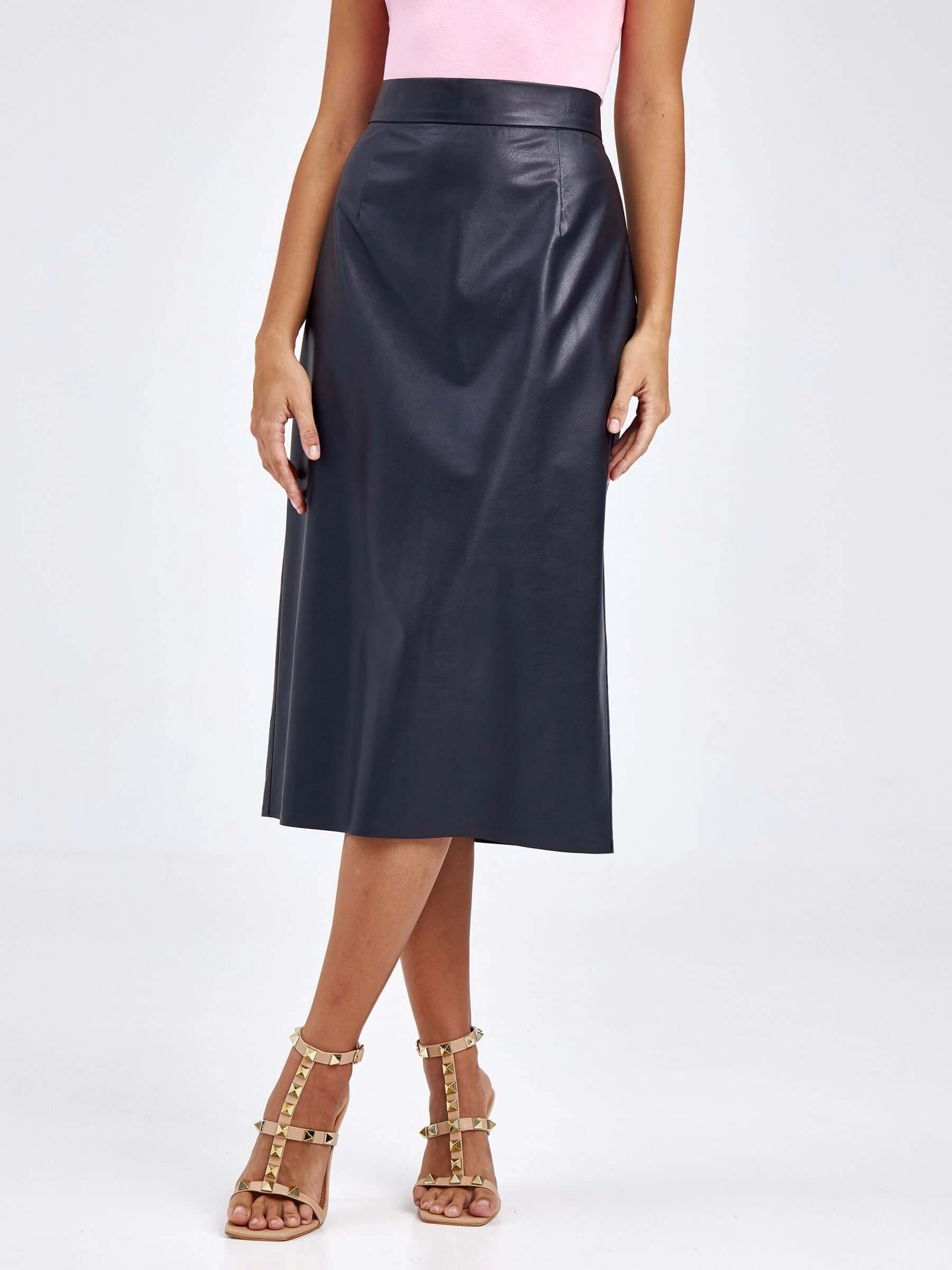 Товар женские кожаная юбка из экокожи 4540007, синяя, размер 48, артикул 85750 выполнен из экокожи с застежкой молния. Рассчитан на сезон: демисезон. Длина изделия 73 см, силуэт прямой.