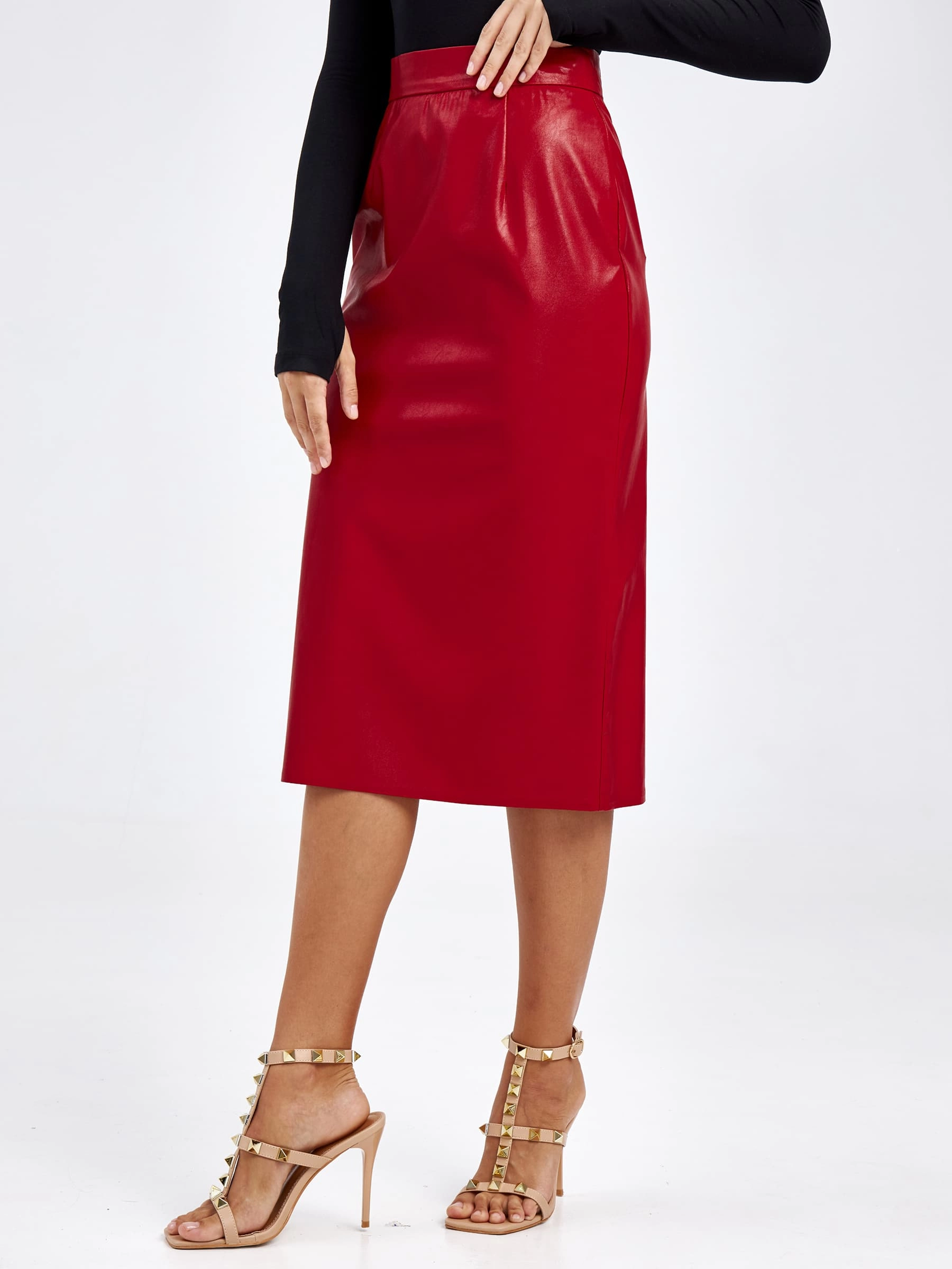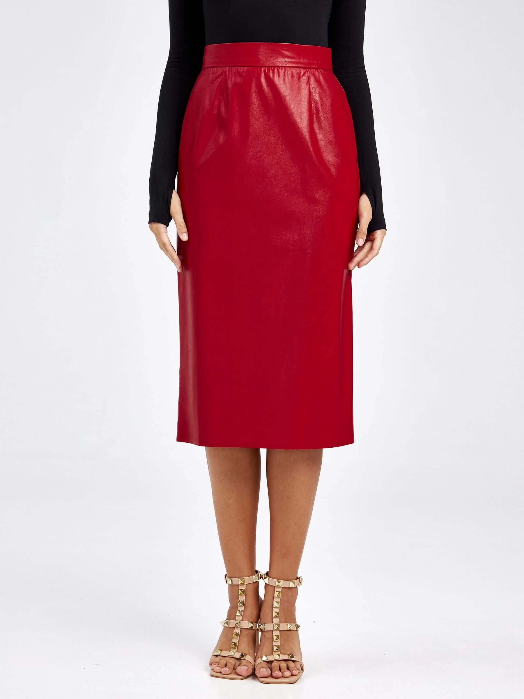Товар женские кожаная юбка из экокожи 4540009, красная, размер 44, артикул 85740 выполнен из экокожи с застежкой молния. Рассчитан на сезон: демисезон. Длина изделия 73 см, силуэт прямой.