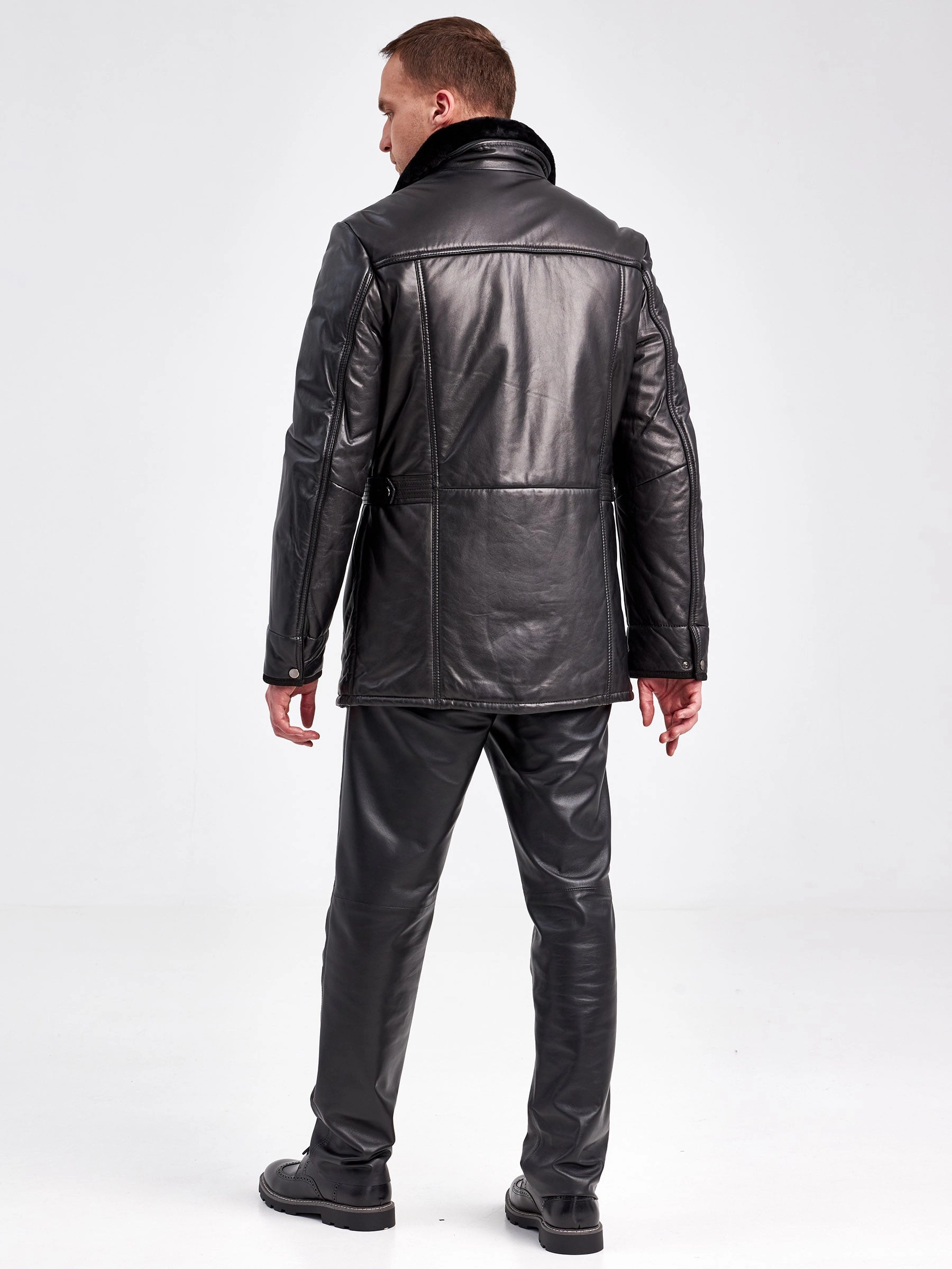 Кожаная зимняя мужская куртка с воротником из овчины 5723, черная, размер 46, артикул 40960