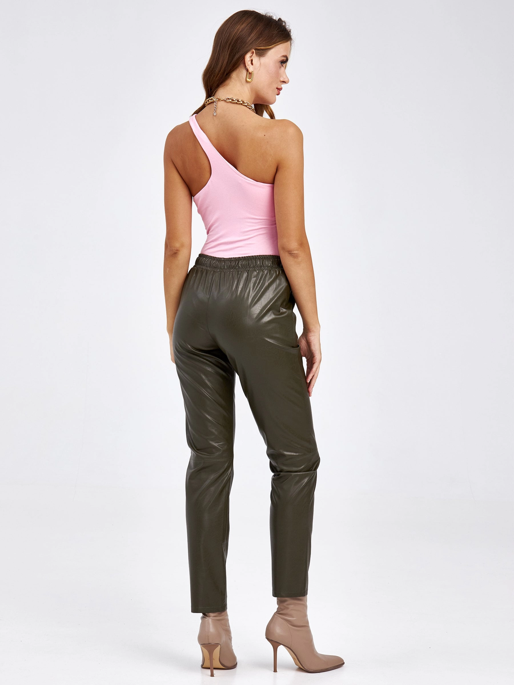 Женские кожаные брюки из экокожи 4616637, хаки, размер 44, артикул 85650