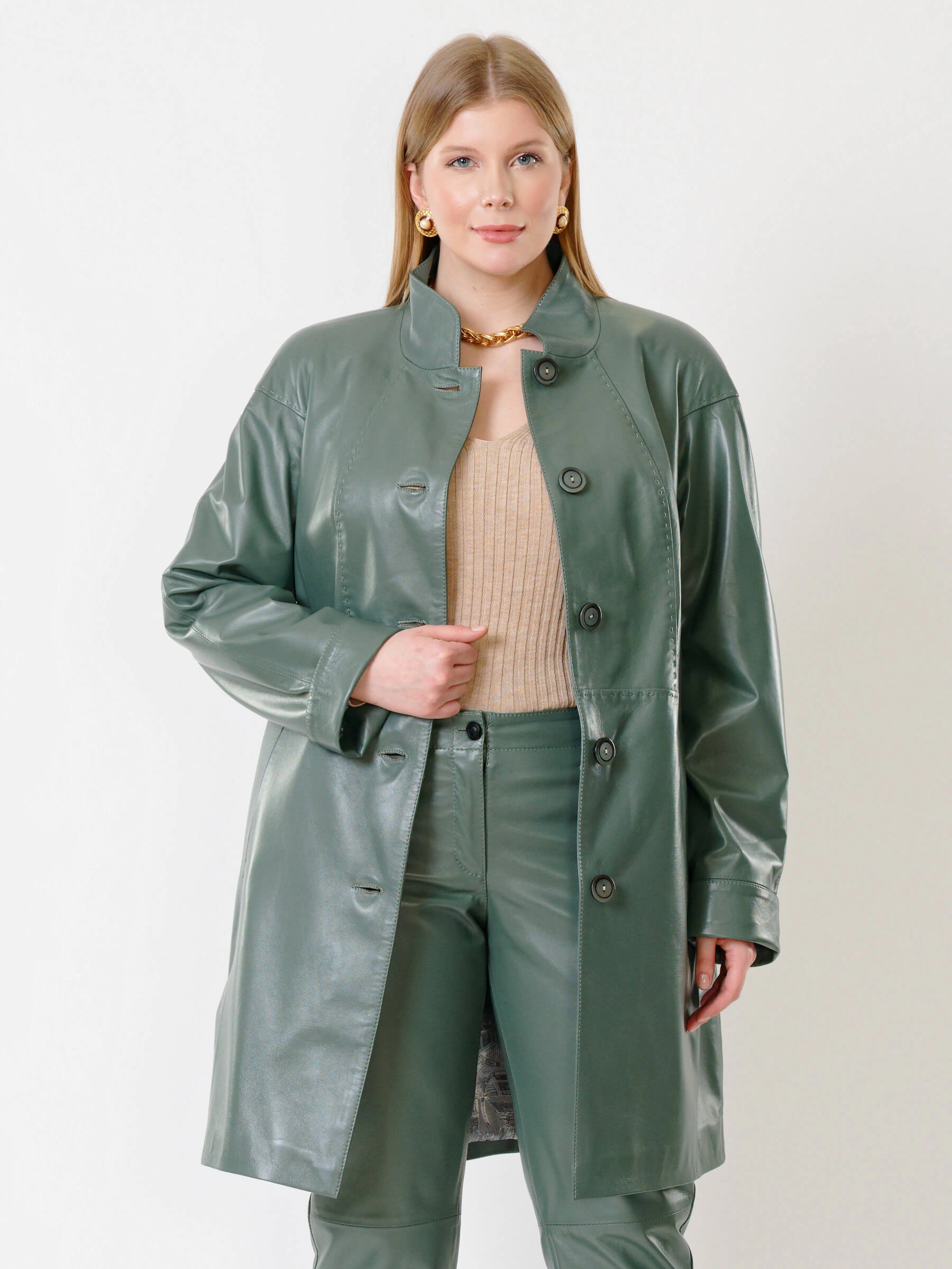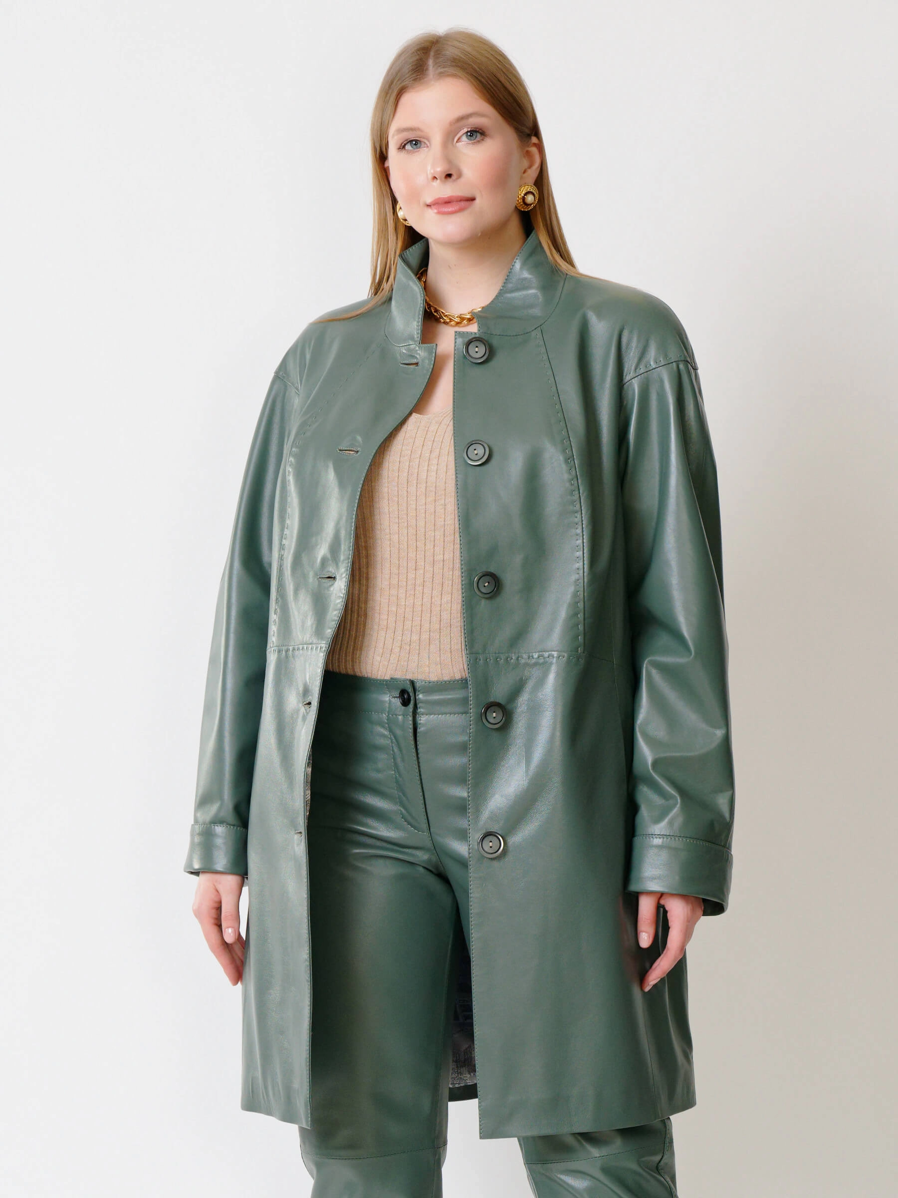 Кожаный комплект женский: Куртка 378 + Брюки 03, оливковый, р. 46, арт. 111159