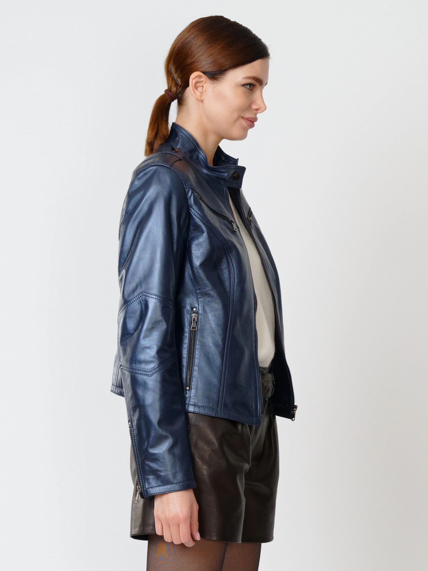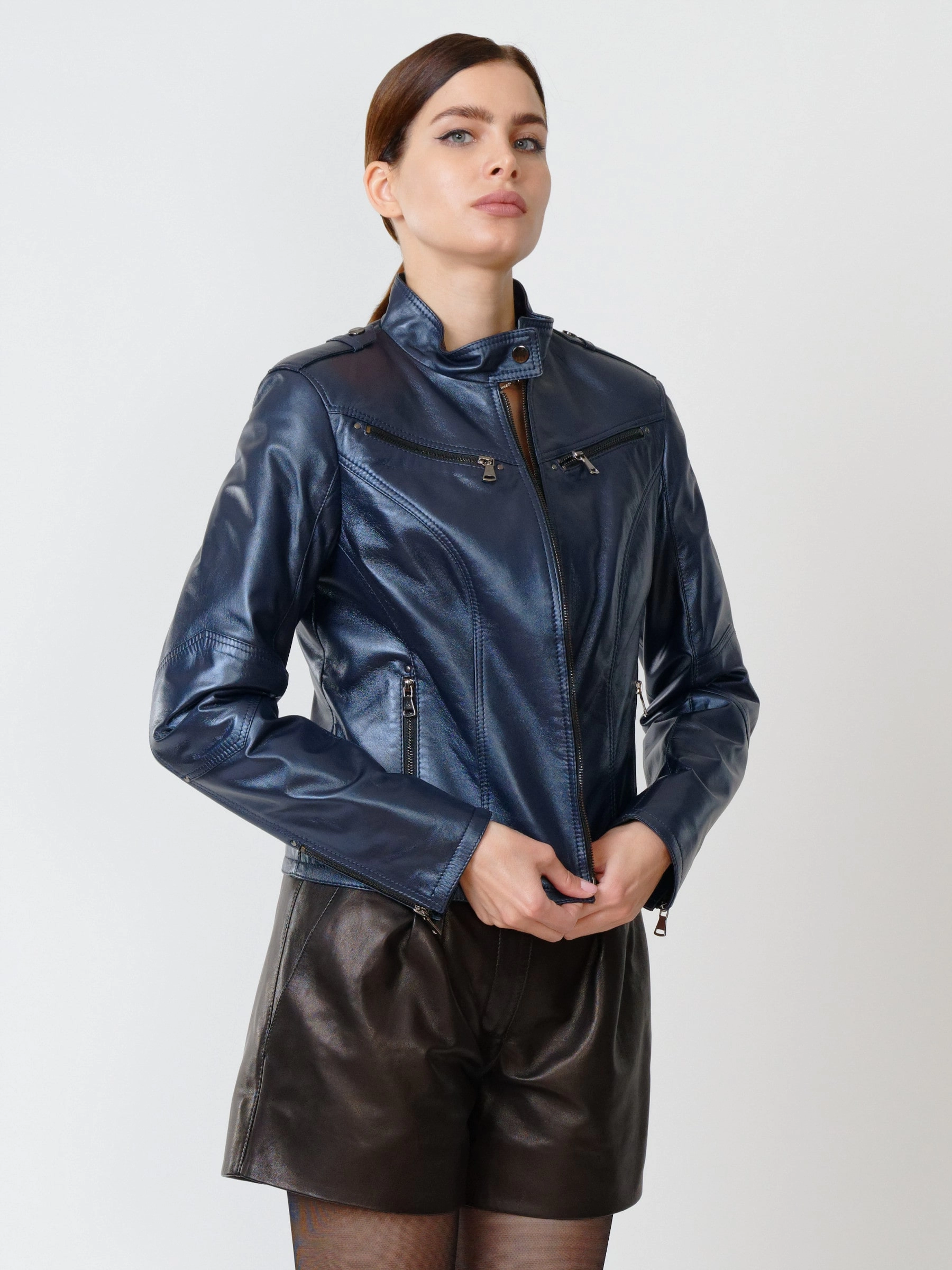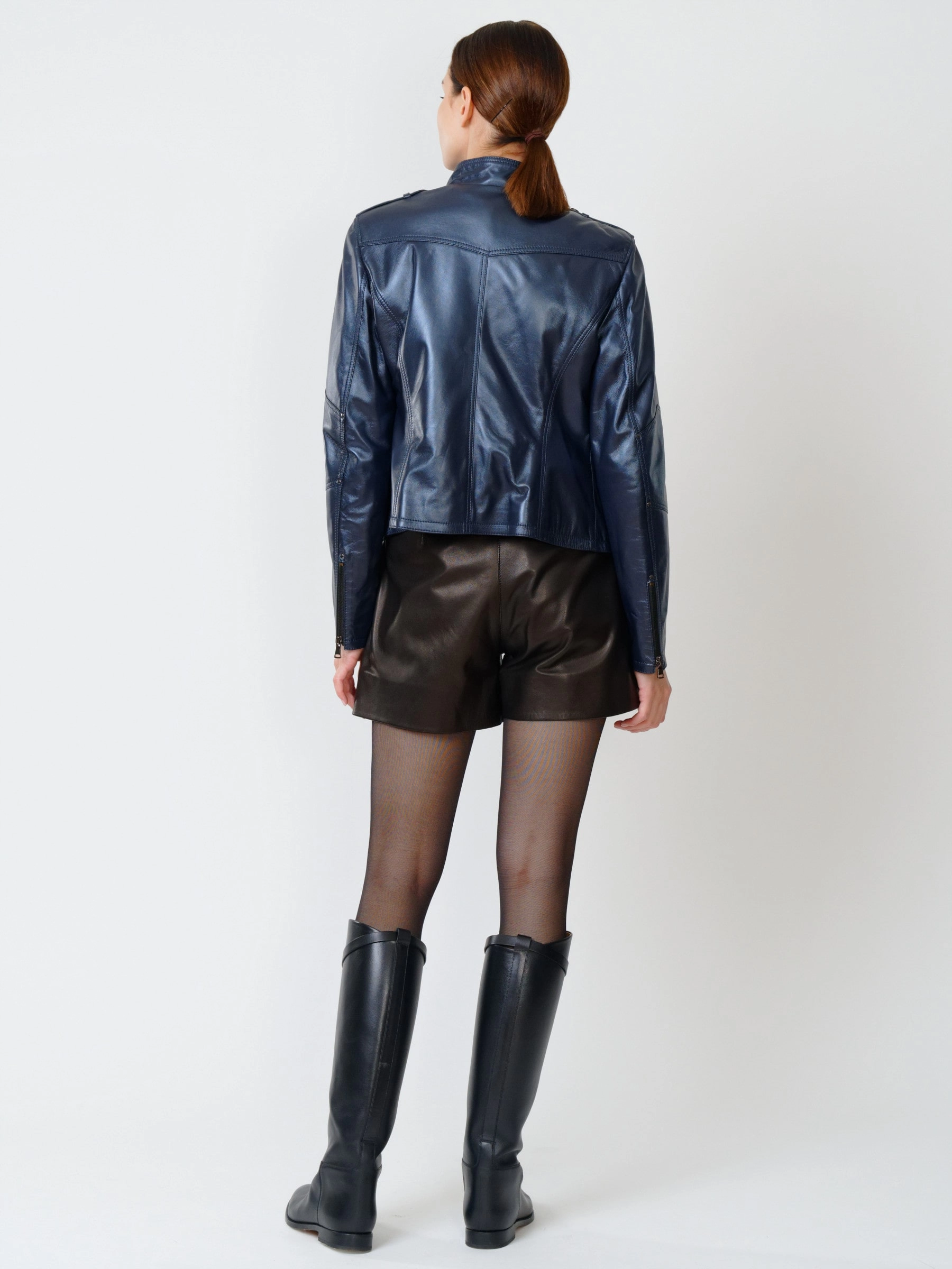 Товар кожаный комплект женский: куртка 399 + шорты 01, синий перламутр/черный, р. 44, арт. 111206.