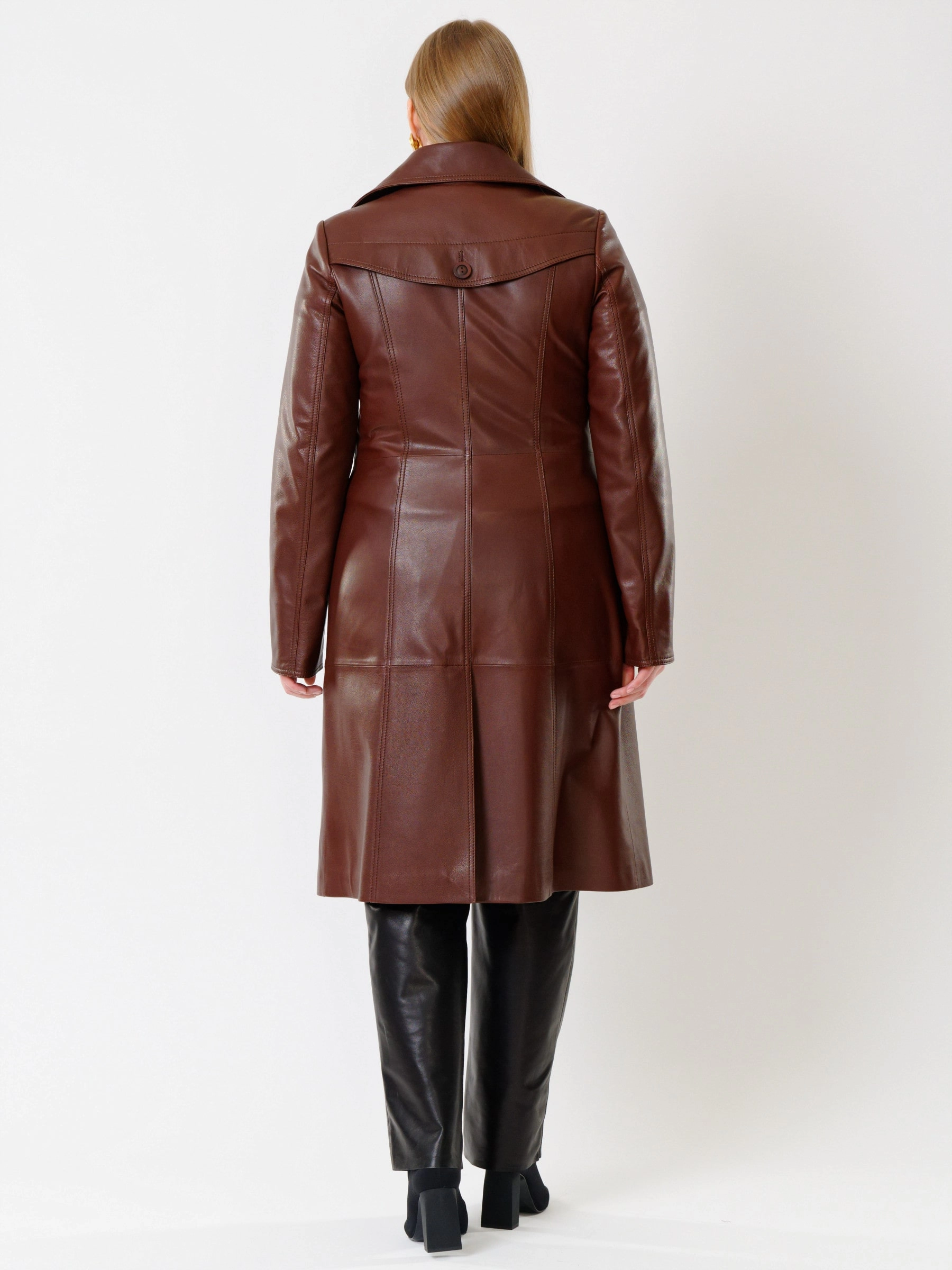 Кожаный комплект женский: Плащ 3003 + Брюки 04, ореховый/черный, р. 46, арт. 111131