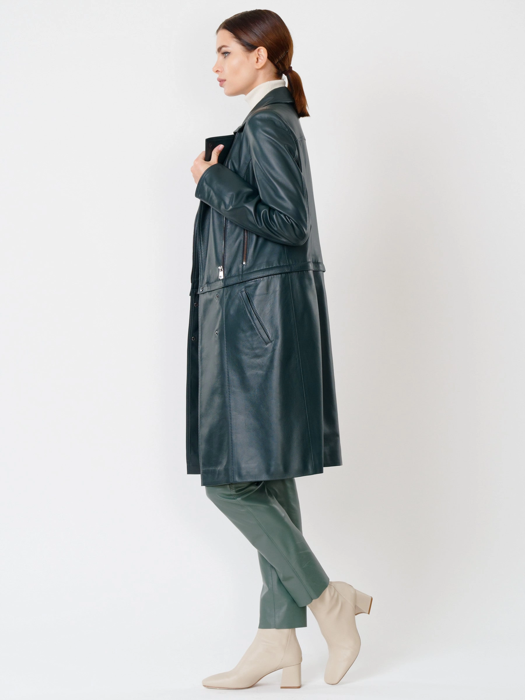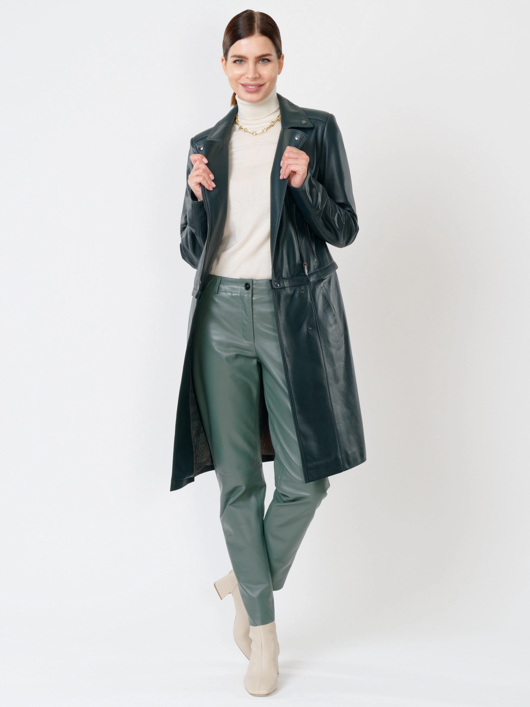 Кожаный комплект женский: Плащ 381 + Брюки 03, синий/оливковый, р. 44, арт. 111163