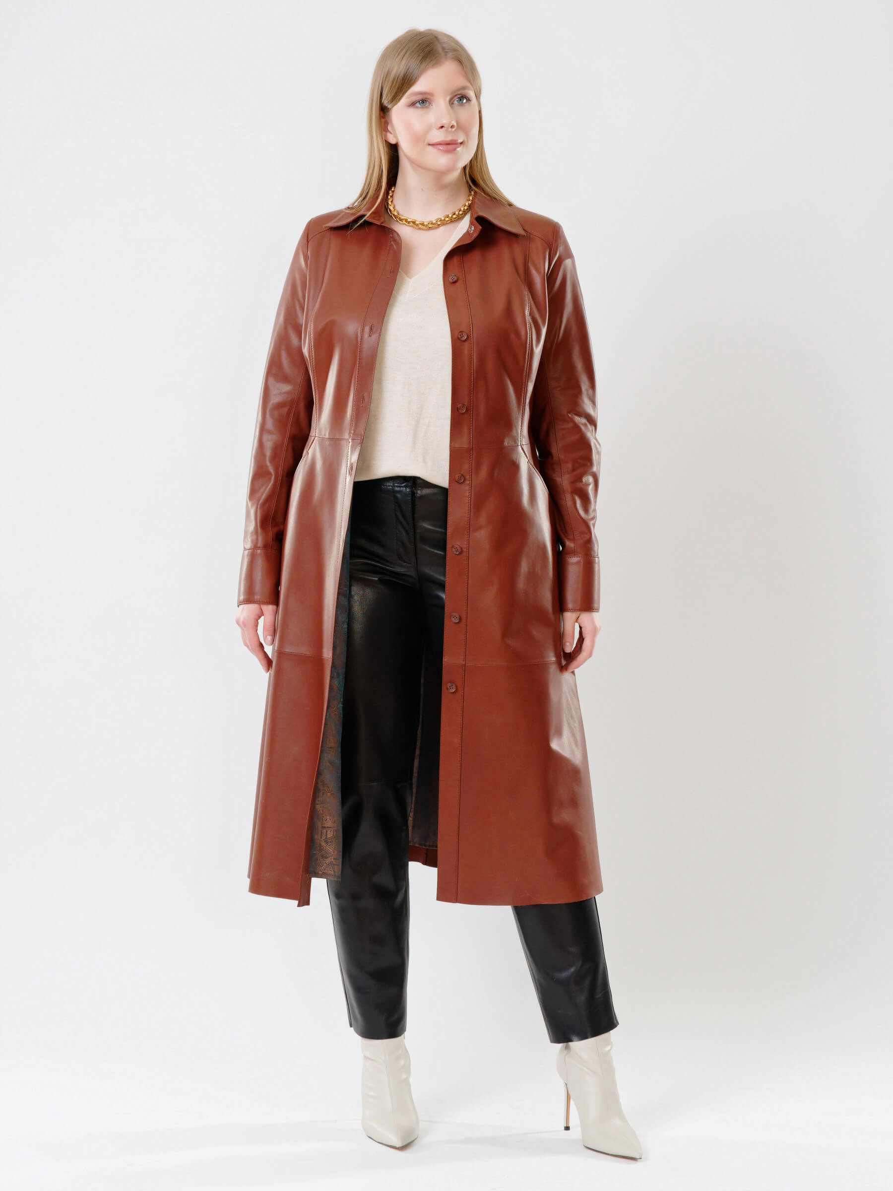 Кожаный комплект женский: Платье - рубашка 02 + Брюки 03, коричневый/черный, р. 46, арт. 111135