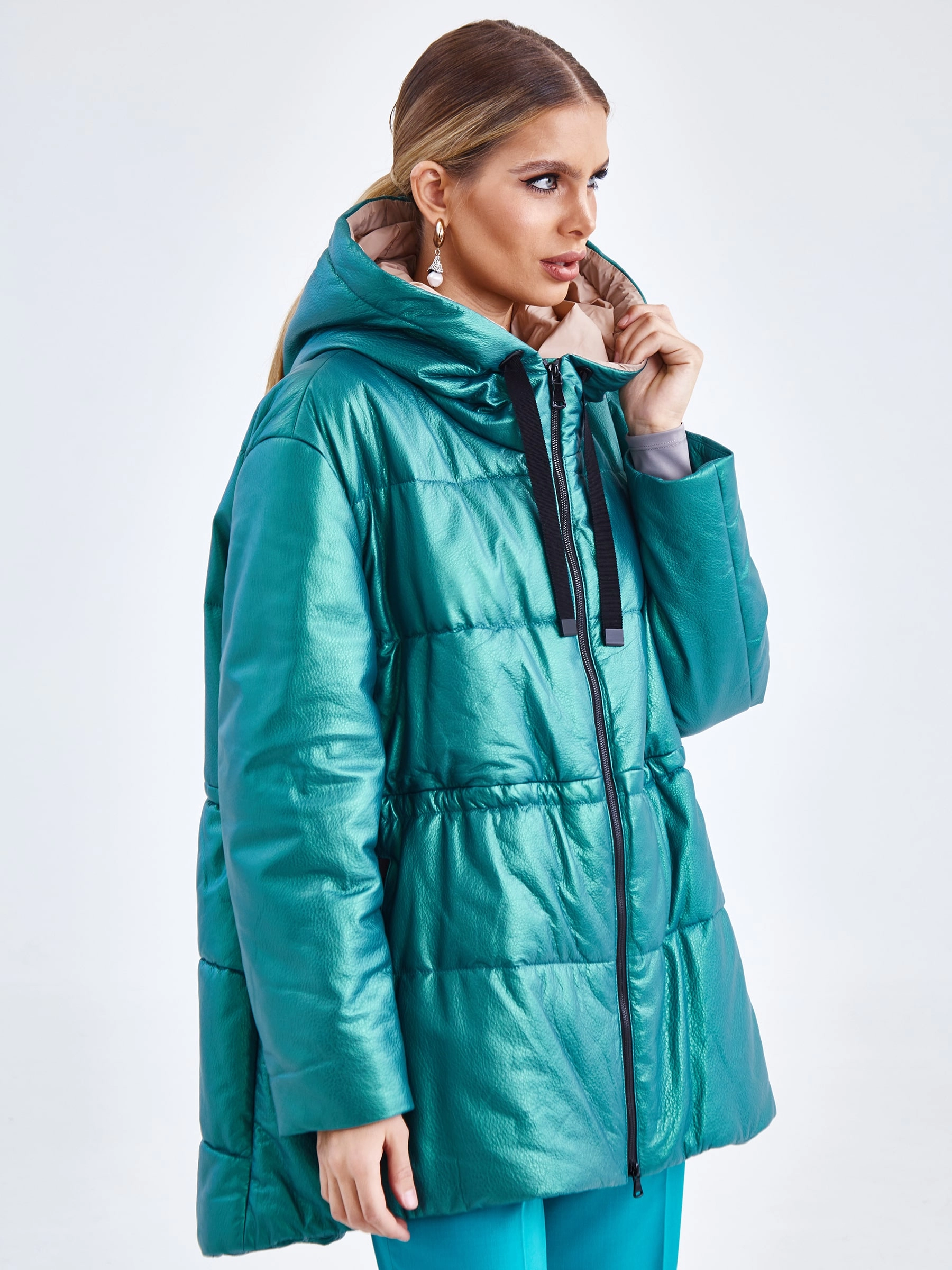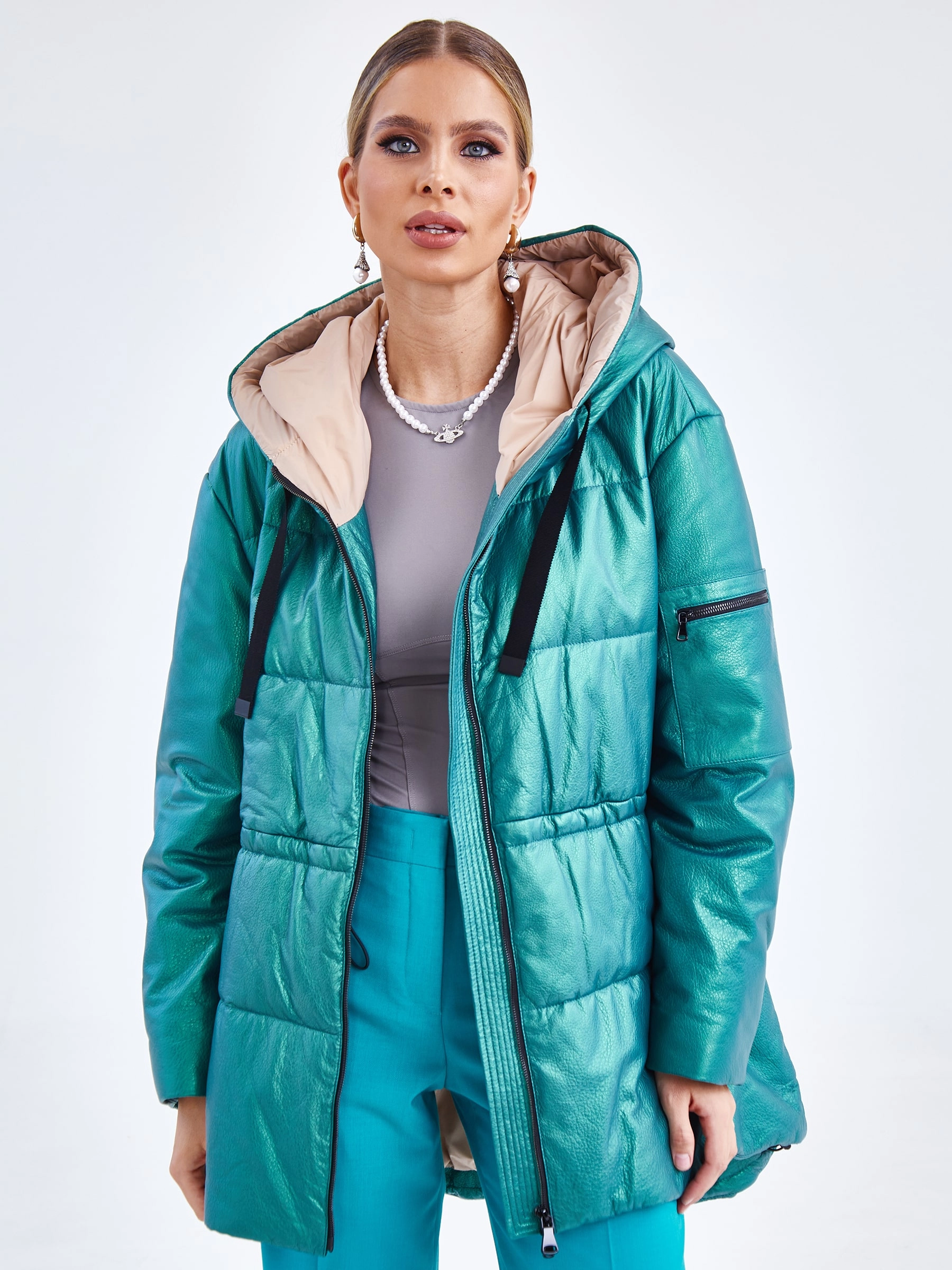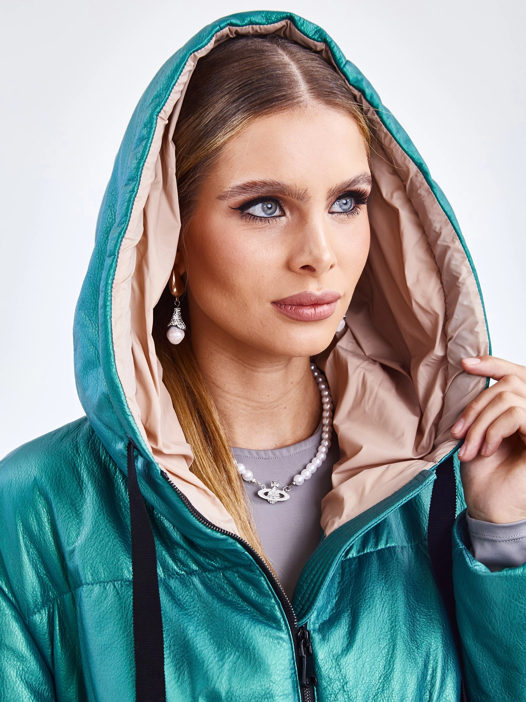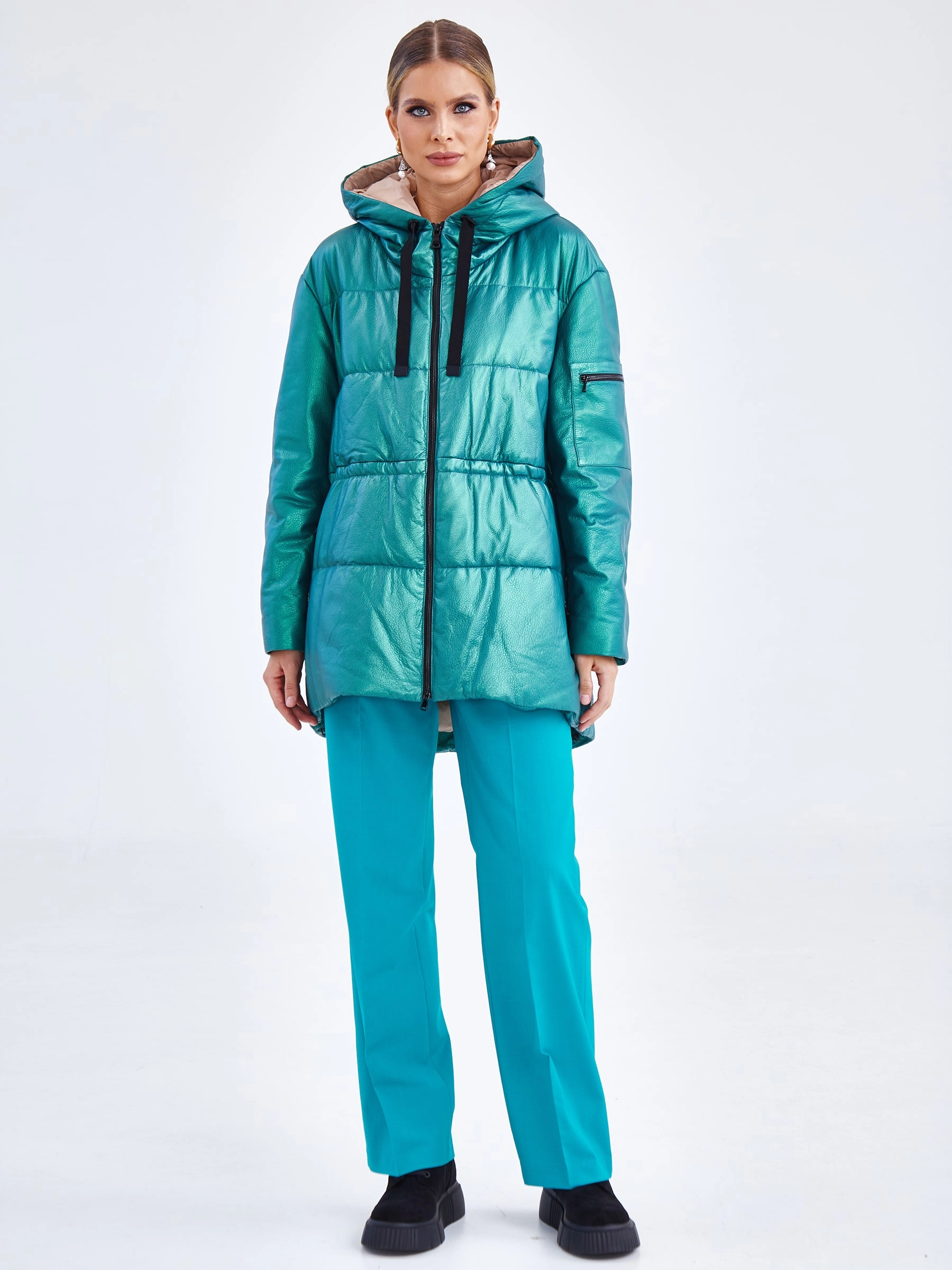 Товар кожаный женский пуховик оверсайз с капюшоном премиум класса 3021, зеленый, размер 48, артикул 25320 выполнен из натуральной кожи с застежкой молния. Рассчитан на сезон: демисезон. Длина изделия 75-90 см, силуэт свободный.