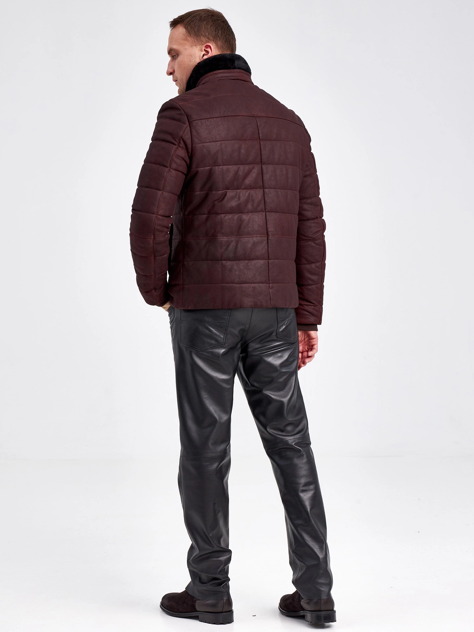 Кожаный пуховик зимний мужской 4678, короткий, бордовый, размер 50, артикул 23120