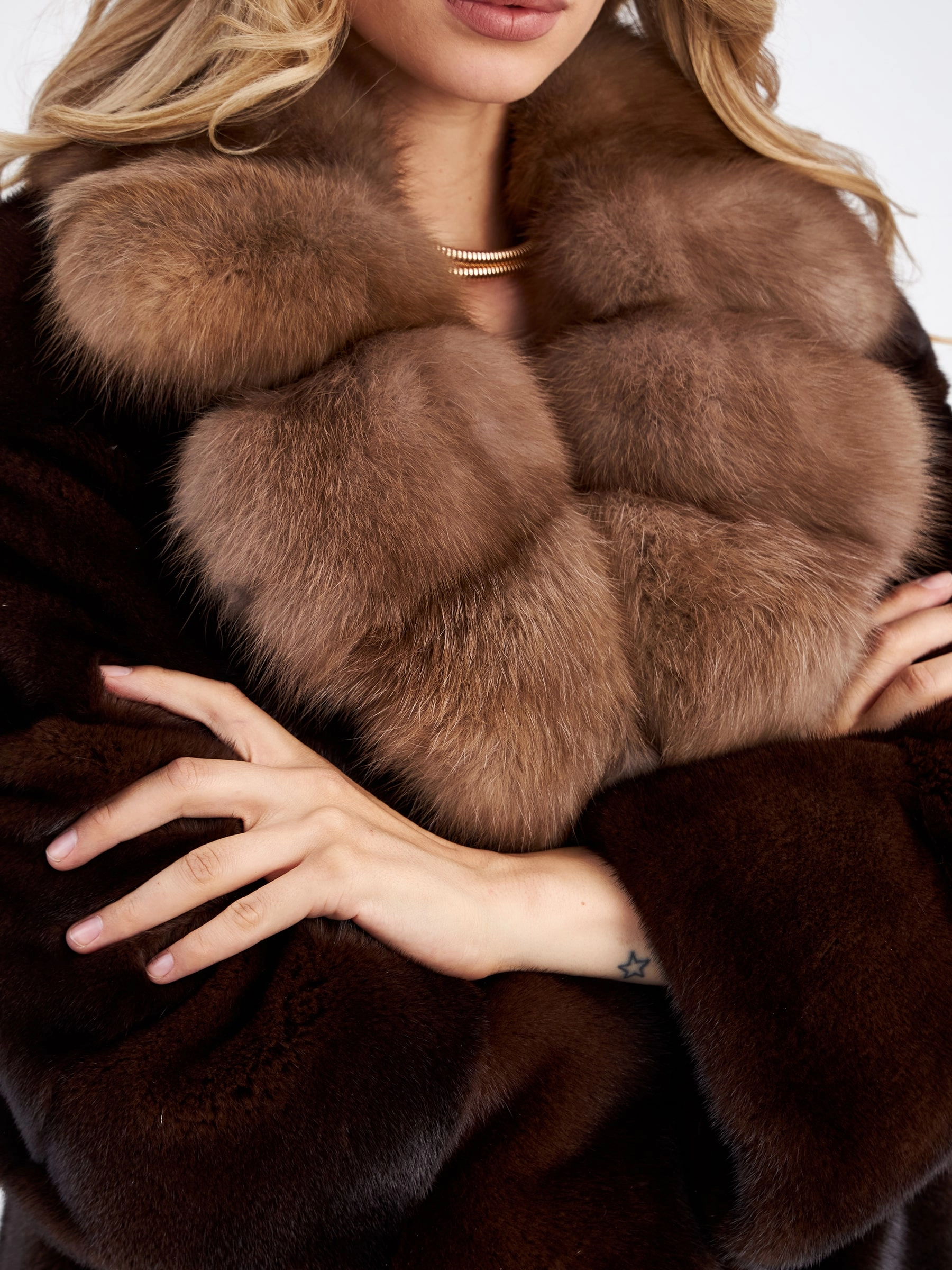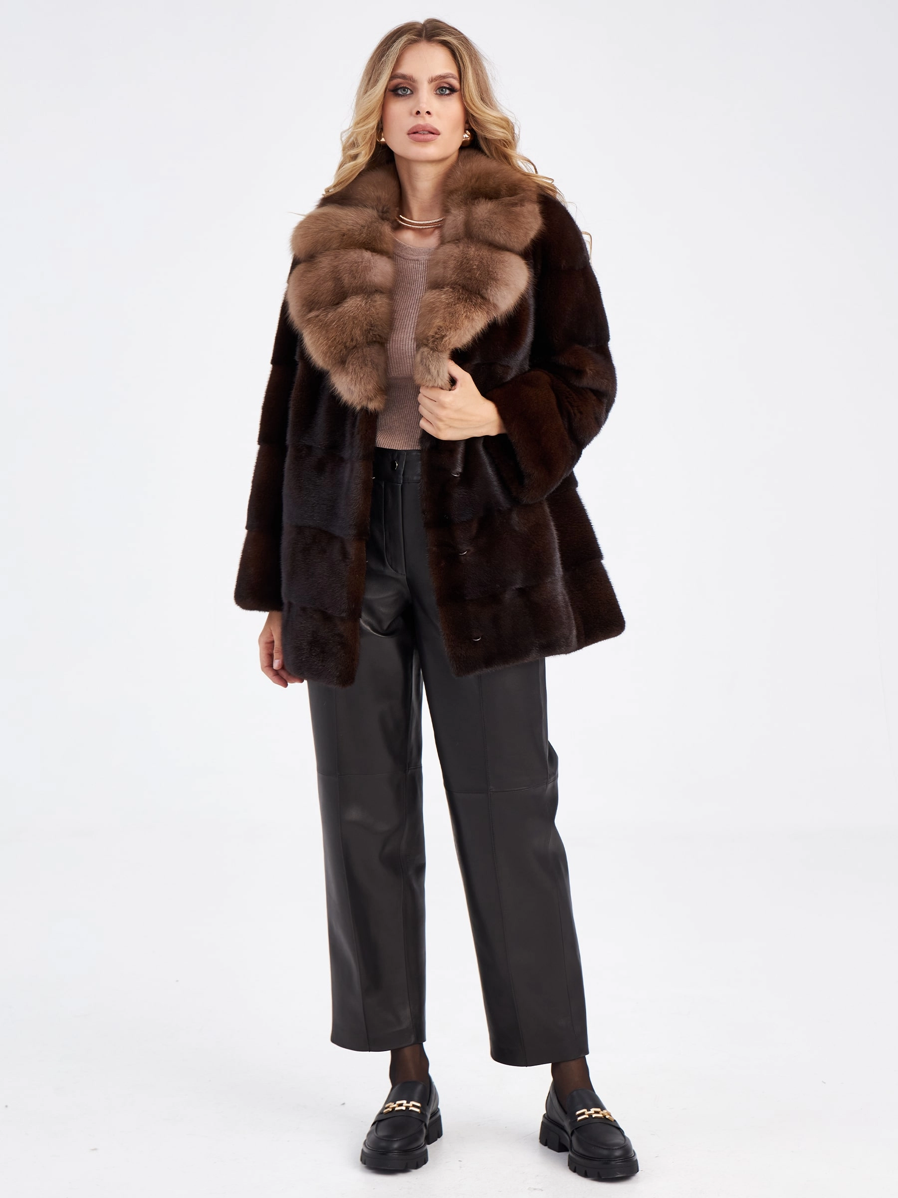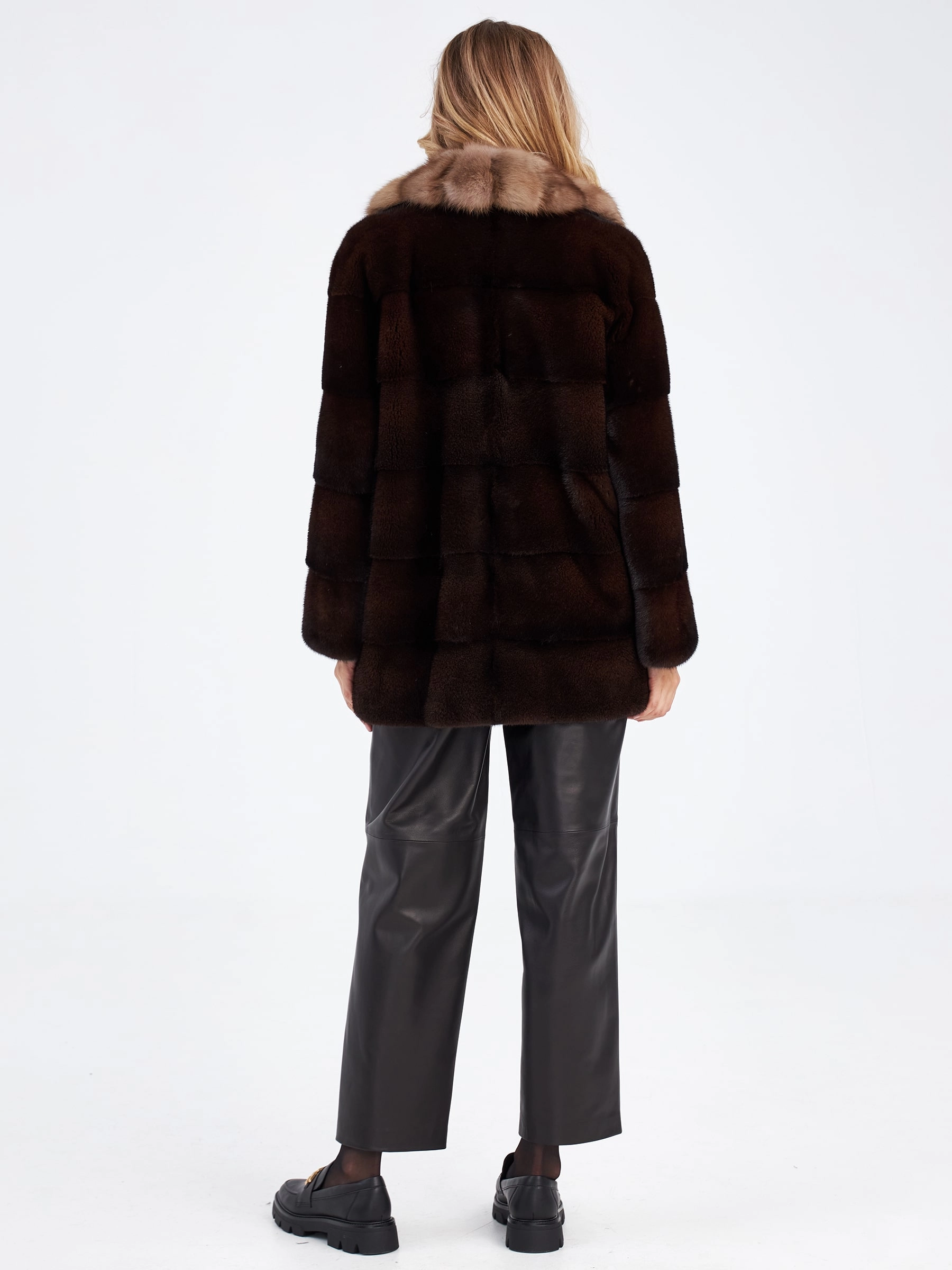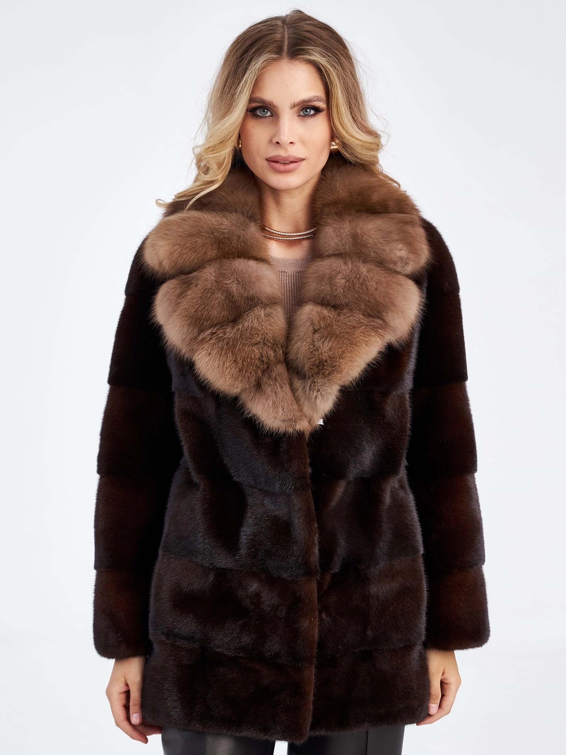 Ничто так не дополняет элегантность к образу, как короткая лаконичная куртка из густой стриженой норки в цвете браун, в сочетании с нежной шелковистой куницей дымчатого оттенка. Прямой крой, английский воротник.Горизонтальная раскладка меха,застежка -клипсы. Статус и комфорт послужило дополнением к изделию.