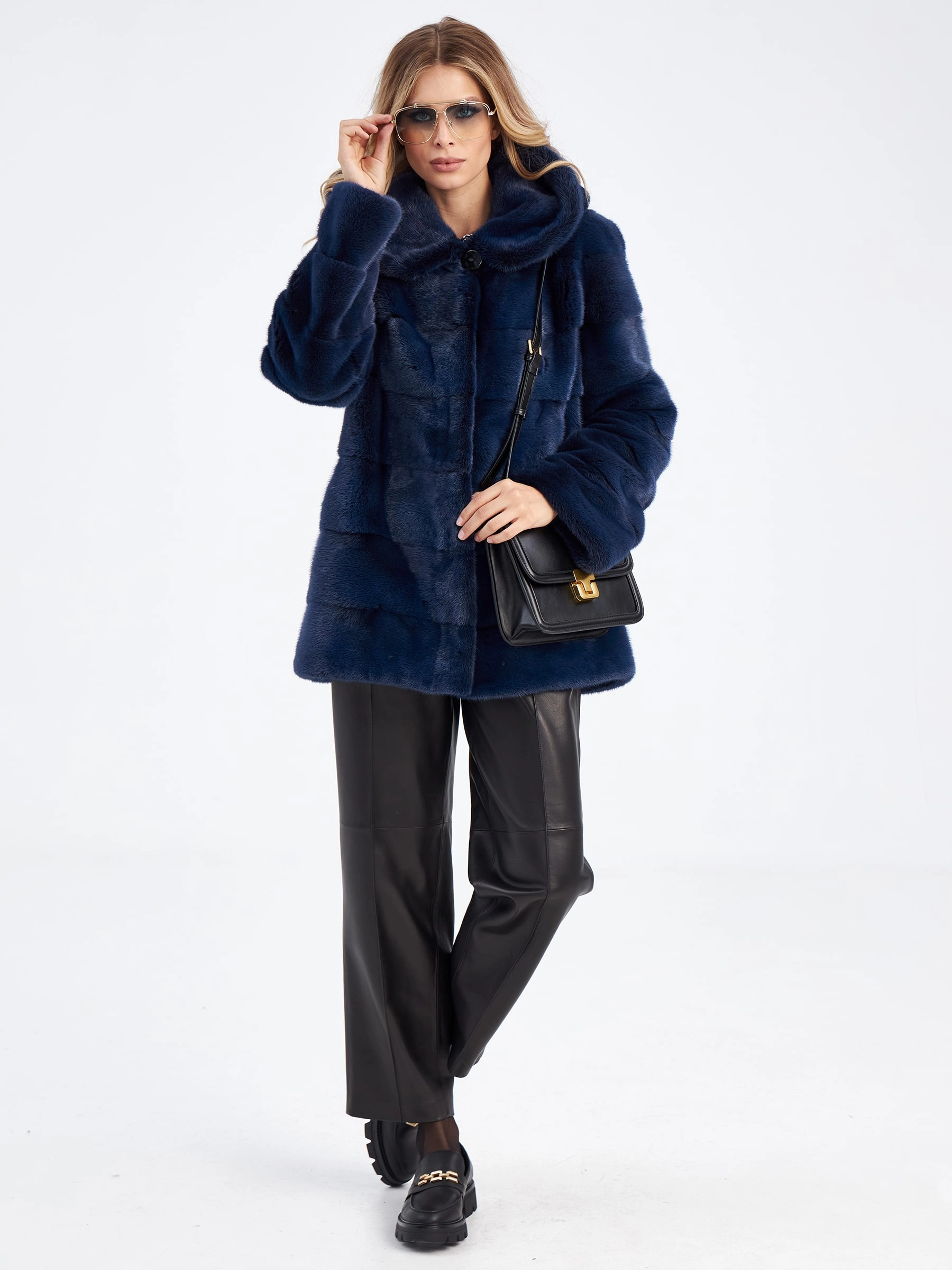 Короткая куртка автоледи из меха норки для женщин 2а-к(к), сине-черная, размер 44, артикул 33900