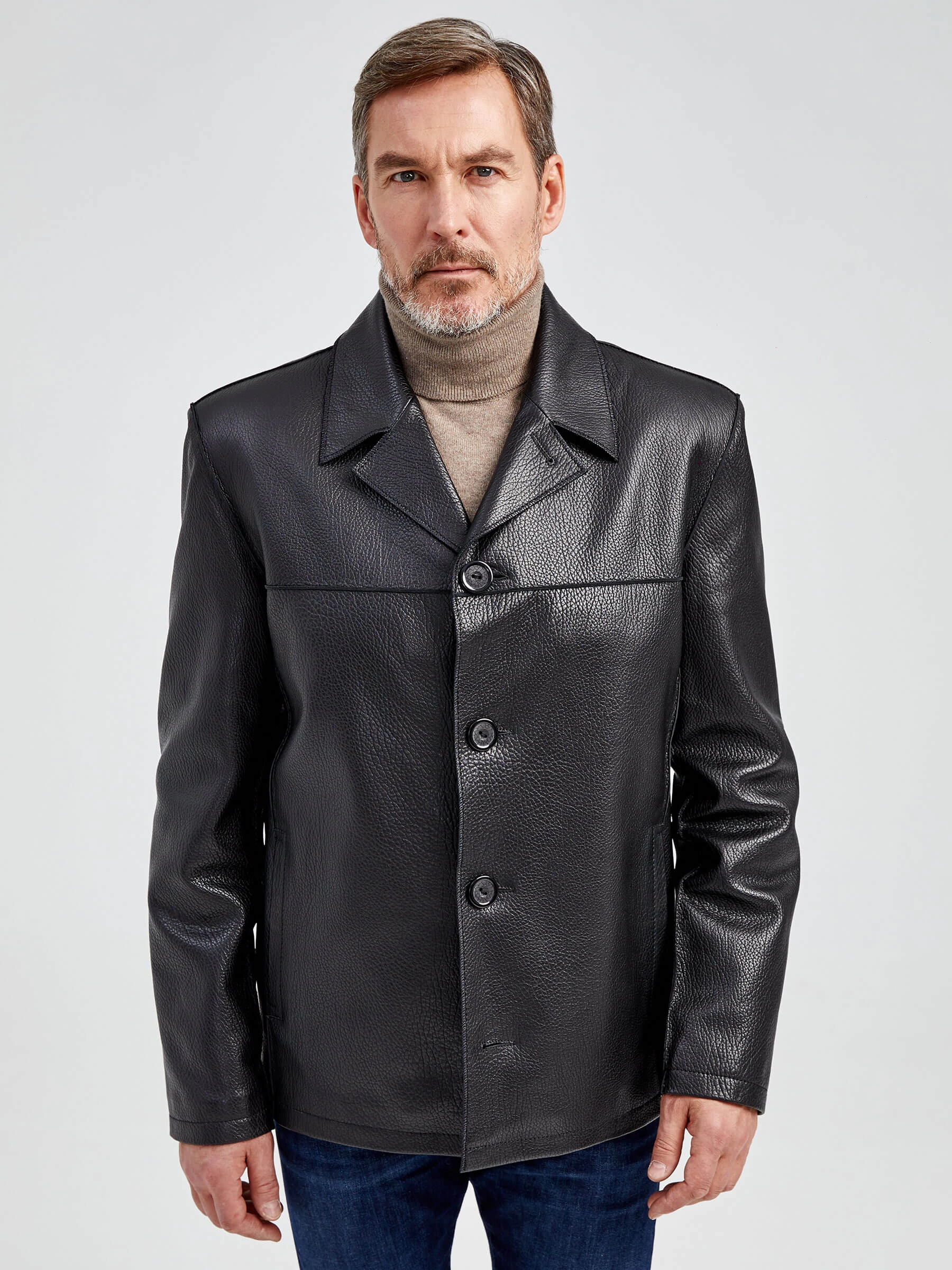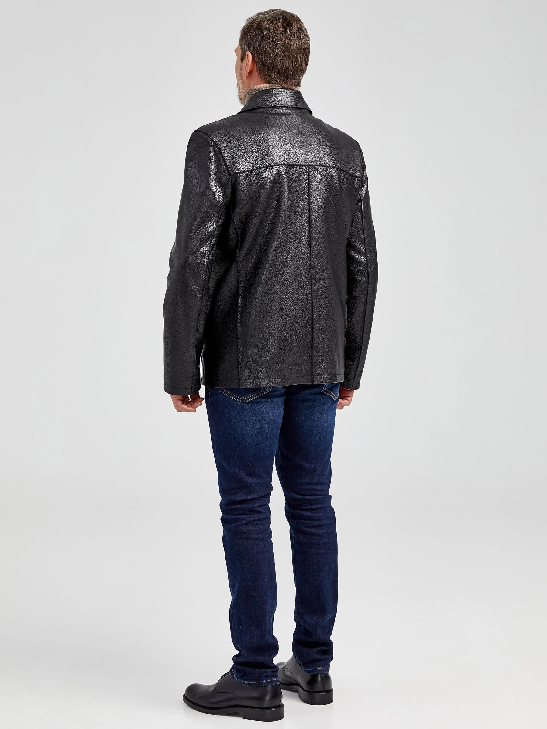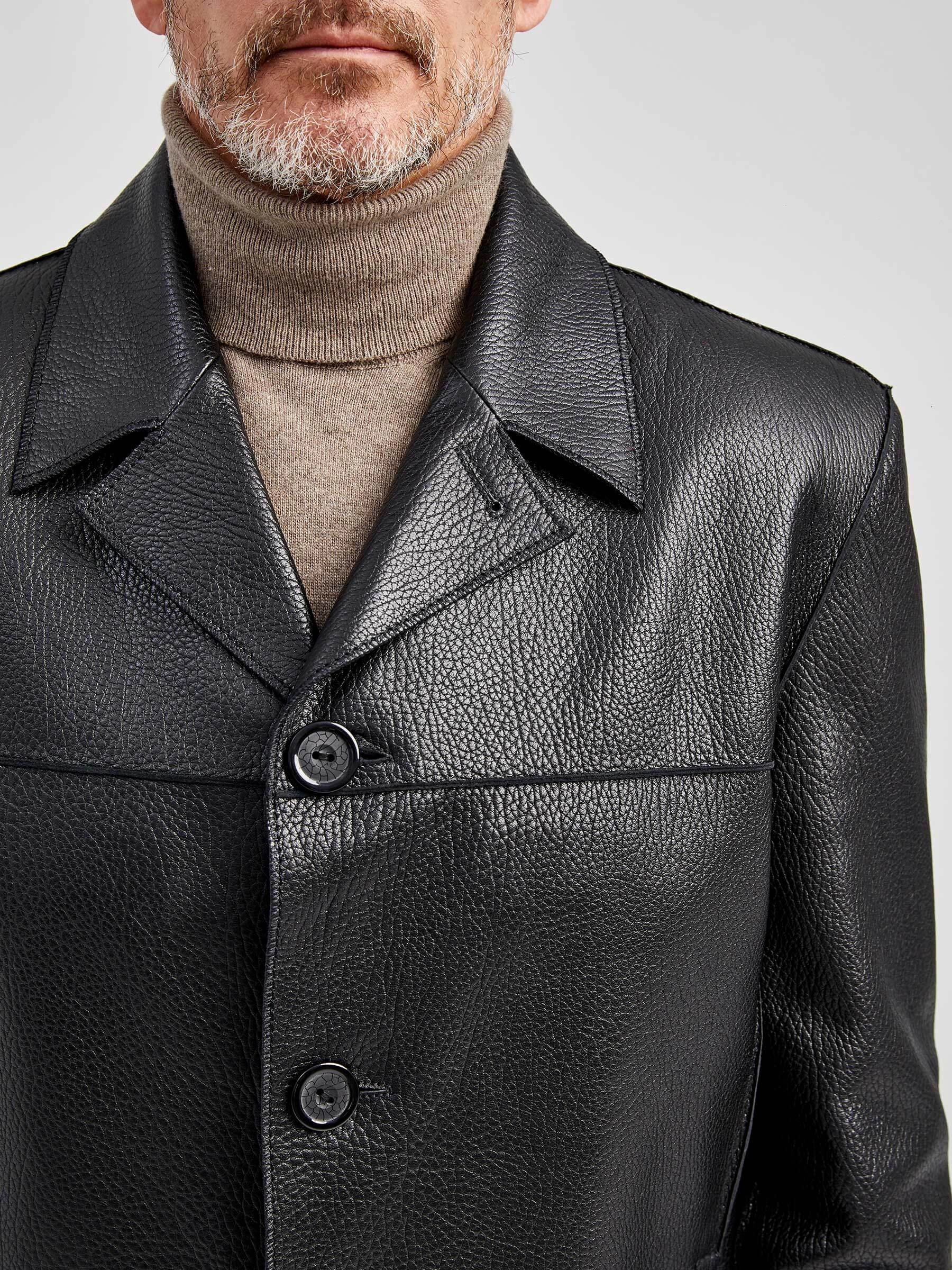 Стильная мужская куртка выполнена из мелкозернистой кожи премиального качества. Безупречная работа наших портных. Обеспечена идеальная посадка по фигуре, прекрасная свобода движений.
