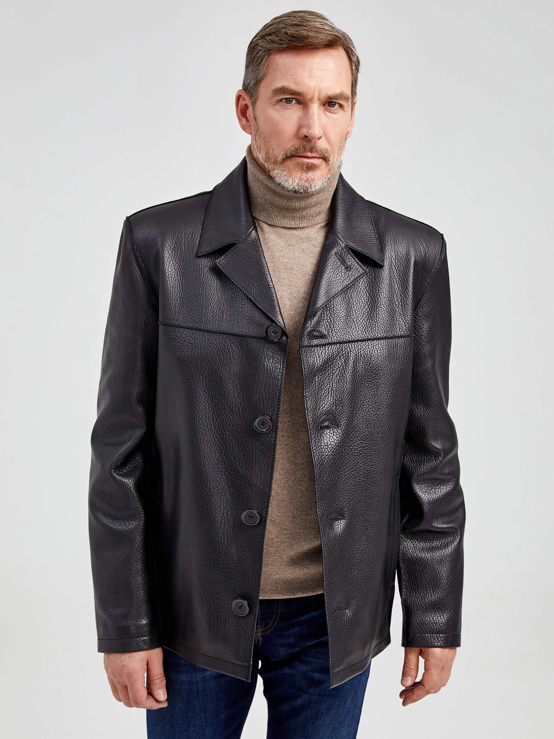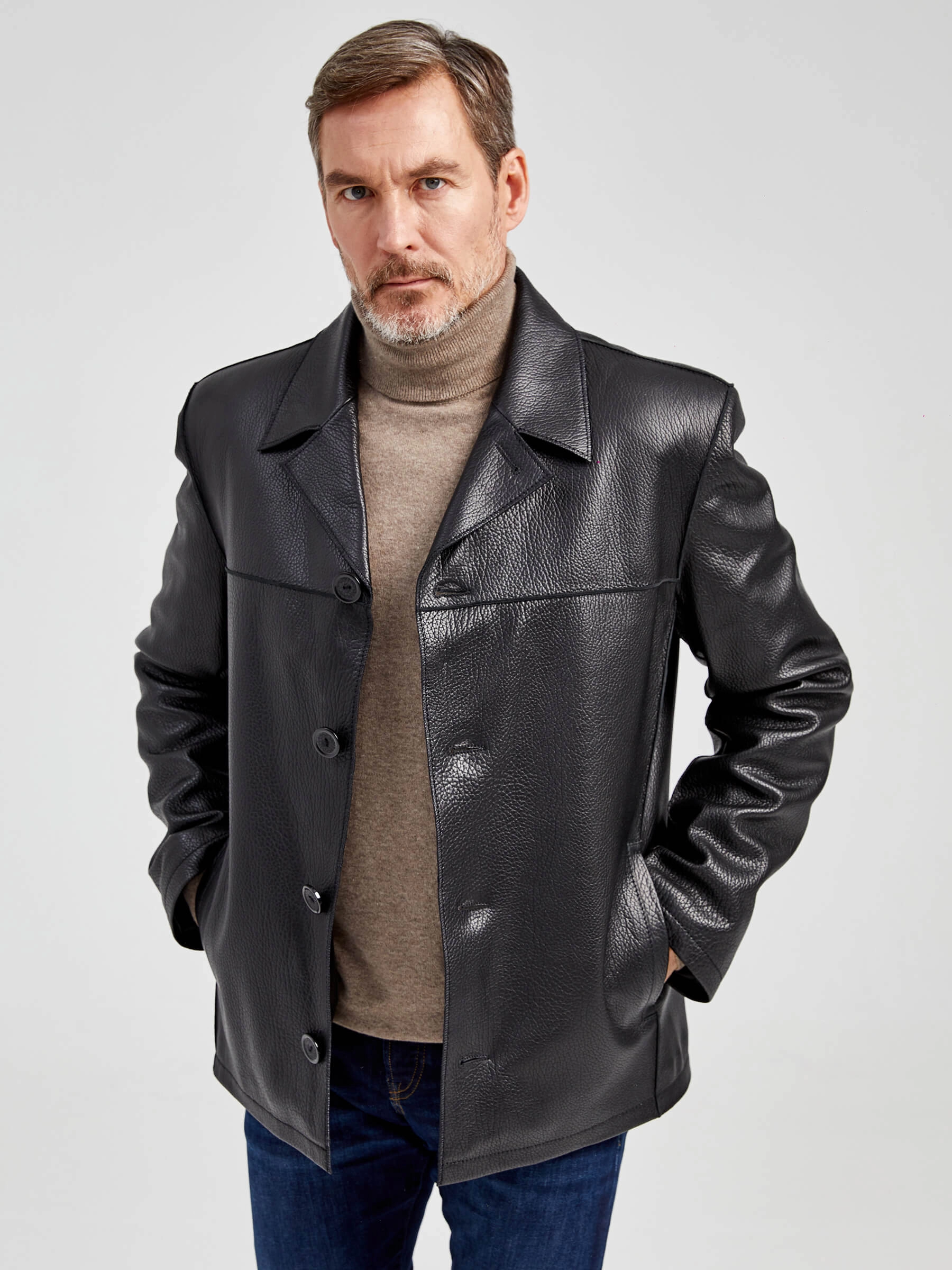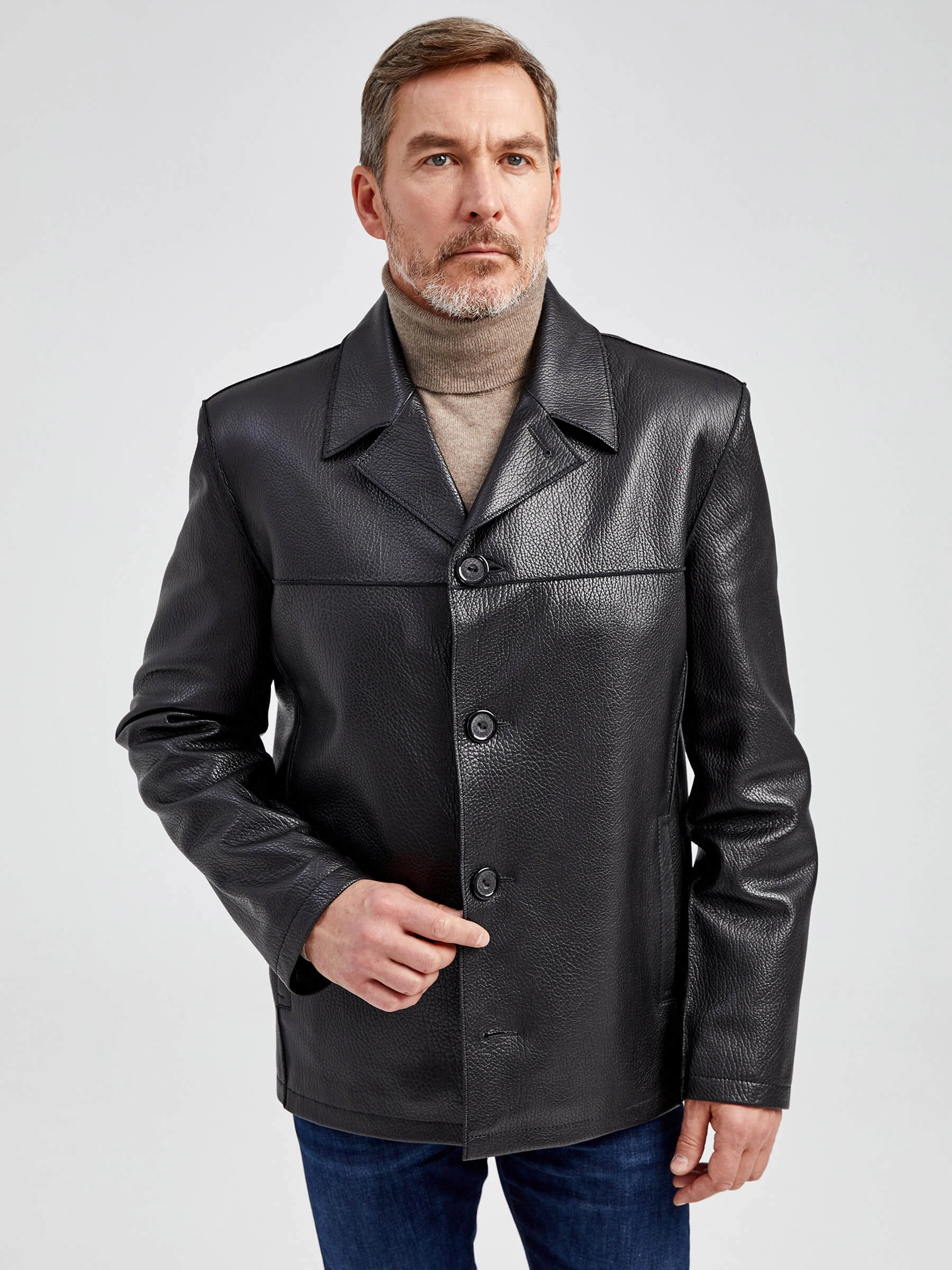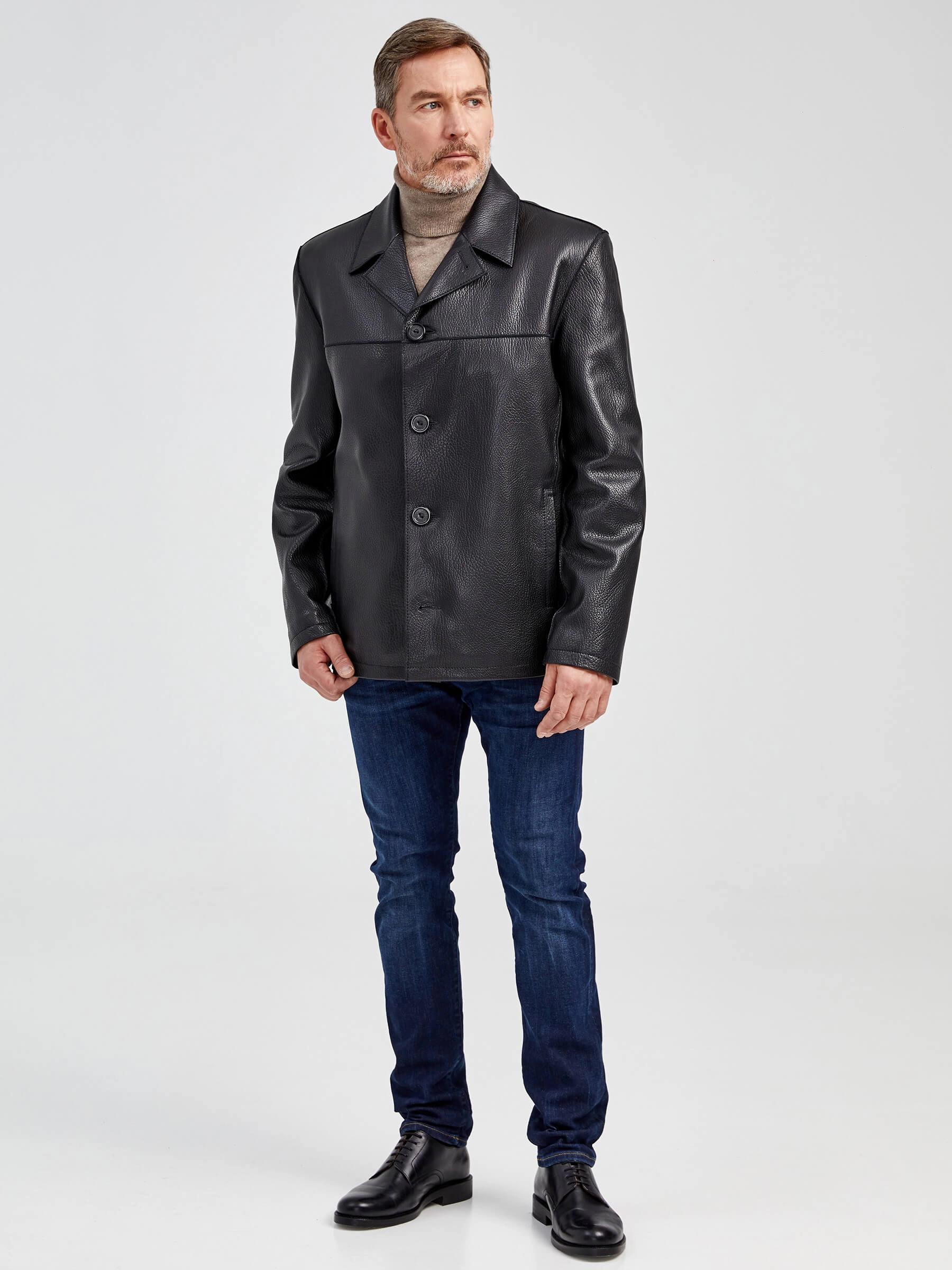 Стильная мужская куртка выполнена из мелкозернистой кожи премиального качества. Безупречная работа наших портных. Обеспечена идеальная посадка по фигуре, прекрасная свобода движений.