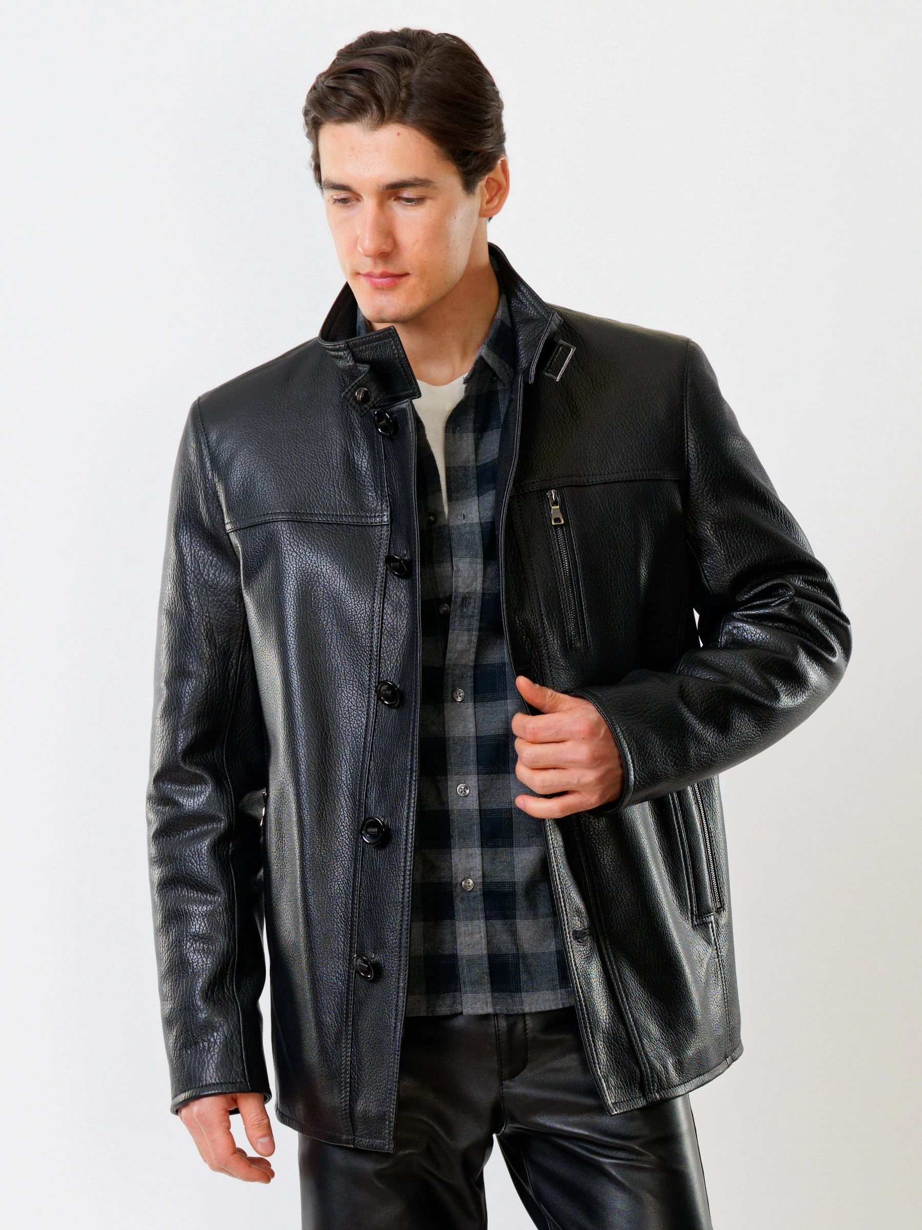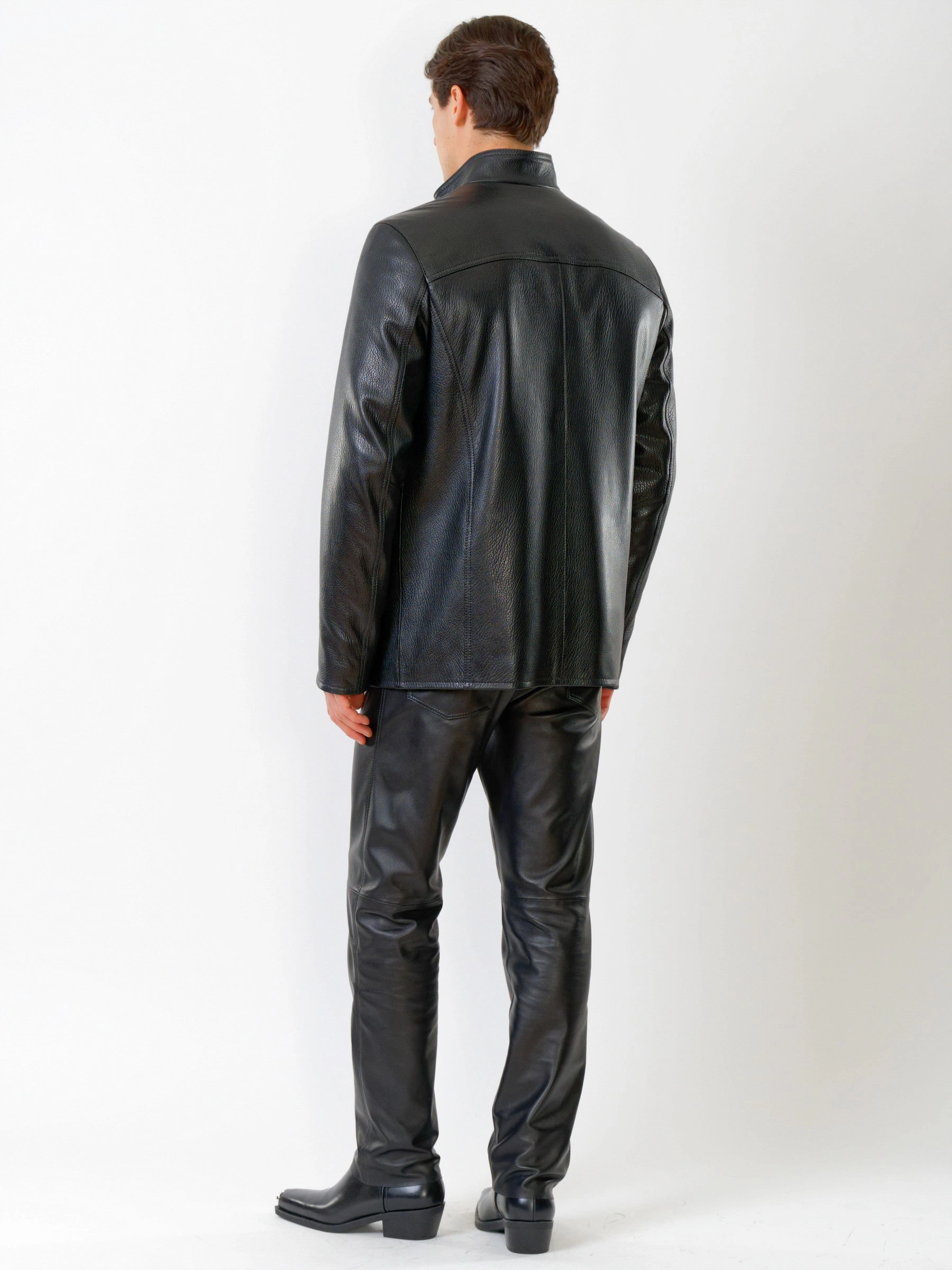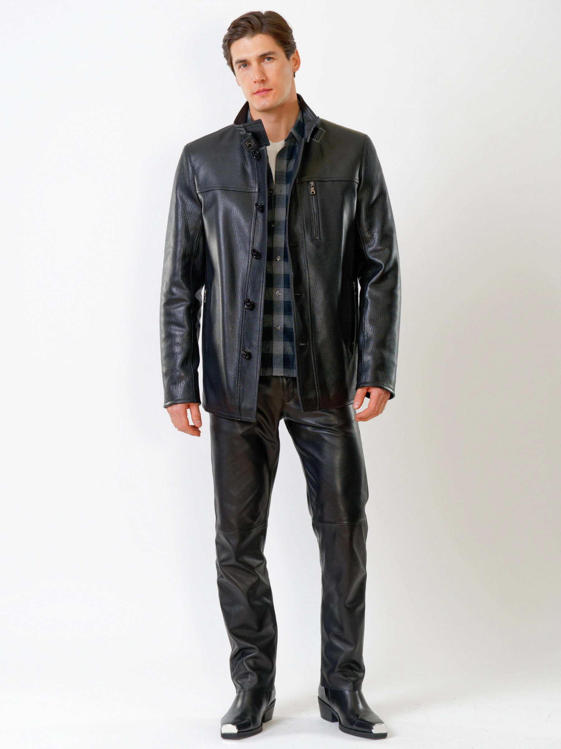 Демисезонная кожаная куртка свободного покроя и кожаные брюки. Кожа премиального качества. Использован современный утеплитель - шерстепон. Безупречная работа портных. Комфортная посадка по фигуре.