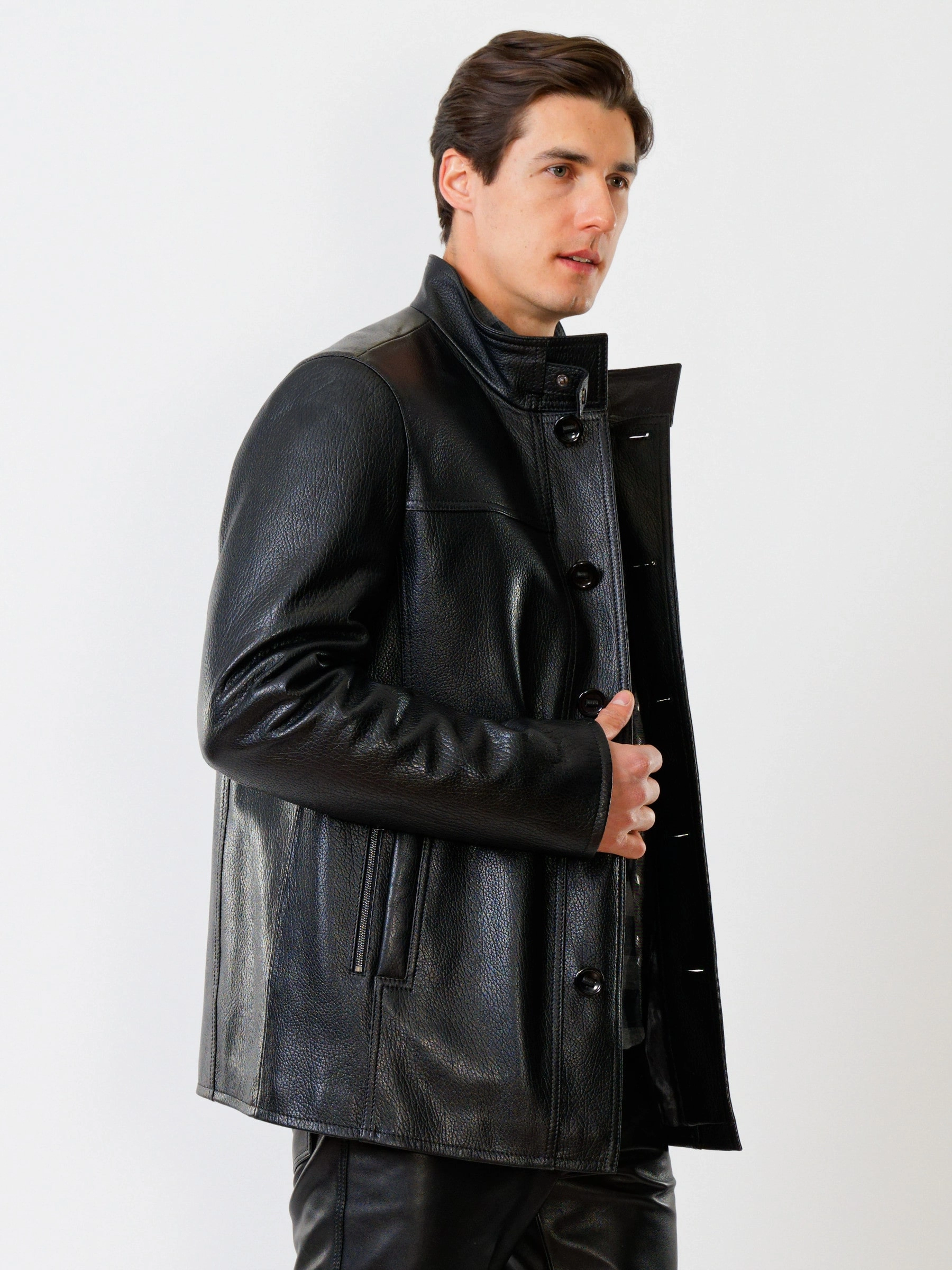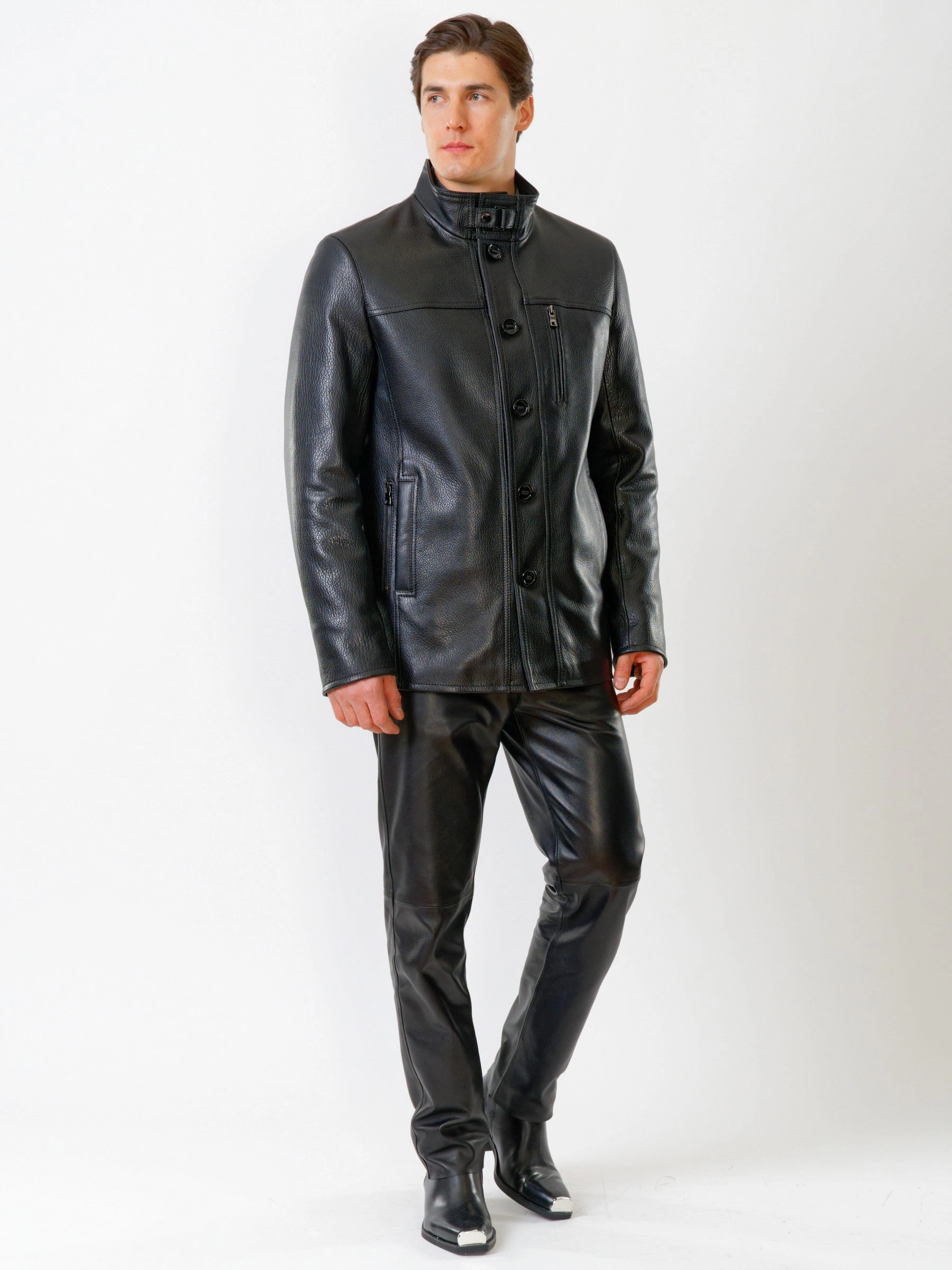 Товар демисезонный комплект мужской: куртка 518ш + брюки 01, черный, р. 48, артикул 140520 выполнен из натуральной кожи. Рассчитан на сезон: демисезон.