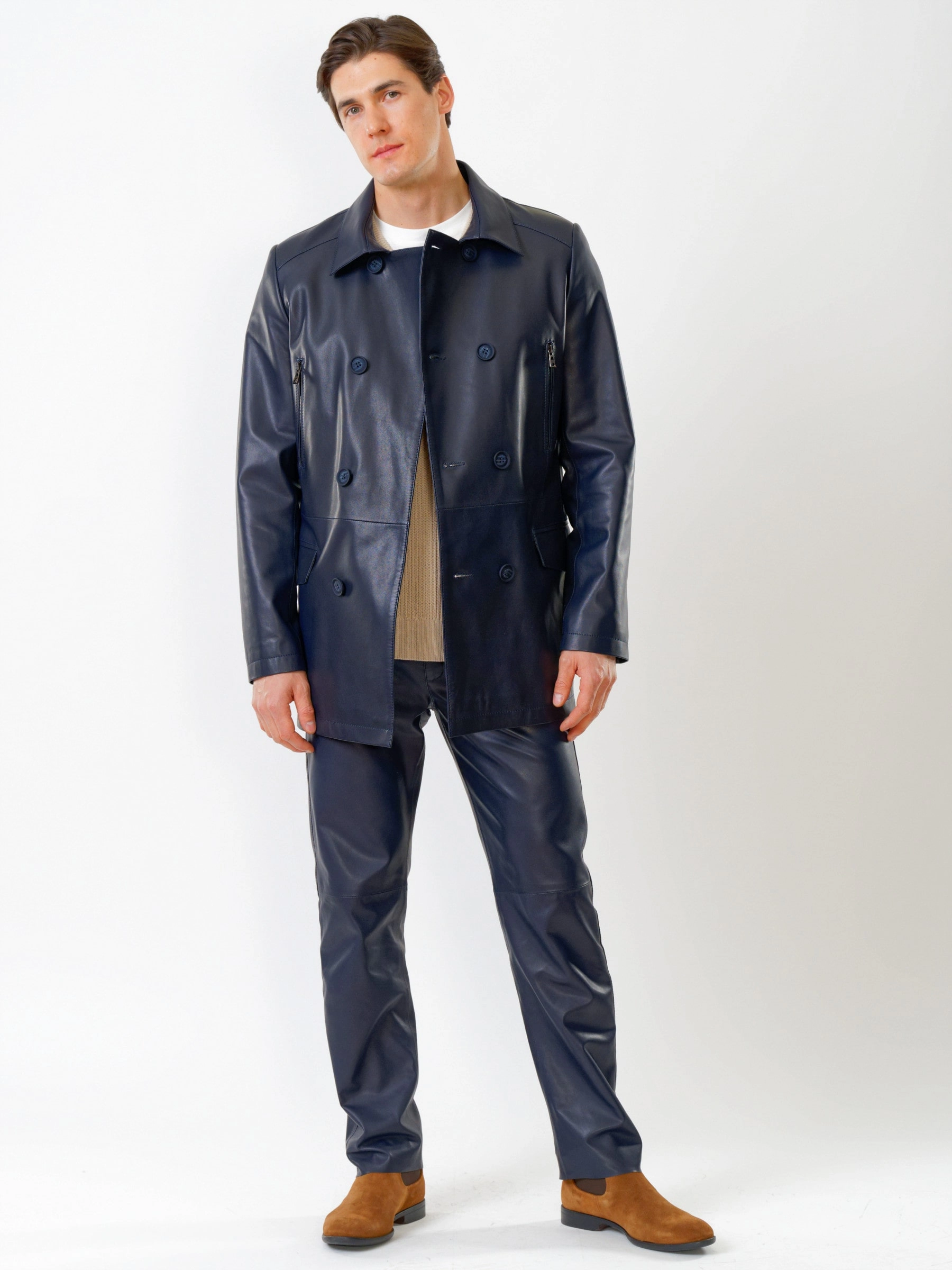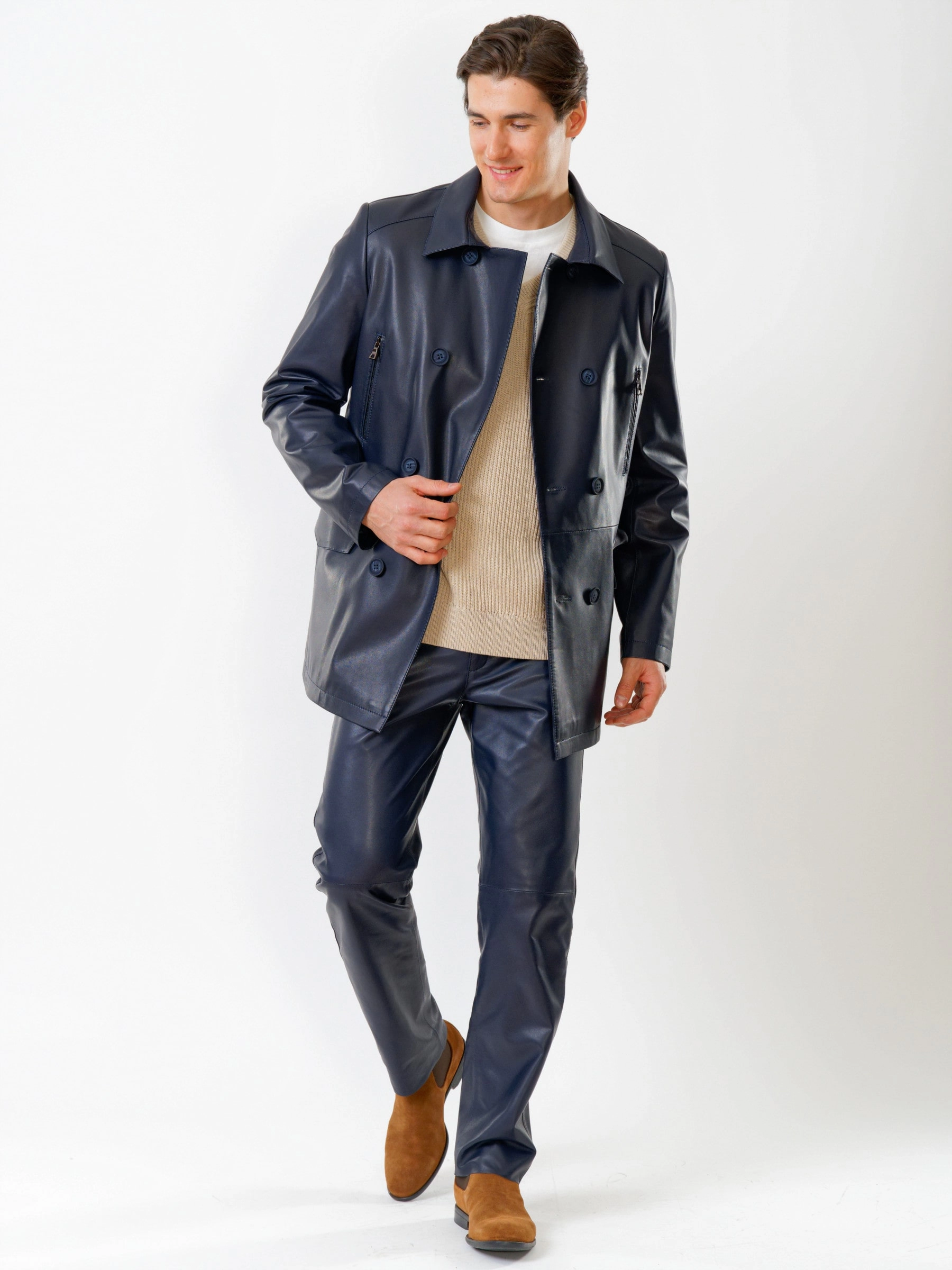 Кожаный комплект мужской: Куртка 538 + Брюки 01, синий, р. 48, артикул 140140