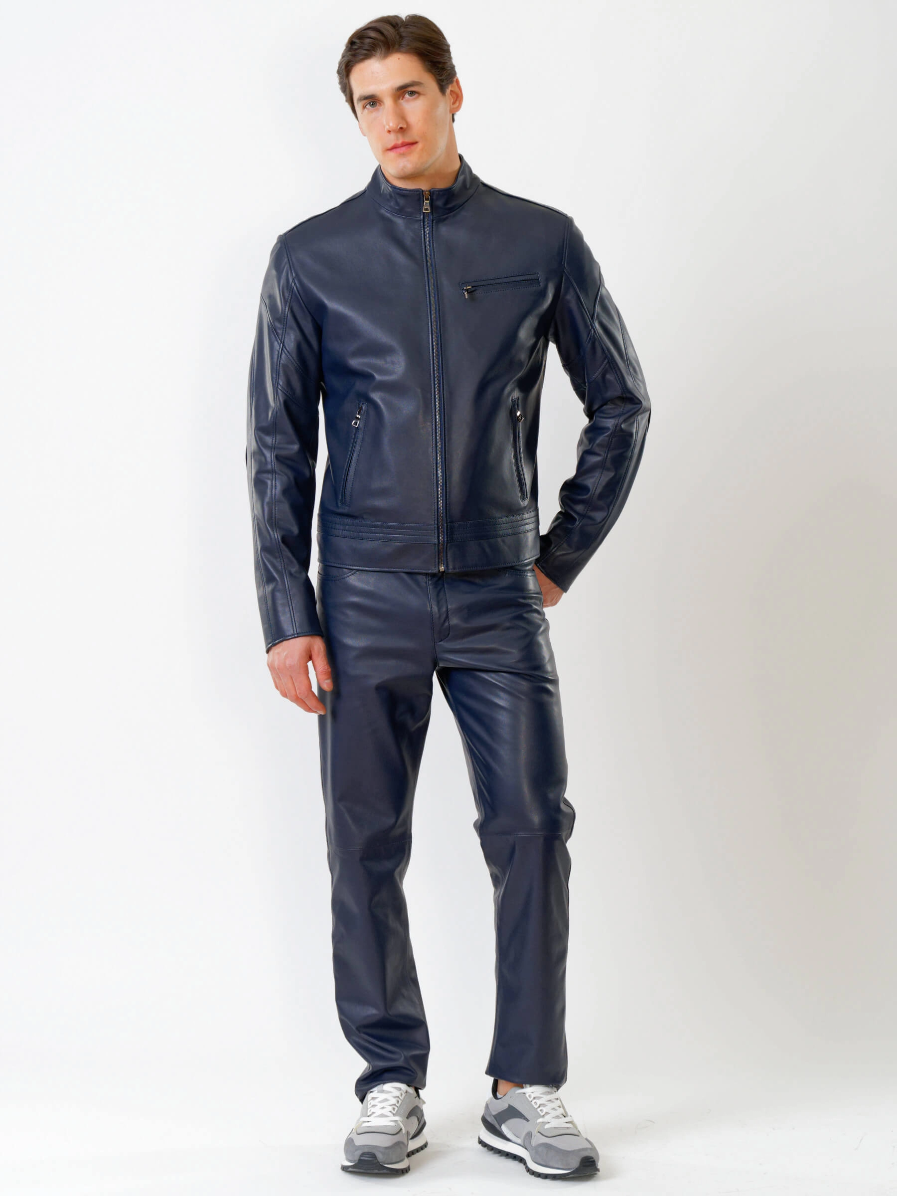 Кожаная куртка мужская 545, синяя, размер 50, артикул 28701