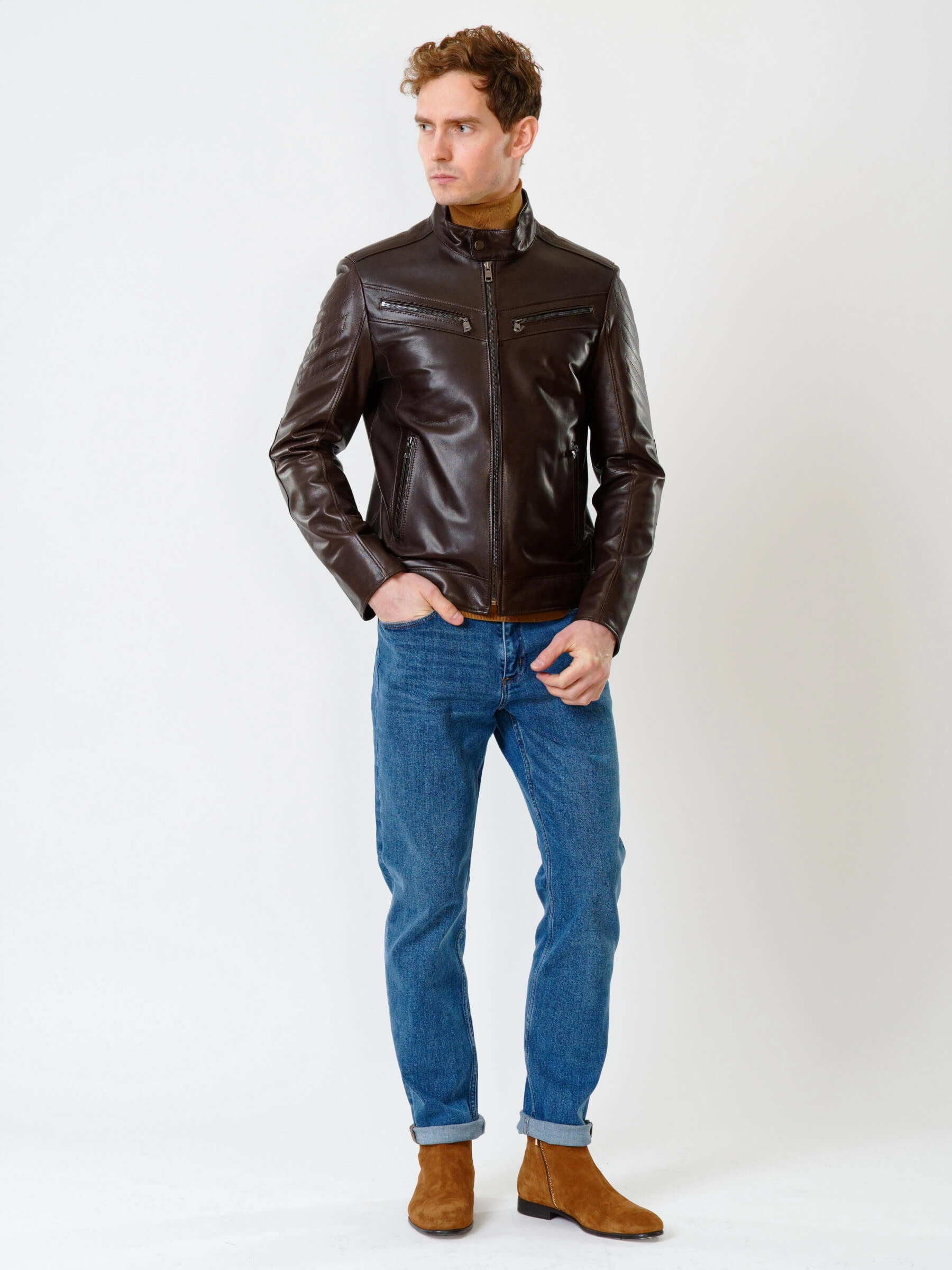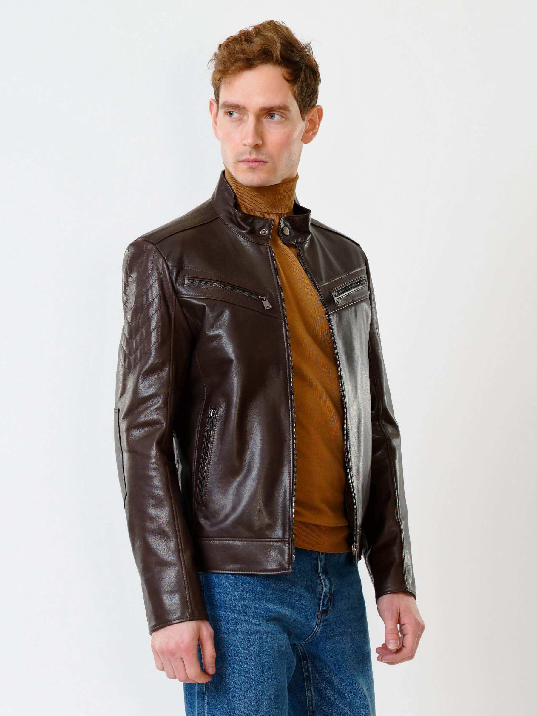 Кожаная куртка мужская 546, коричневая, размер 50, артикул 28460