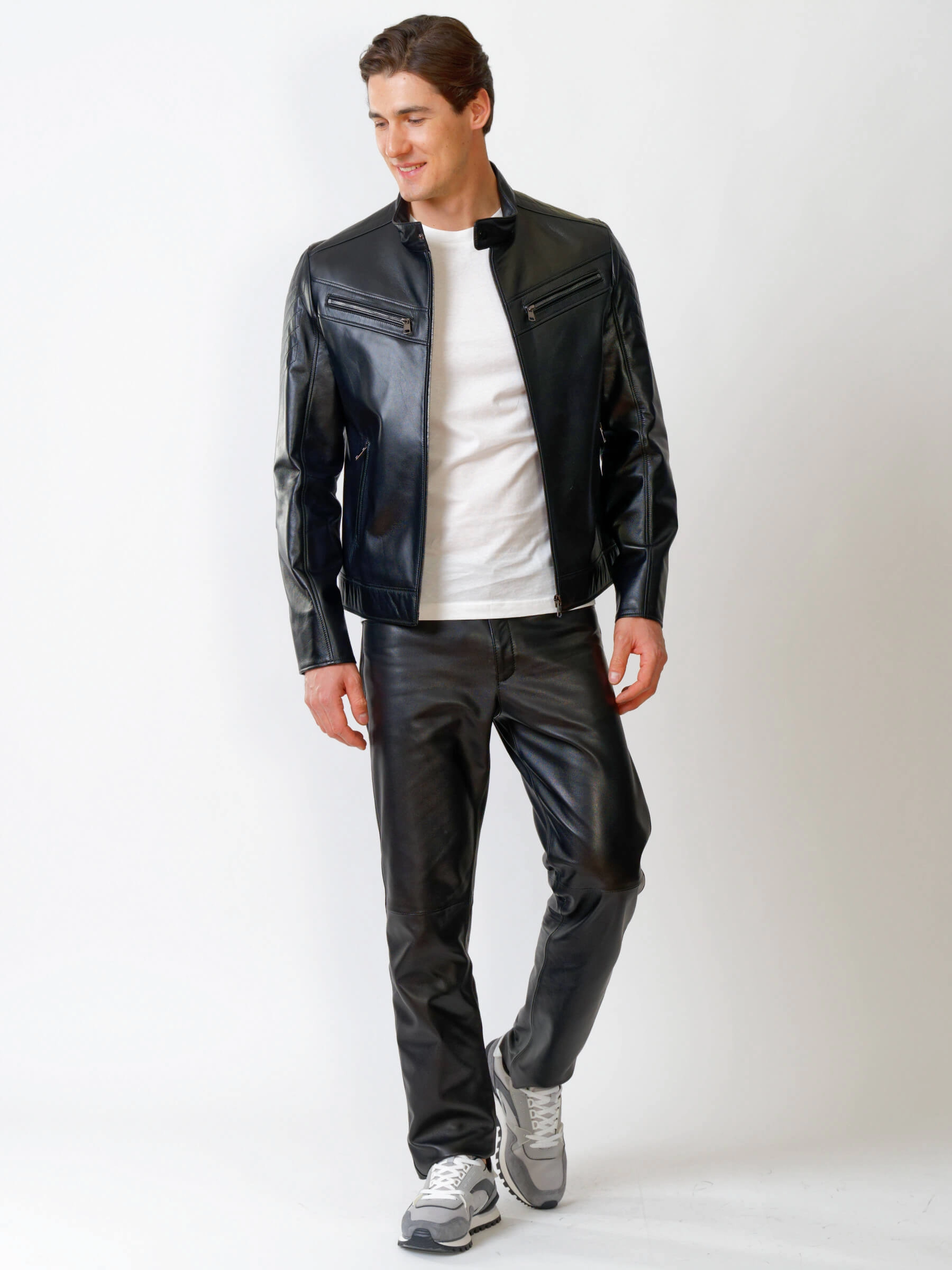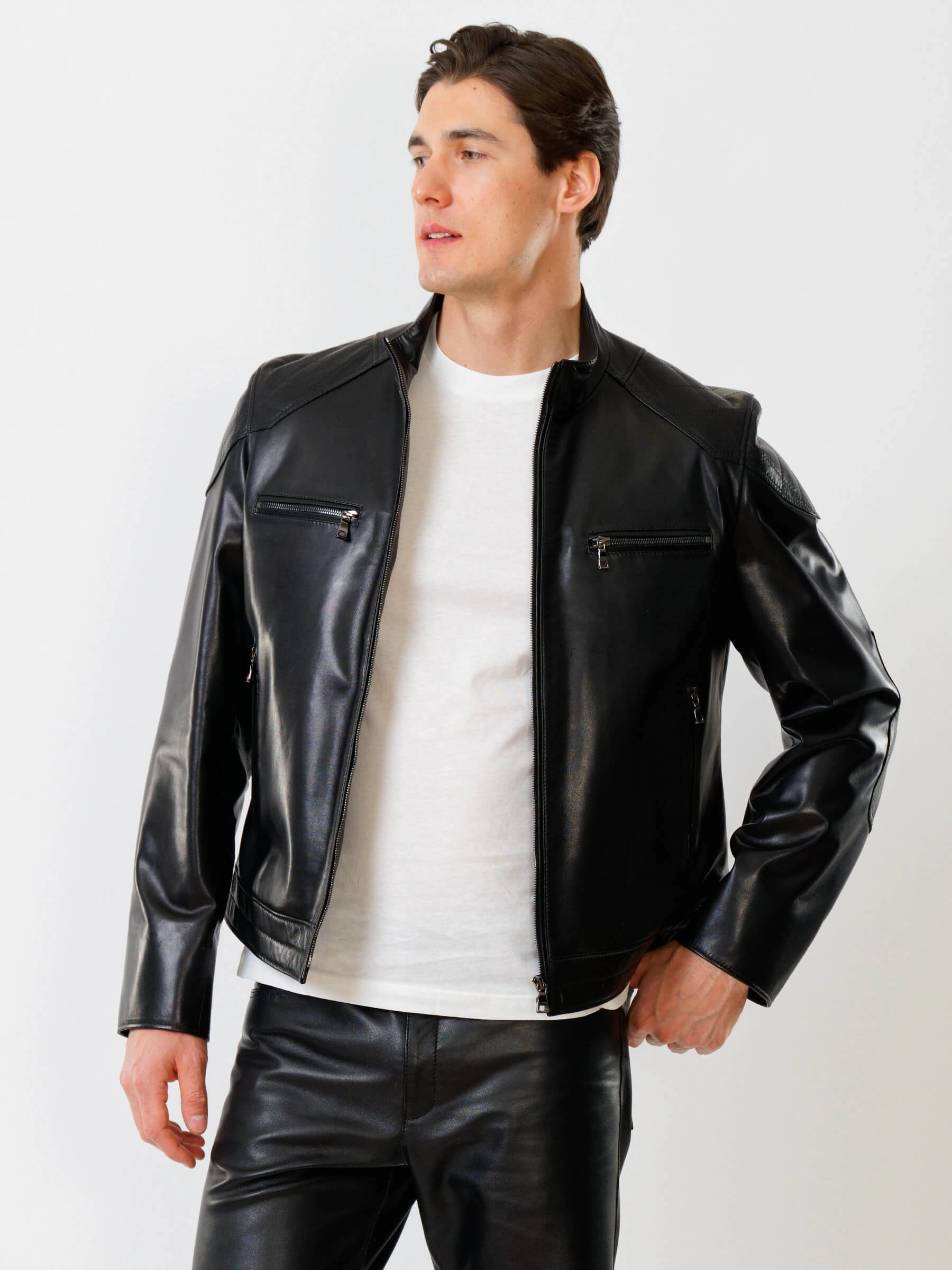 Кожаная куртка мужская 546, черная, размер 50, артикул 28721