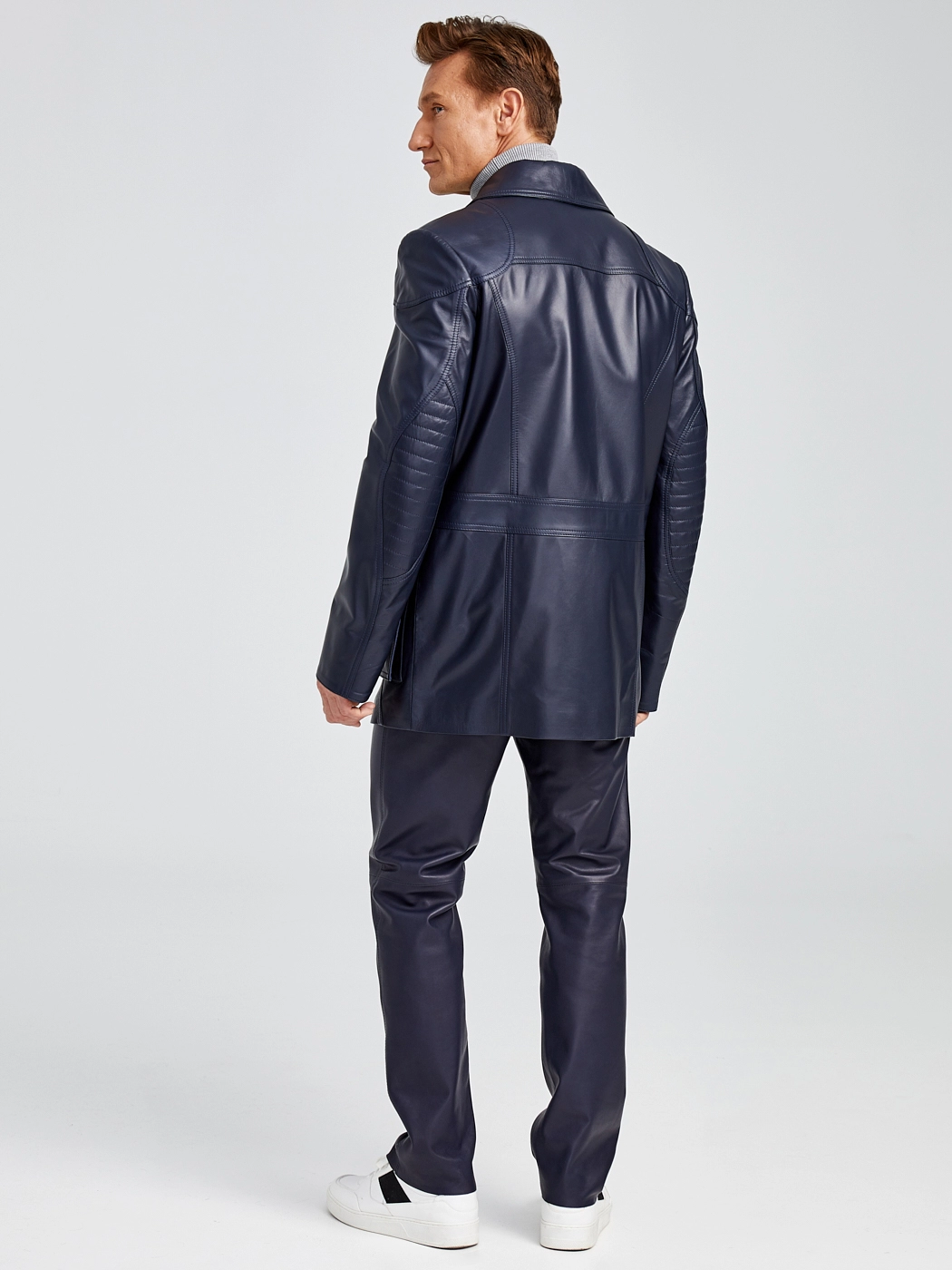 Товар двубортная мужская кожаная куртка бушлат 549, синяя, размер 48, артикул 28881 выполнен из натуральной кожи с застежкой пуговицы. Рассчитан на сезон: демисезон. Длина изделия 88 см, силуэт прямой.