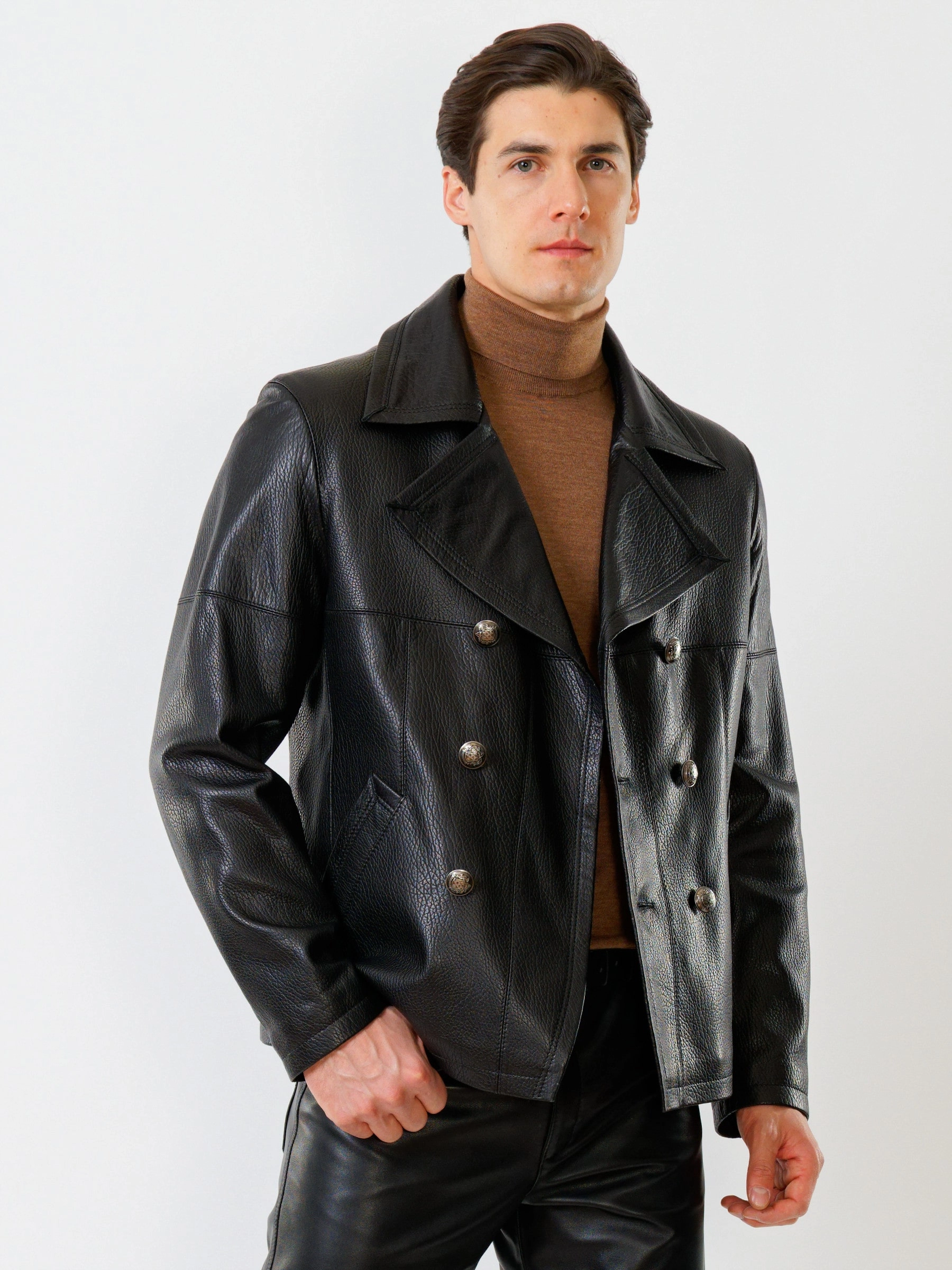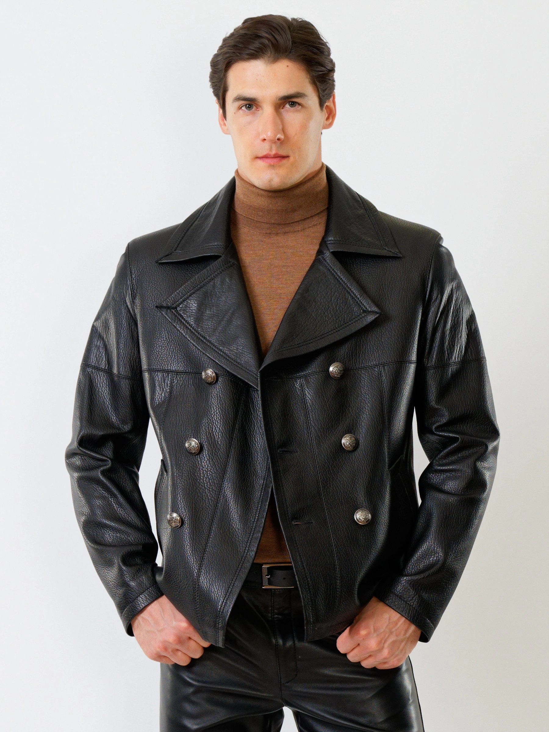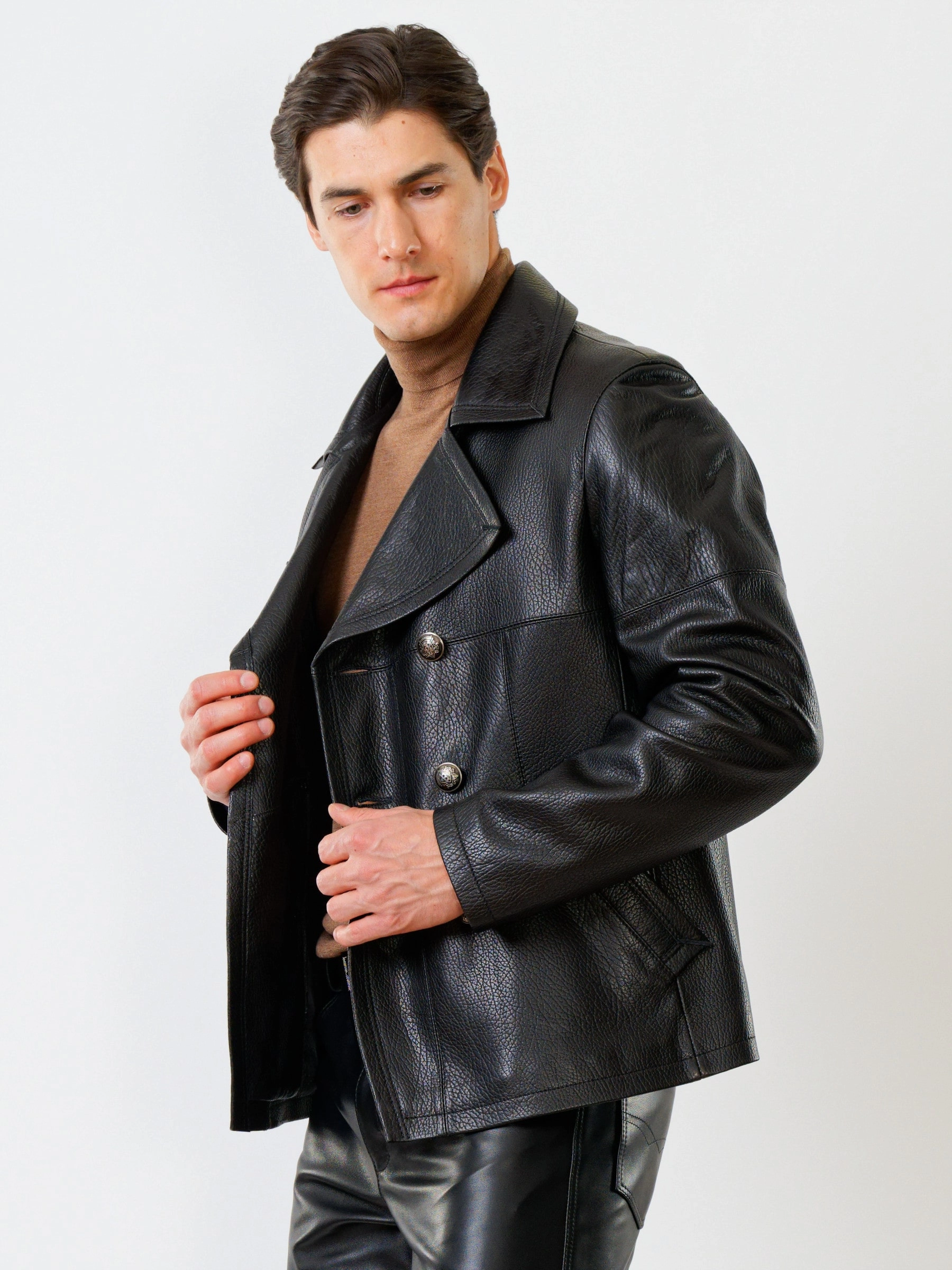 Двубортная мужская кожаная куртка Клуб, черная, размер 48, артикул 28781