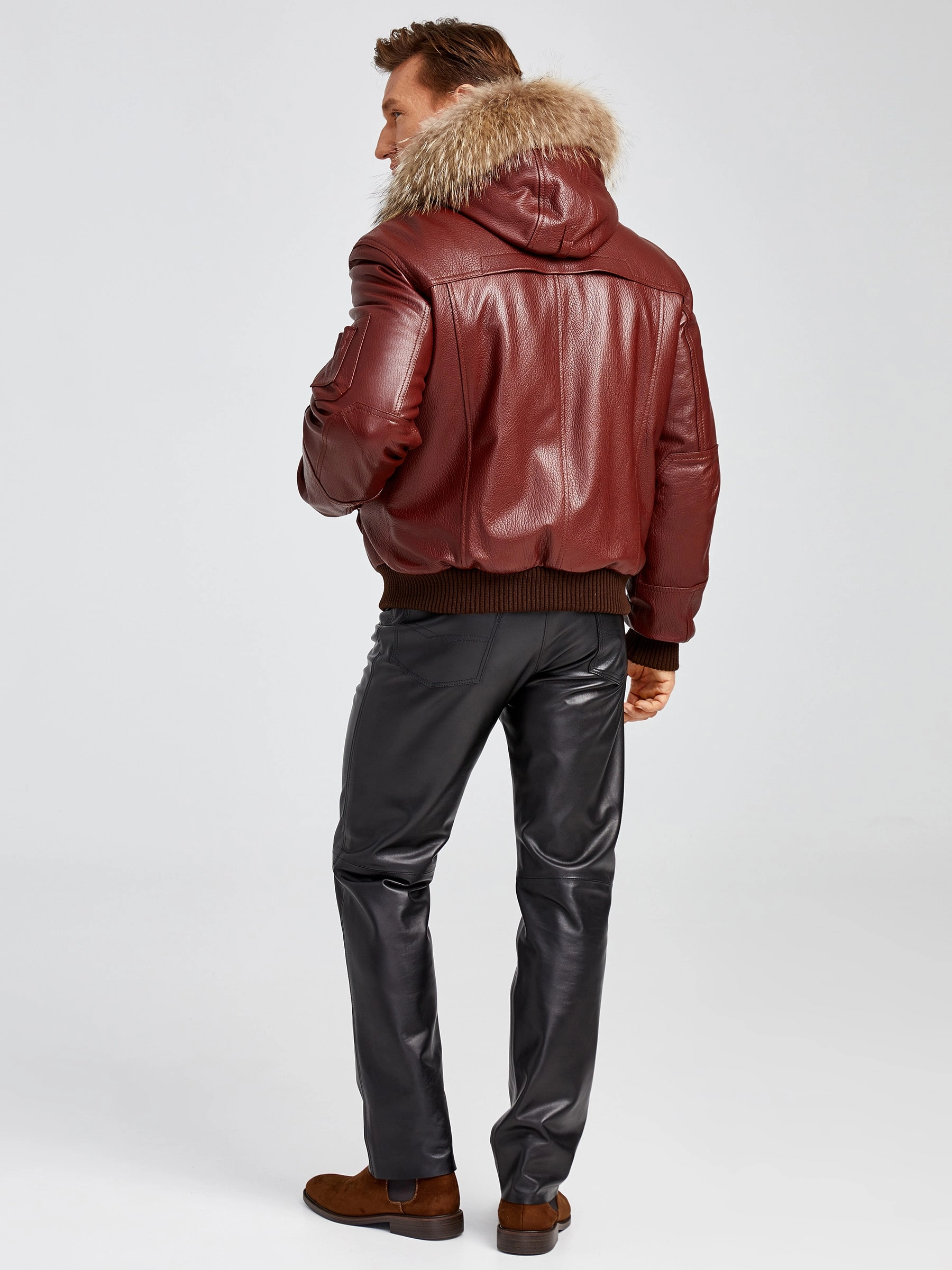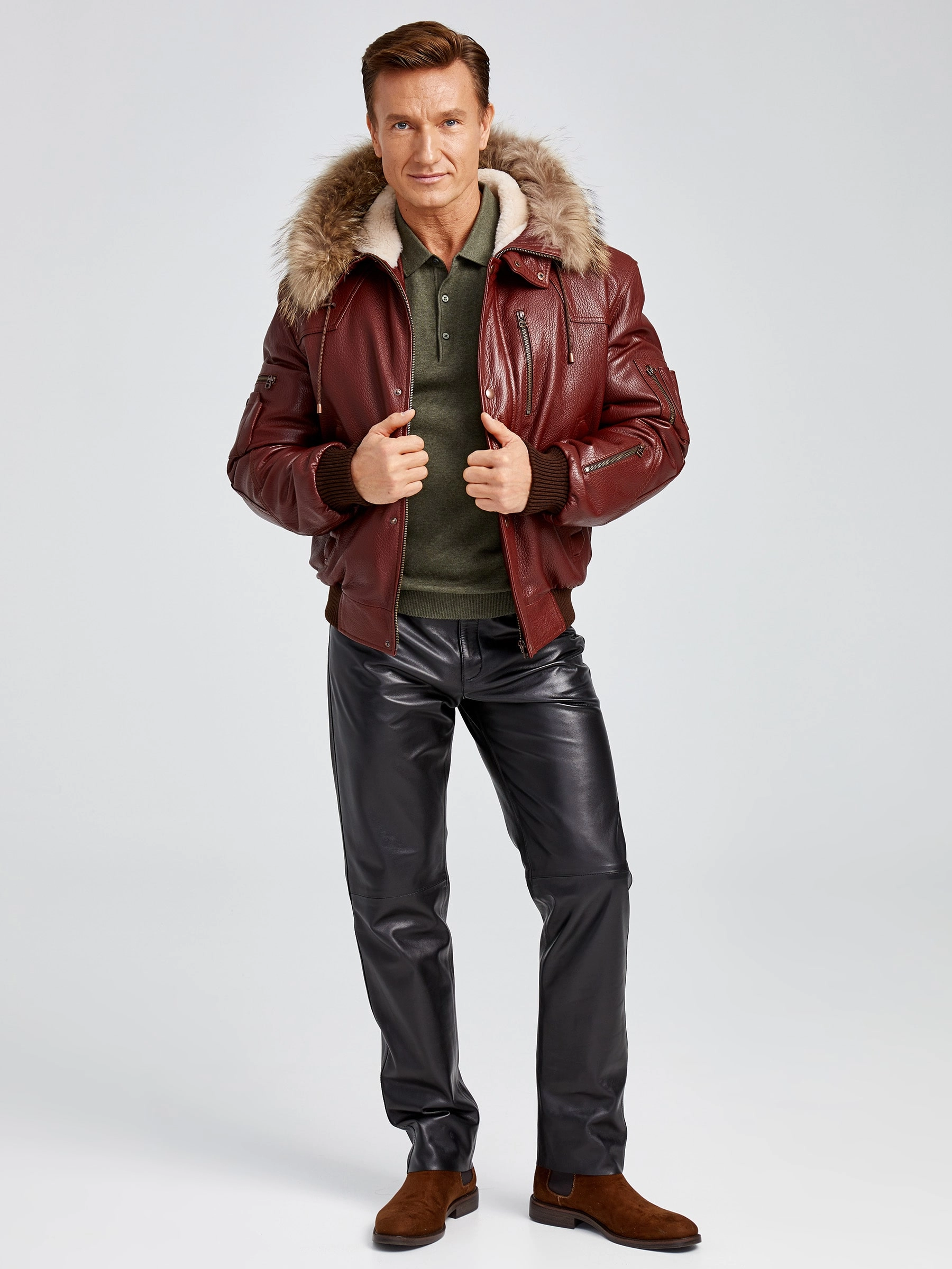 Укороченный вариант куртки «Аляска» в современной интерпретации. Кожа высшего качества. Современный утеплитель. Удобный капюшон. Напульсники рукавов и низ модели из трикотажной резинки. Тонкорунная овчина внутри капюшона. Опушь капюшона из меха енота. Множество наружных и внутренних карманов. Свободный крой обеспечивает комфортную посадку по фигуре. Куртка очень удобна за рулём.