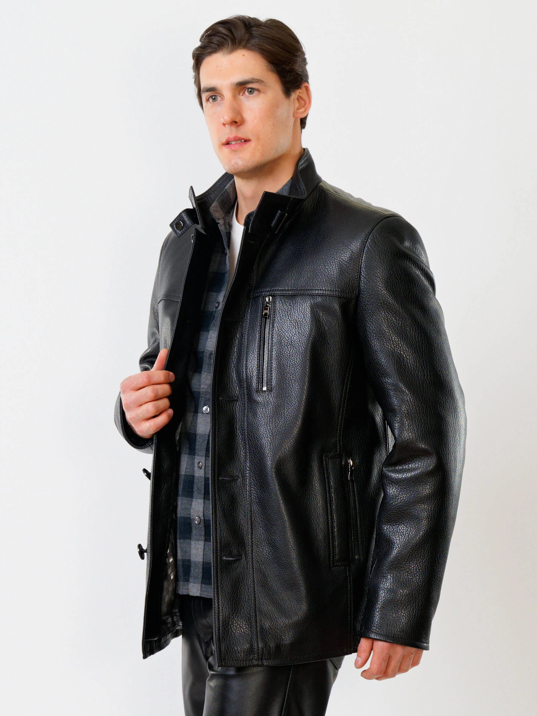 Кожаная куртка утепленная мужская 518ш, черная, размер 46, артикул 40370