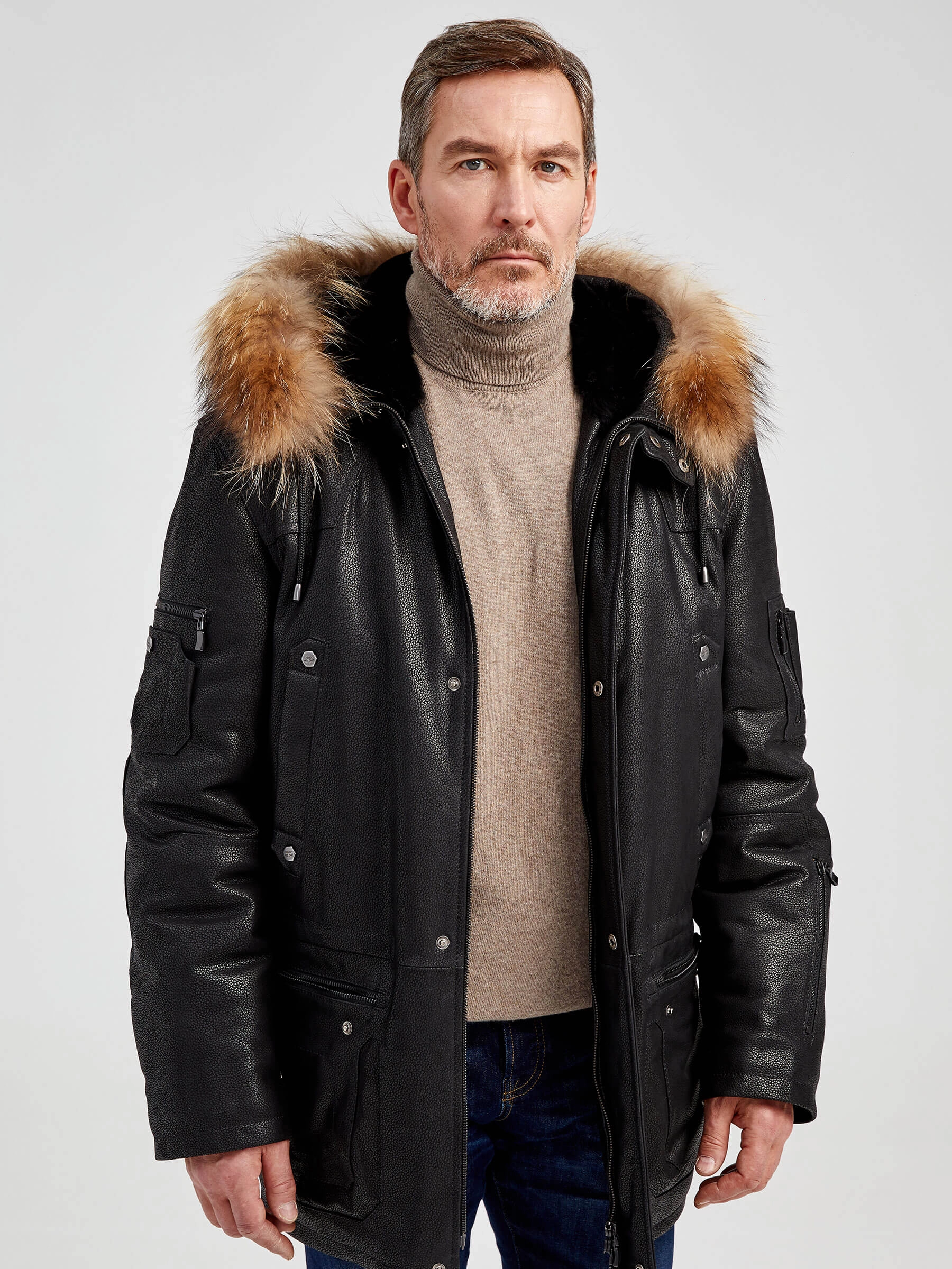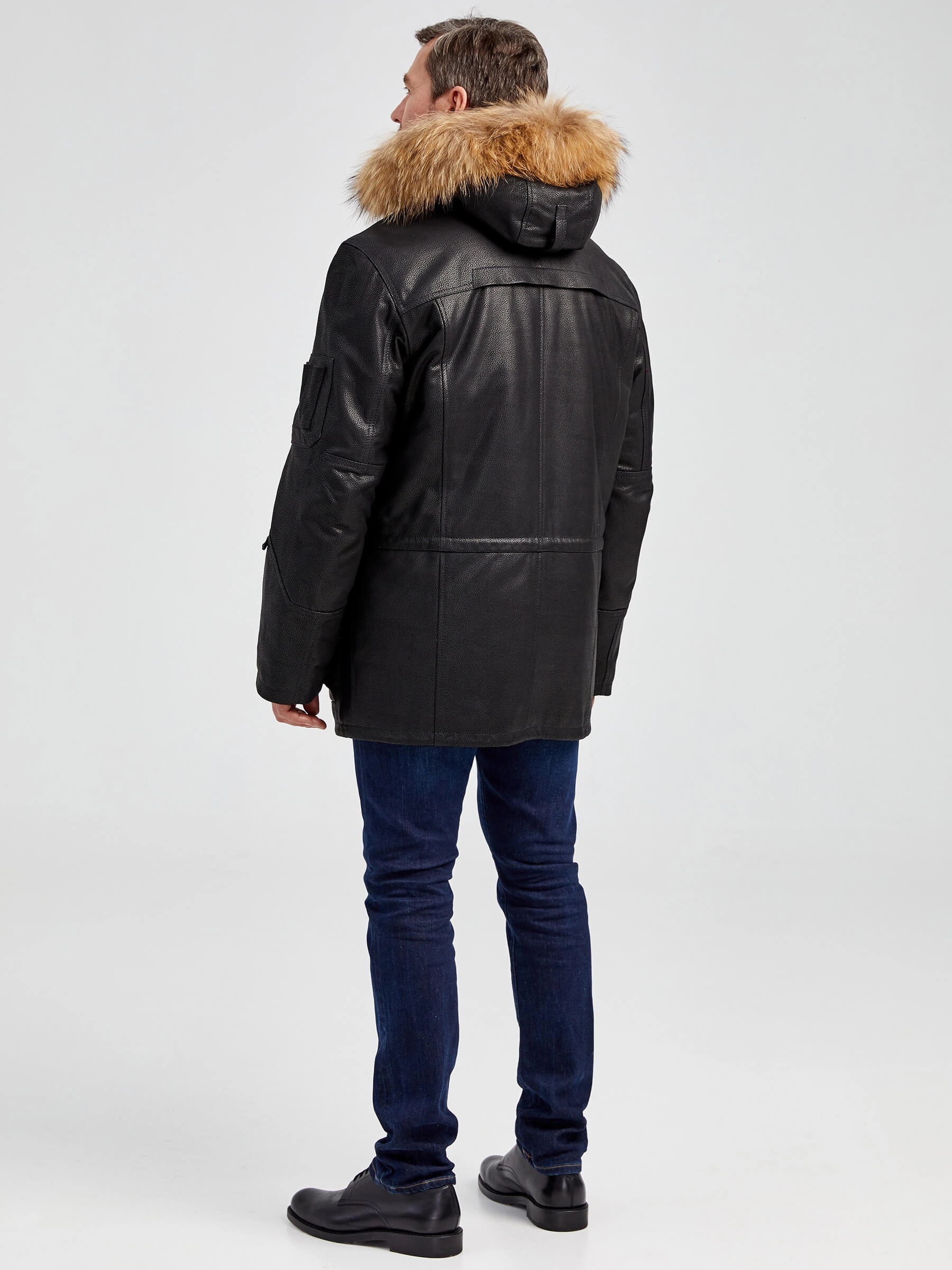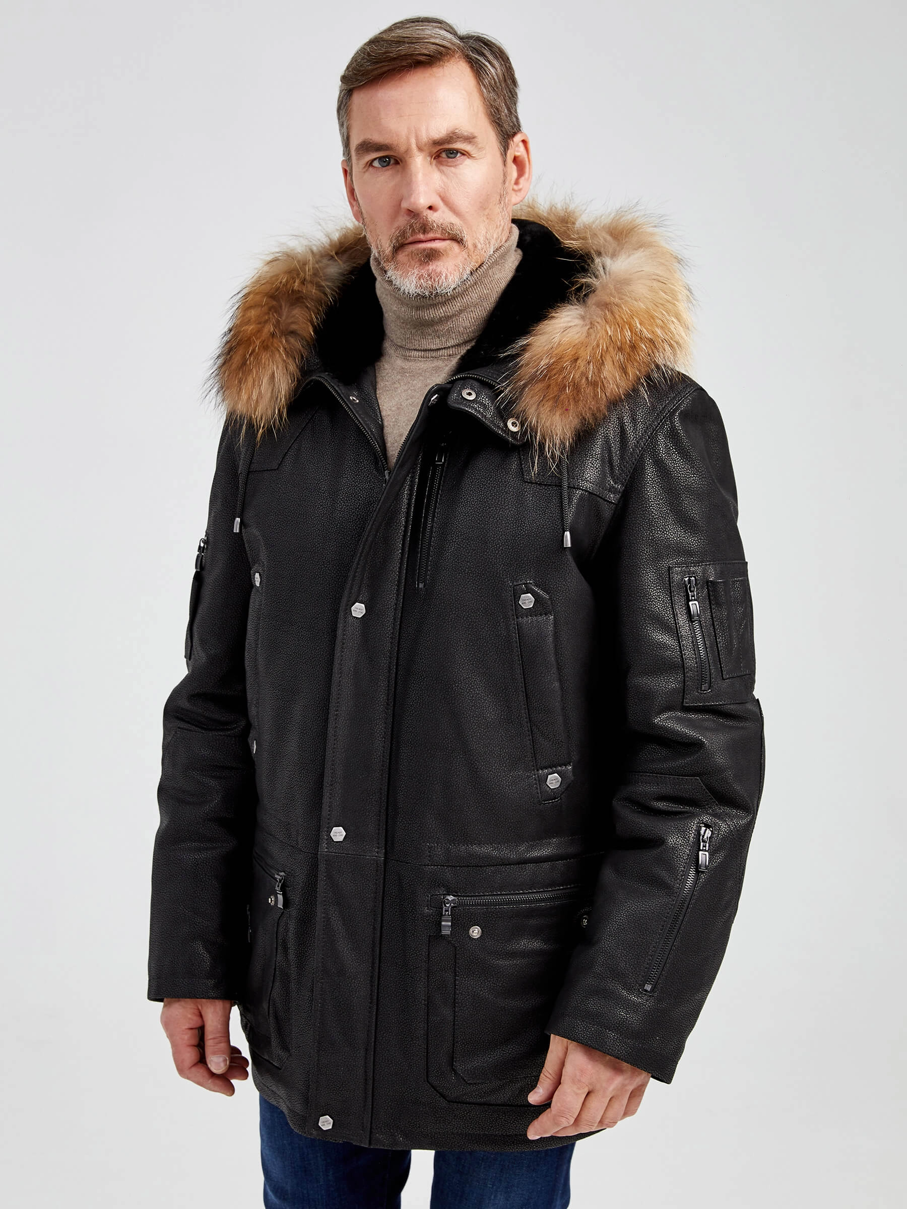 Куртка «Аляска» в современной интерпретации. Кожа высшего качества. Современный утеплитель. Удобный капюшон. Тонкорунная овчина внутри капюшона. Опушь капюшона из меха енота. Множество наружных и внутренних карманов. Свободный крой обеспечивает комфортную посадку по фигуре. Куртка очень удобна за рулём.