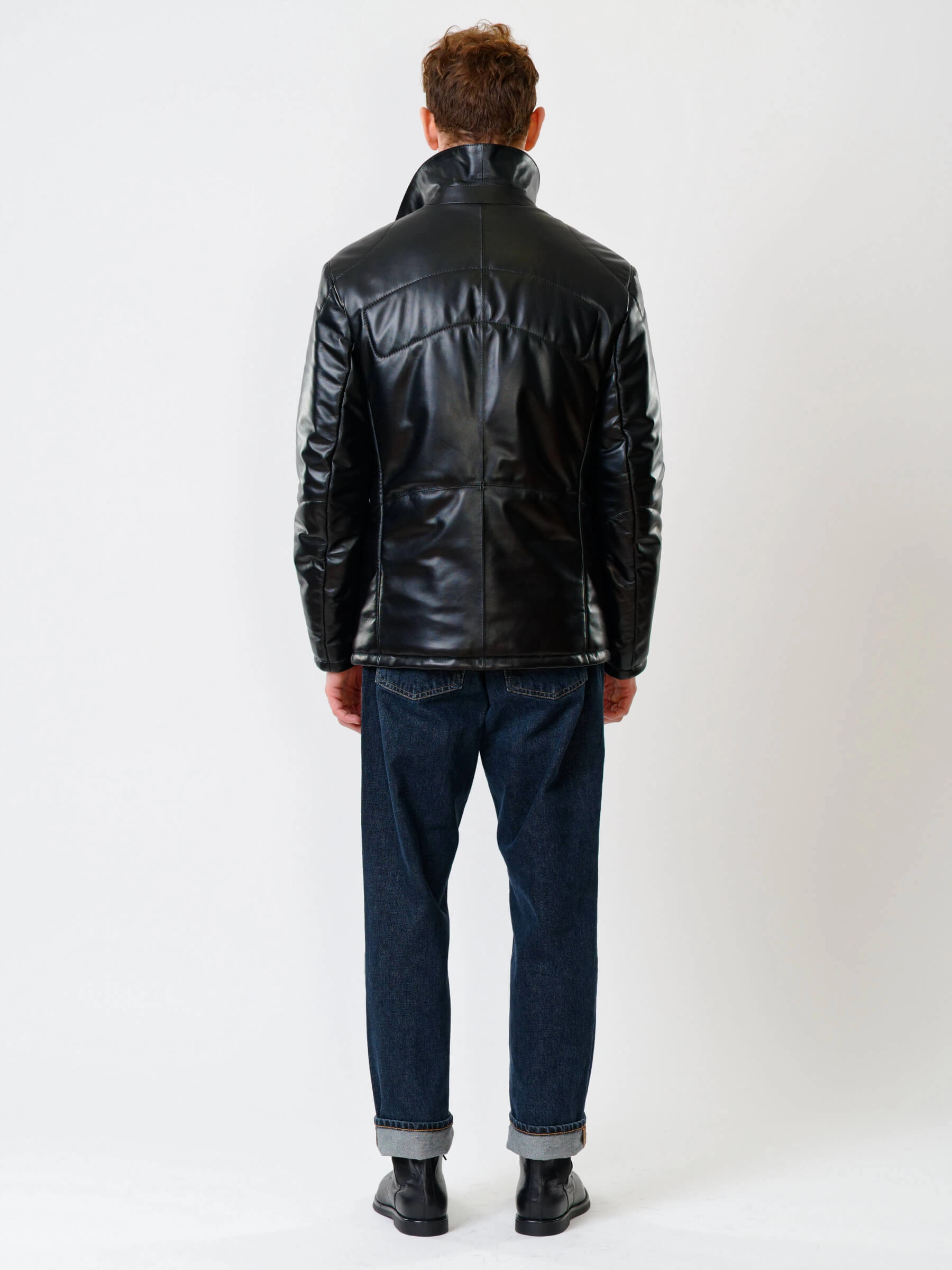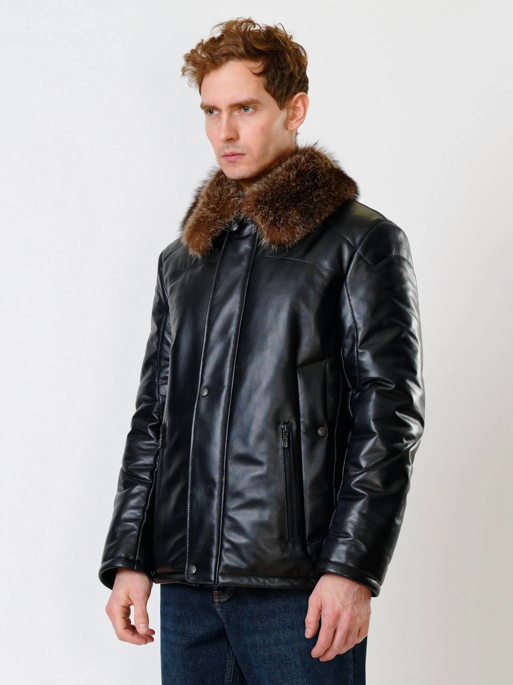 Товар мужской кожаный пуховик с воротником меха енота премиум класса джастин, черный, размер 48, артикул 40230 выполнен из натуральной кожи с застежкой молния. Рассчитан на сезон: осень-зима. Длина изделия 74 см, силуэт полуприлегающий.