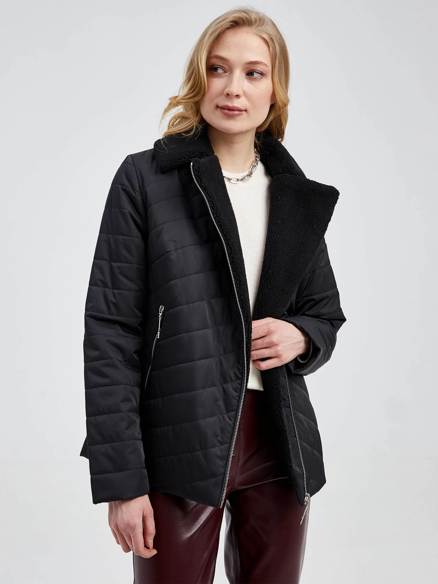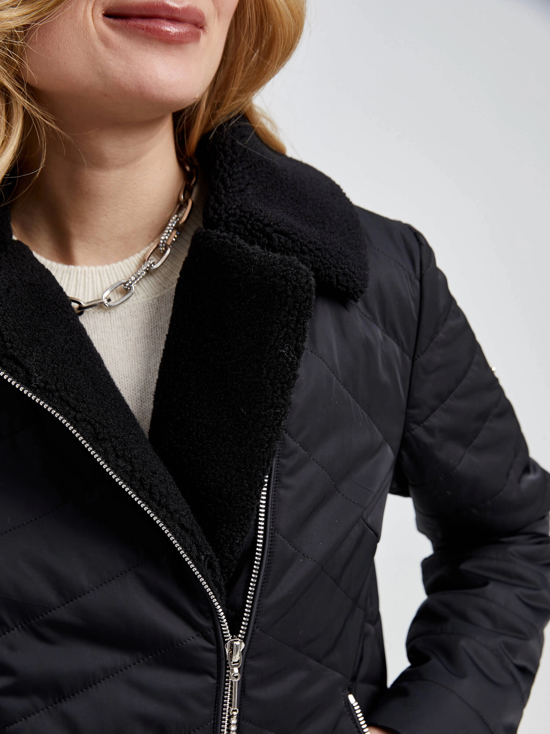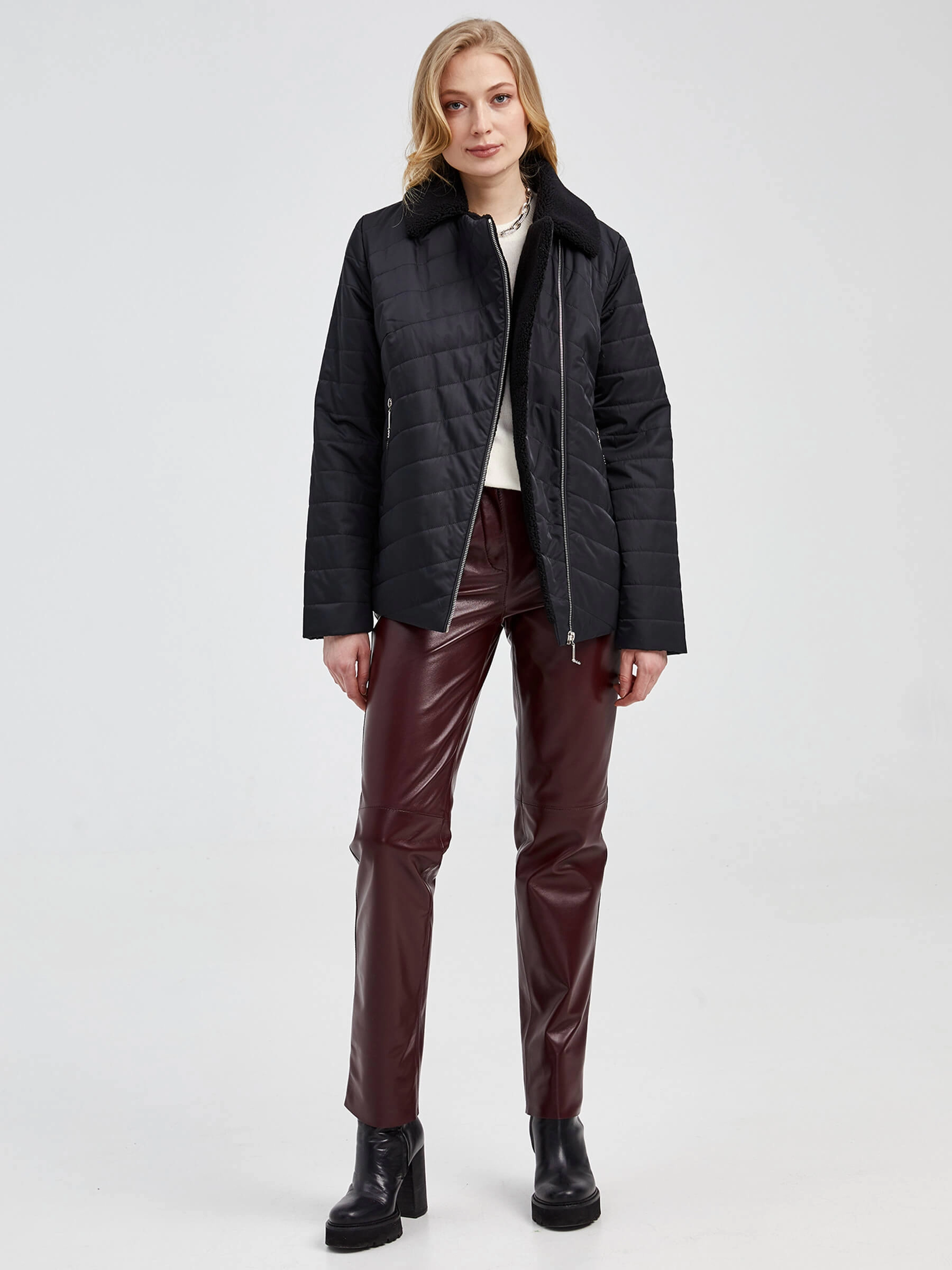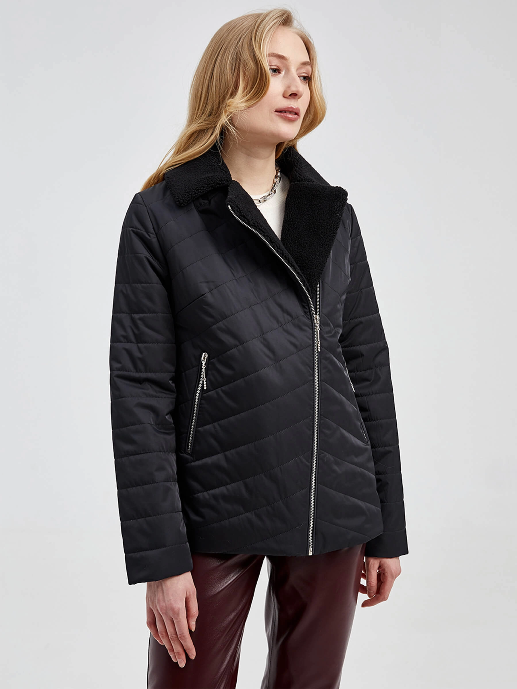 Стеганая куртка прямого кроя с наполнителем из синтепона и бунтарским духом косухи. Мягкий искусственный мех на воротнике добавляет роскоши, а молнии на карманах — практичности. Идеальный выбор для тех, кто ценит комфорт и харизму. Совет: надень с кожаными брюками и грубыми ботинками для дерзкого образа или с худи и джинсами скинни для повседневного настроения.