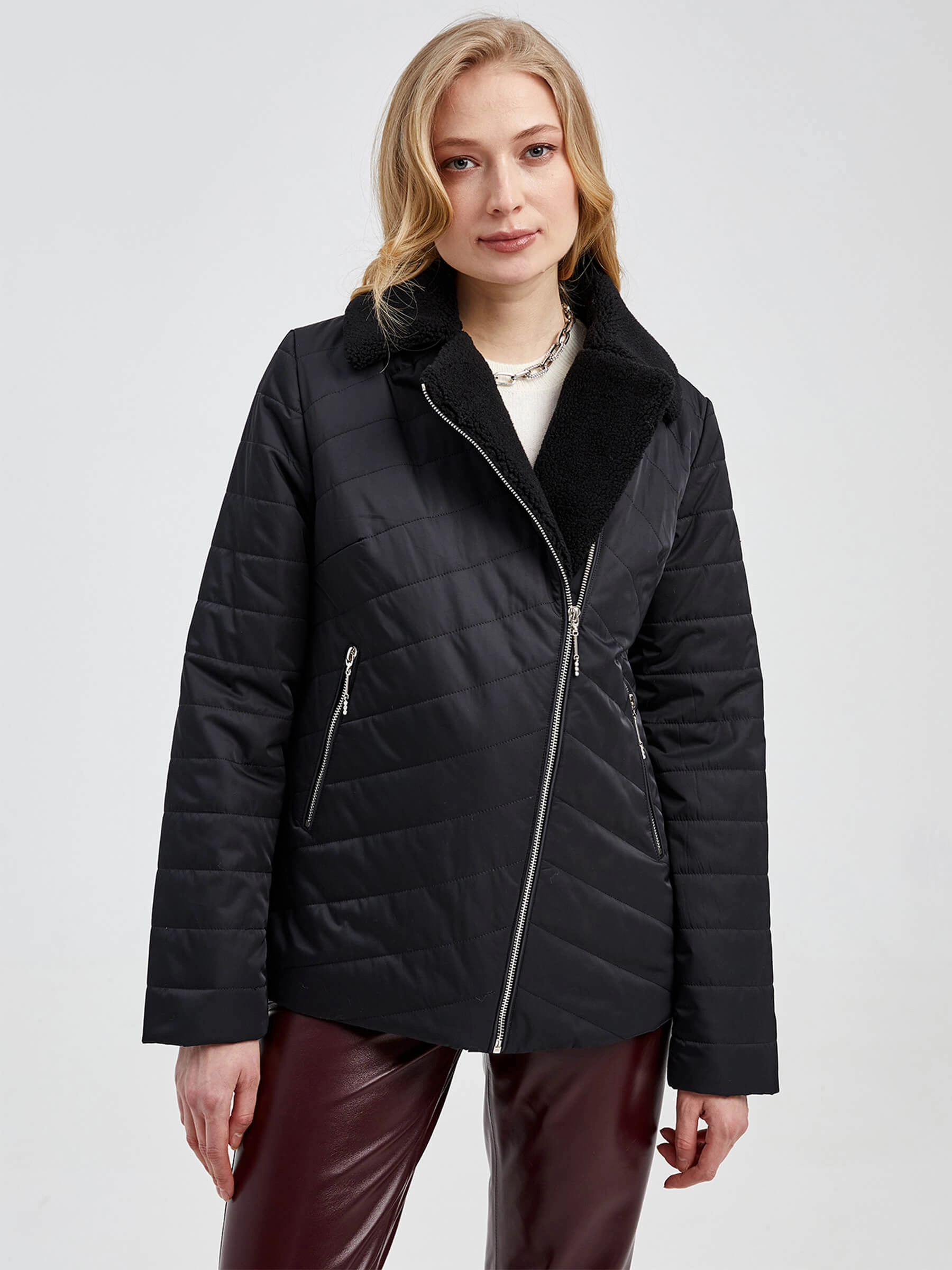 Товар текстильная утепленная женская куртка косуха 21130, черная, размер 42, артикул 25000 выполнен из текстиль с застежкой молния. Рассчитан на сезон: демисезон. Длина изделия 51-74 см, силуэт прямой.
