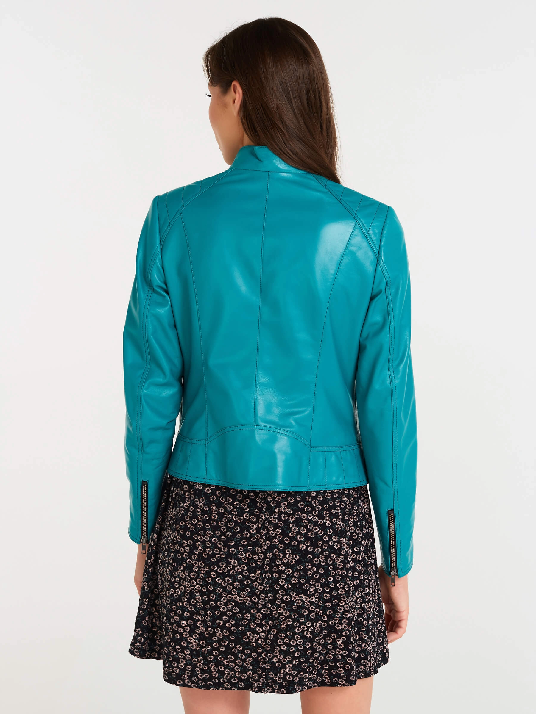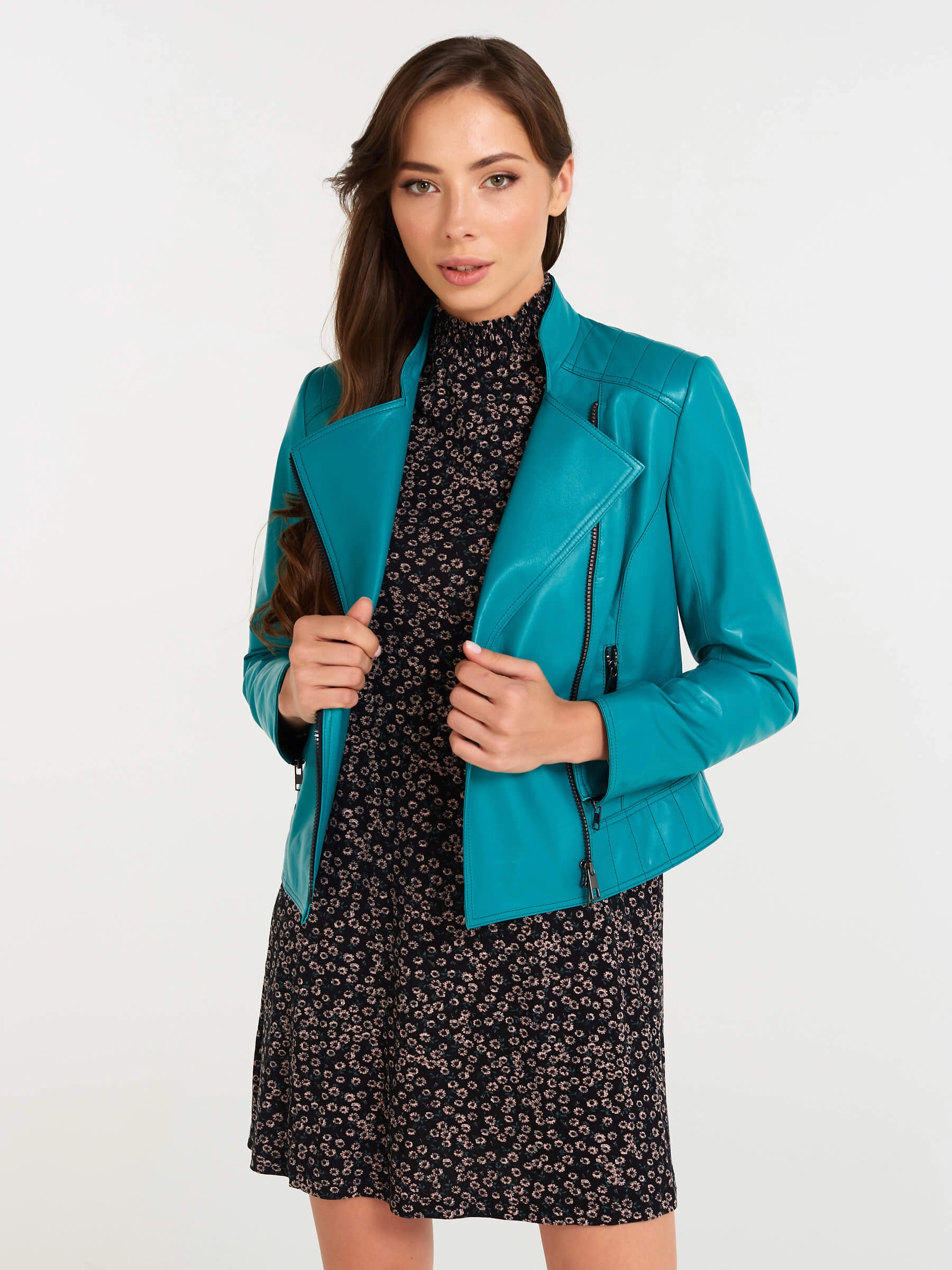 Кожаная куртка косуха женская 300, бирюзовая, размер 46, артикул 18790