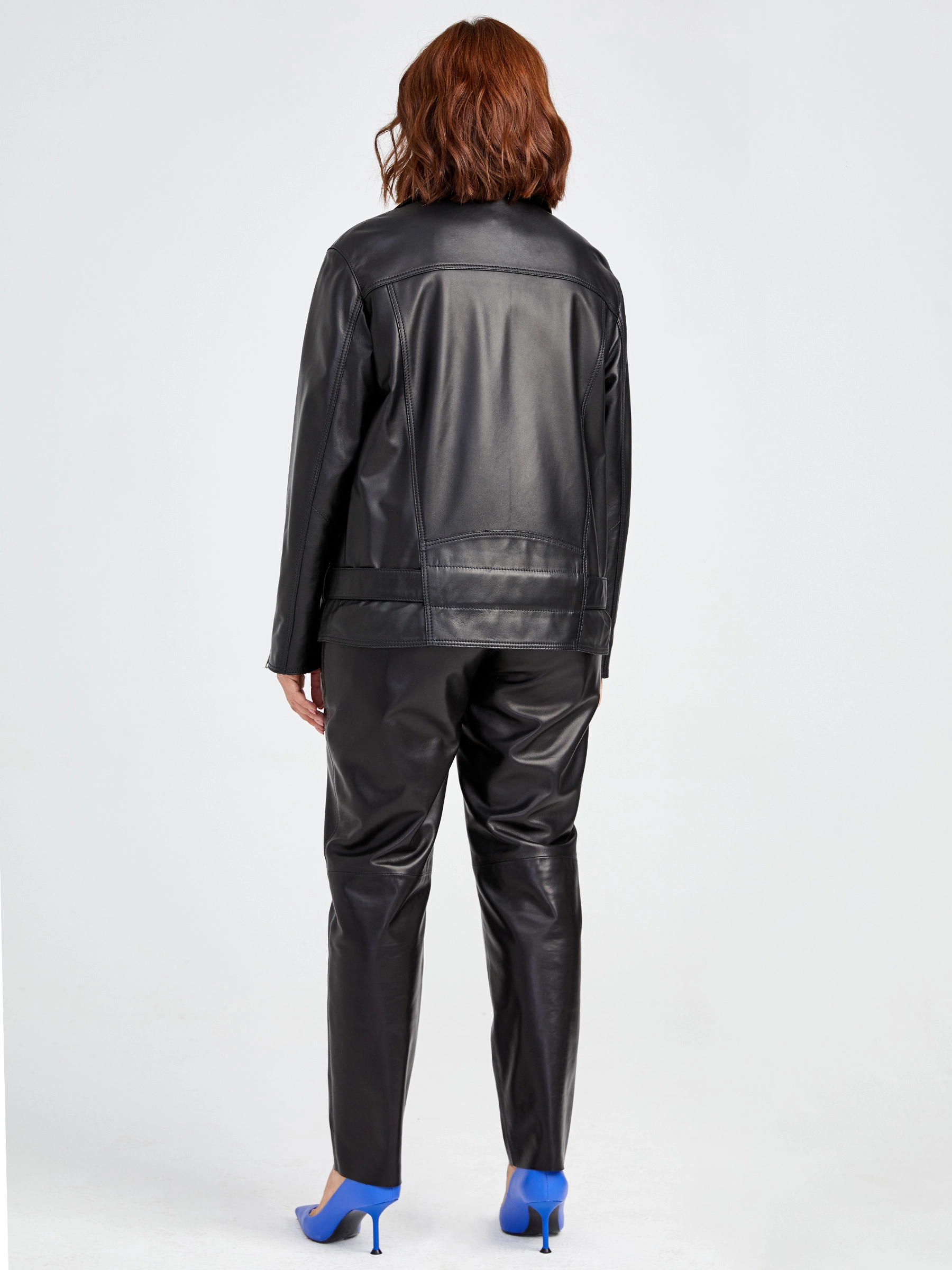 Кожаная женская куртка косуха с поясом 3013, черная, размер 48, артикул 91561