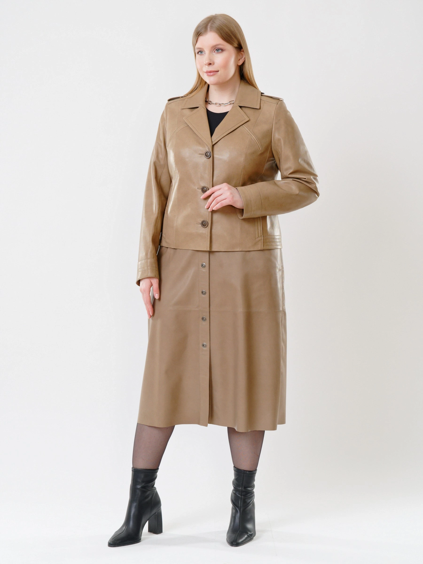 Короткая женская кожаная куртка пиджак 304, серо-коричневая, размер 46, артикул 91433