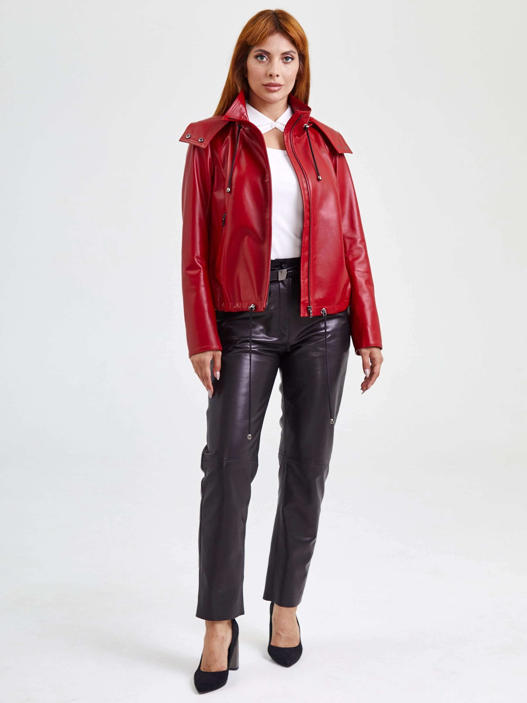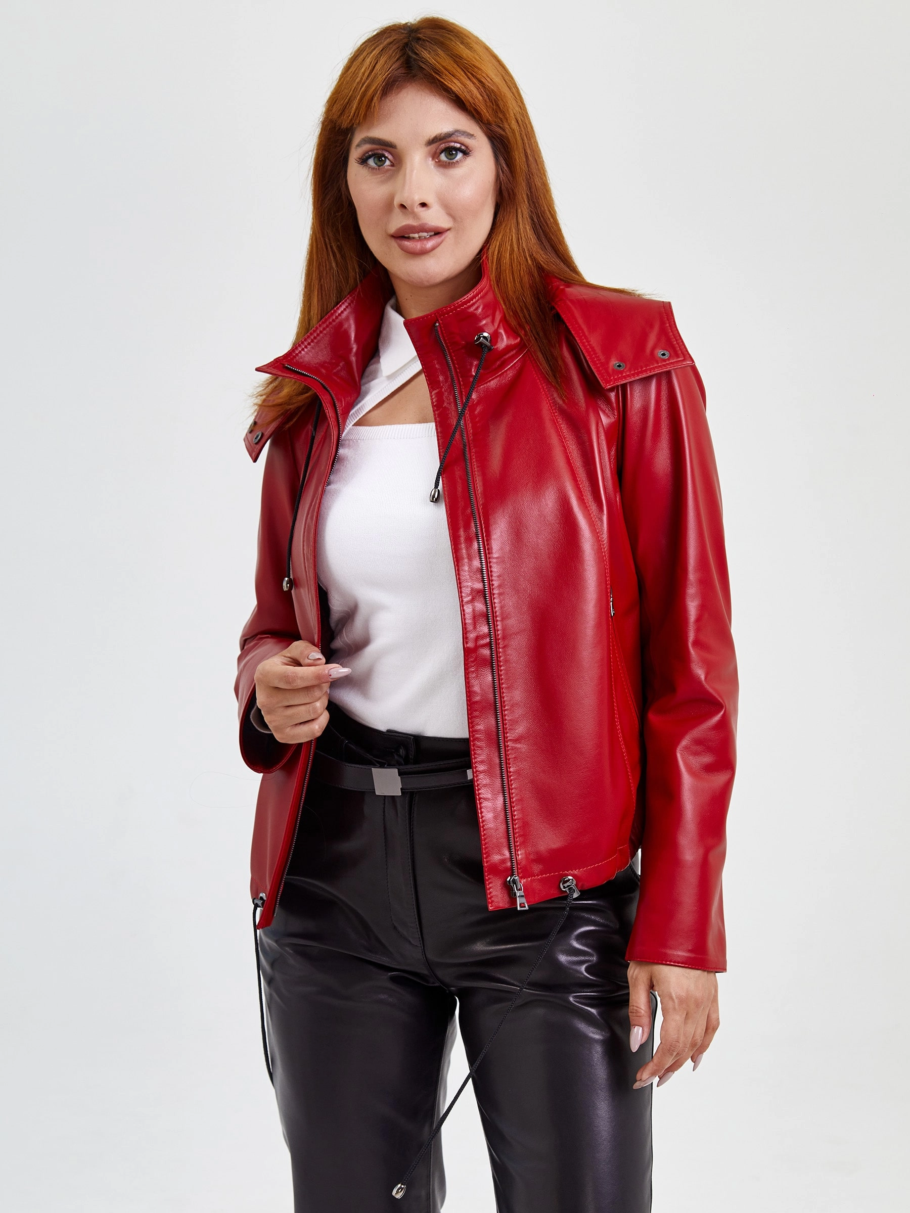 Товар кожаная женская куртка бомбер с капюшоном 305, красная, размер 48, артикул 91741 выполнен из натуральной кожи с застежкой молния. Рассчитан на сезон: весна-лето. Длина изделия 57 см, силуэт свободный.