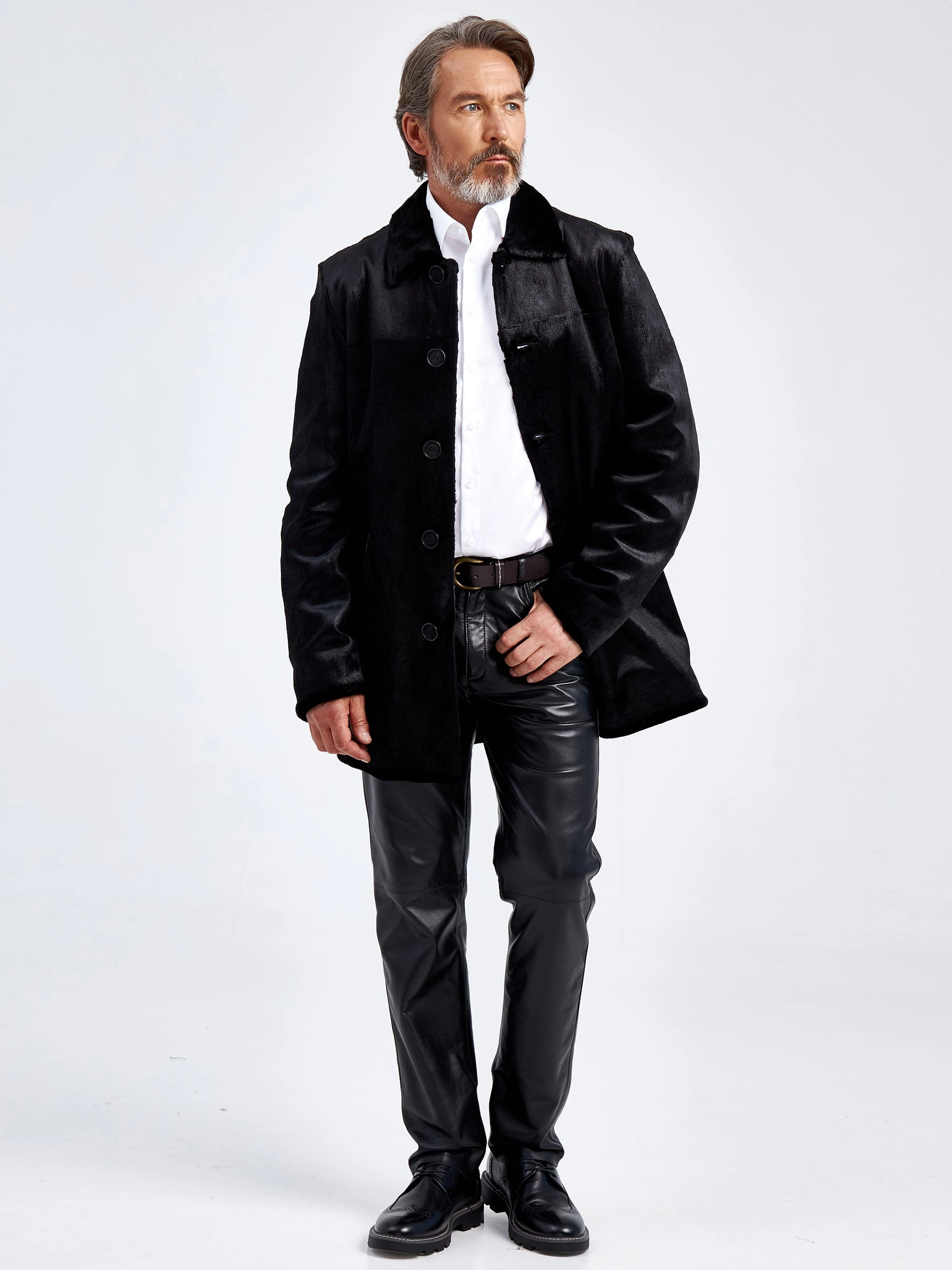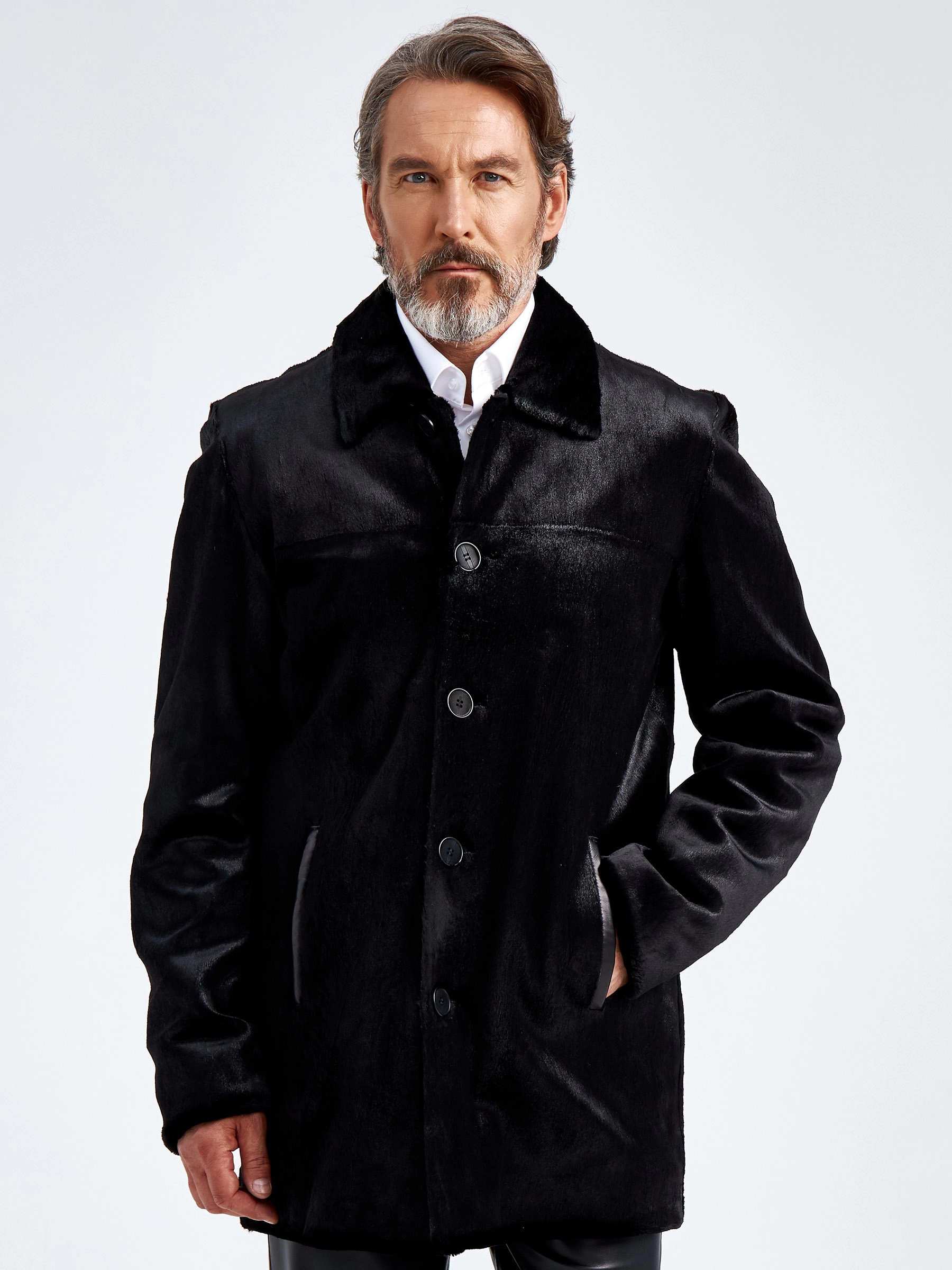 Шикарная классическая мужская куртка прямого кроя из канадской нерпы. Ее мех настолько нежный и мягкий- словно бархат. Мех куртки сшит особым образом: ворсом в верх, для того, чтобы не было видно заломов при интенсивной носке. Отложной воротник, втачной рукав и два врезных кармана отделанные кожаным кантом. Все лаконично и дорого. Идеальное сочетание как с деловым костюмом, так и с кожаными брюками.